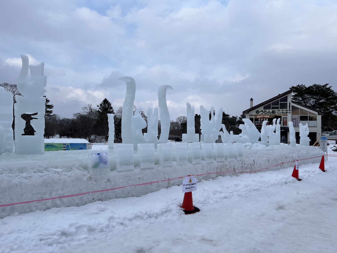 大沼公園の冬を代表するイベント。結氷した大沼湖から切り出した氷で作るジャンボ滑り台やミニ滑り台は大人から子供まで大人気。地元の小中学生たちが参加して作る可愛らしい雪像や、函館アイスカービングクラブの皆さんによるアイスカービング作品(氷像)も展示されます。 会場近くには暖かいおでんなどの屋台が出店する他、大沼婦人会館ではハンドメイド雑貨やお菓子などのお店が出店する「大沼ルシェ」が開催。 期間中は氷上わかさぎ釣りや氷上スノーモービル、氷上そりツアーなどのウィンターアクティビティも開催されているので、是非一緒に楽しんで。