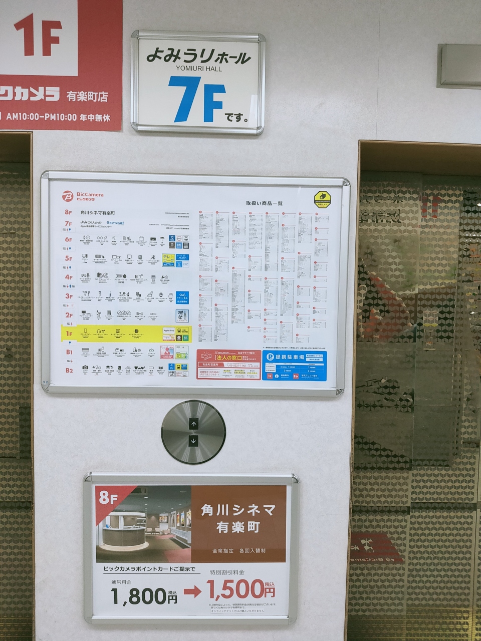 変わらないのが上層階の「よみうりホール(昔は漢字?)」で、アクセスの良さと1,100席のキャパシティで利用されているが、エレベータが狭くて遅いのが玉に瑕。