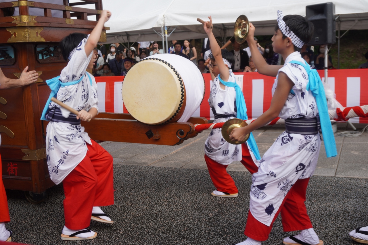 ちなみに、小倉祇園太鼓の特徴は両面打ち。片方の太鼓は抑揚を付けた「カン」もう一方は単調な基本音の「ドロ」。リード役のヂャンガラが速さを整えていくという役割分担。緊張の面持ちで日ごろの練習通りの動きを確かめるような感じかな。精一杯のパーフォーマンスがこちらにもよく伝わりました。