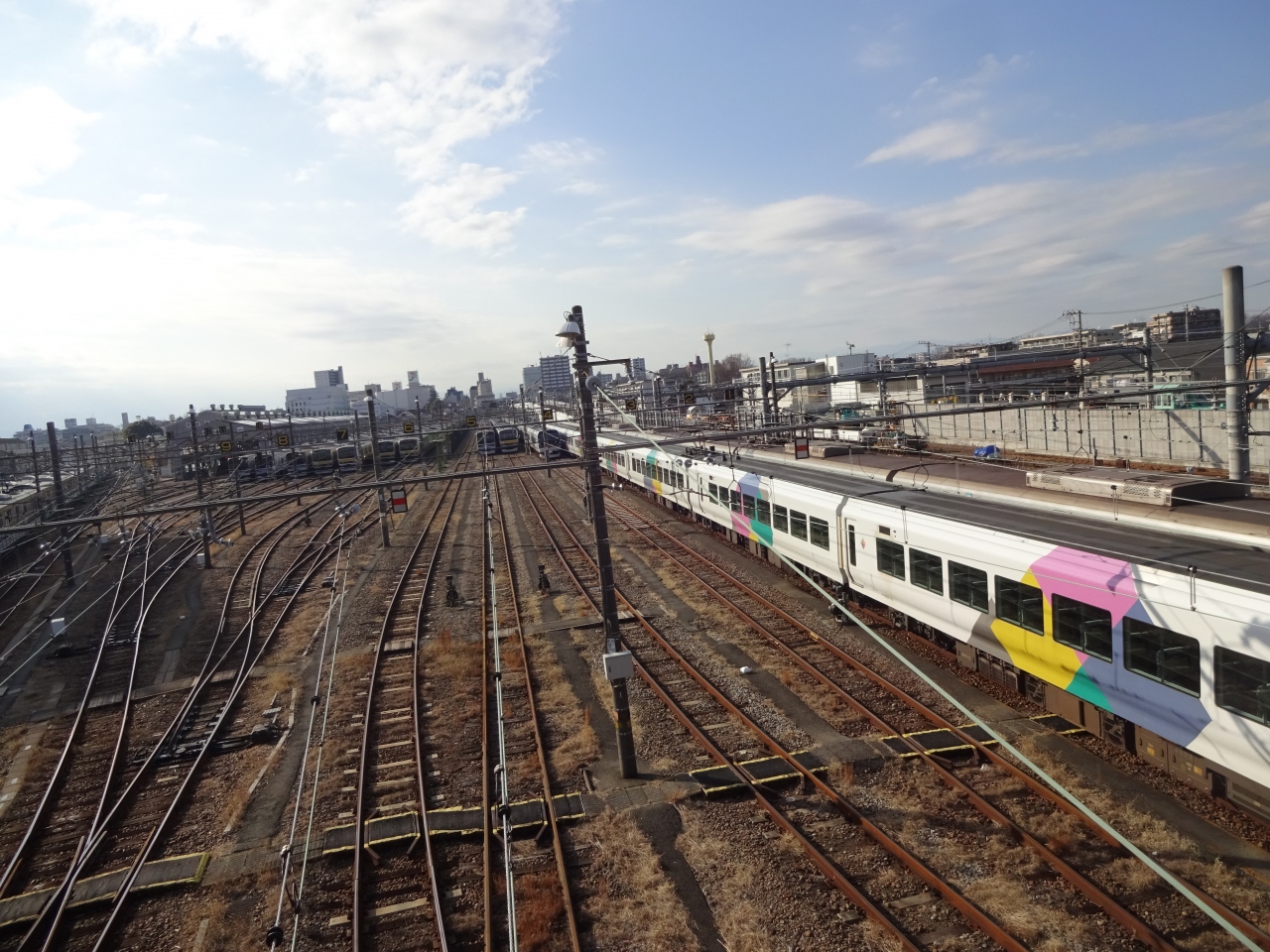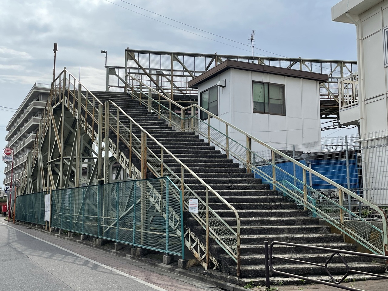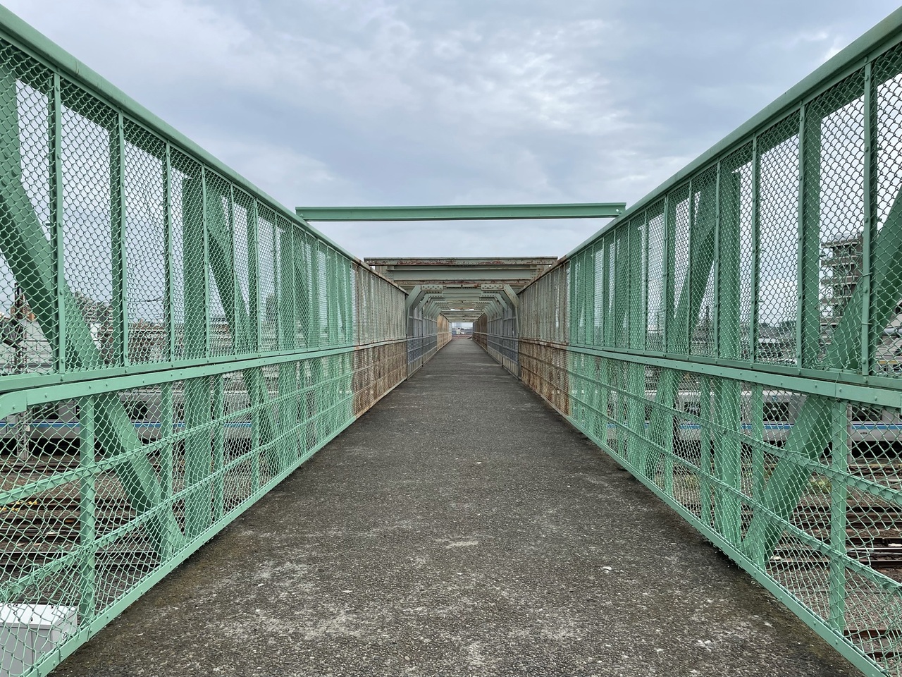 太宰治も通ったと言うJR車両基地に架かる歩道橋。