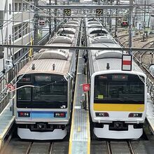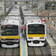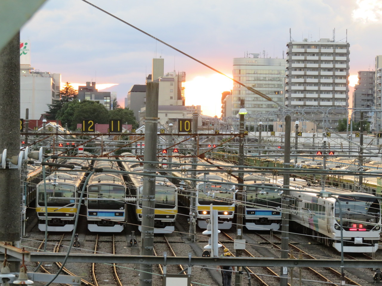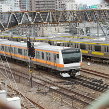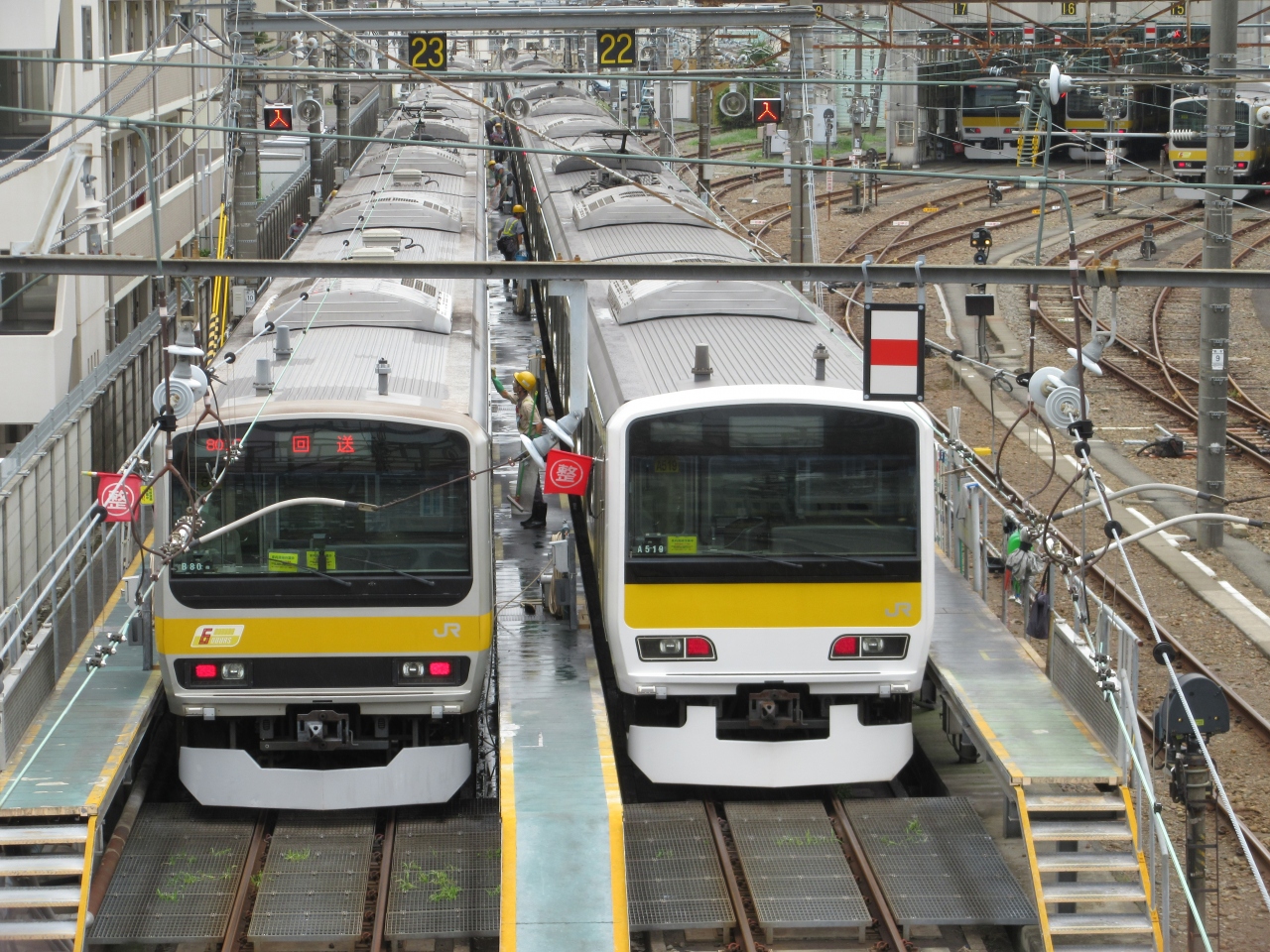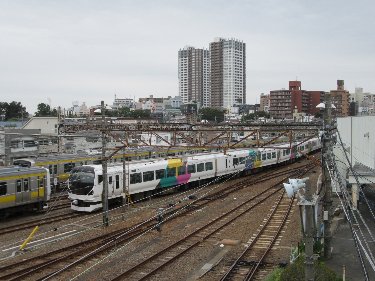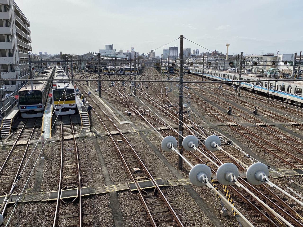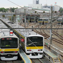 当時の映像ではアルプス号などで活躍した165系電車や、甲府行きの表示幕を掲げたスカ色の115系電車が車庫内に留置されていますが、今は中央緩行線や東西線乗り入れ用の車両が主力。銀色の車体は何となく物足りなさを感じてしまいます。