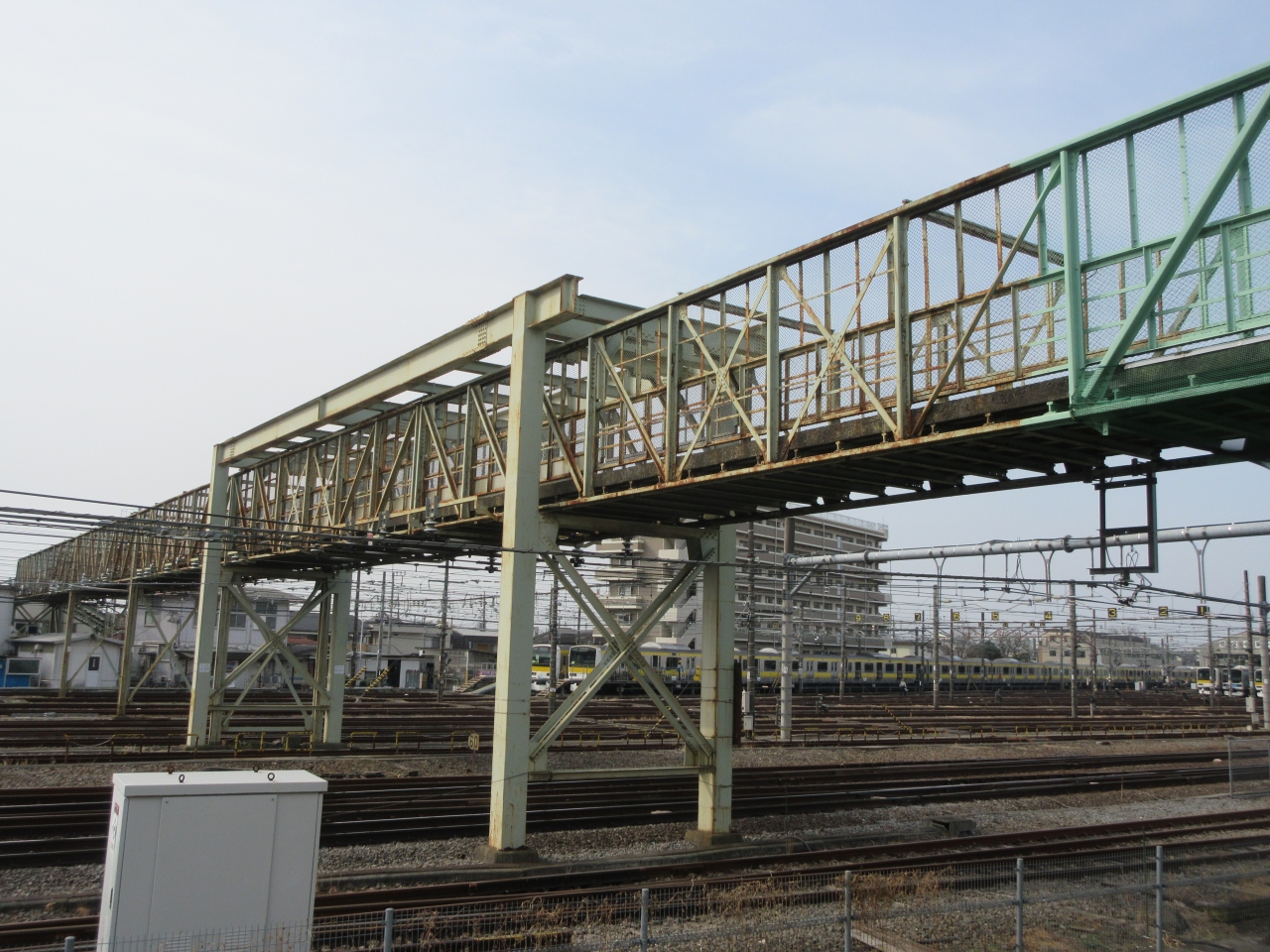 JRの三鷹電車庫を南北に結ぶ跨線橋。