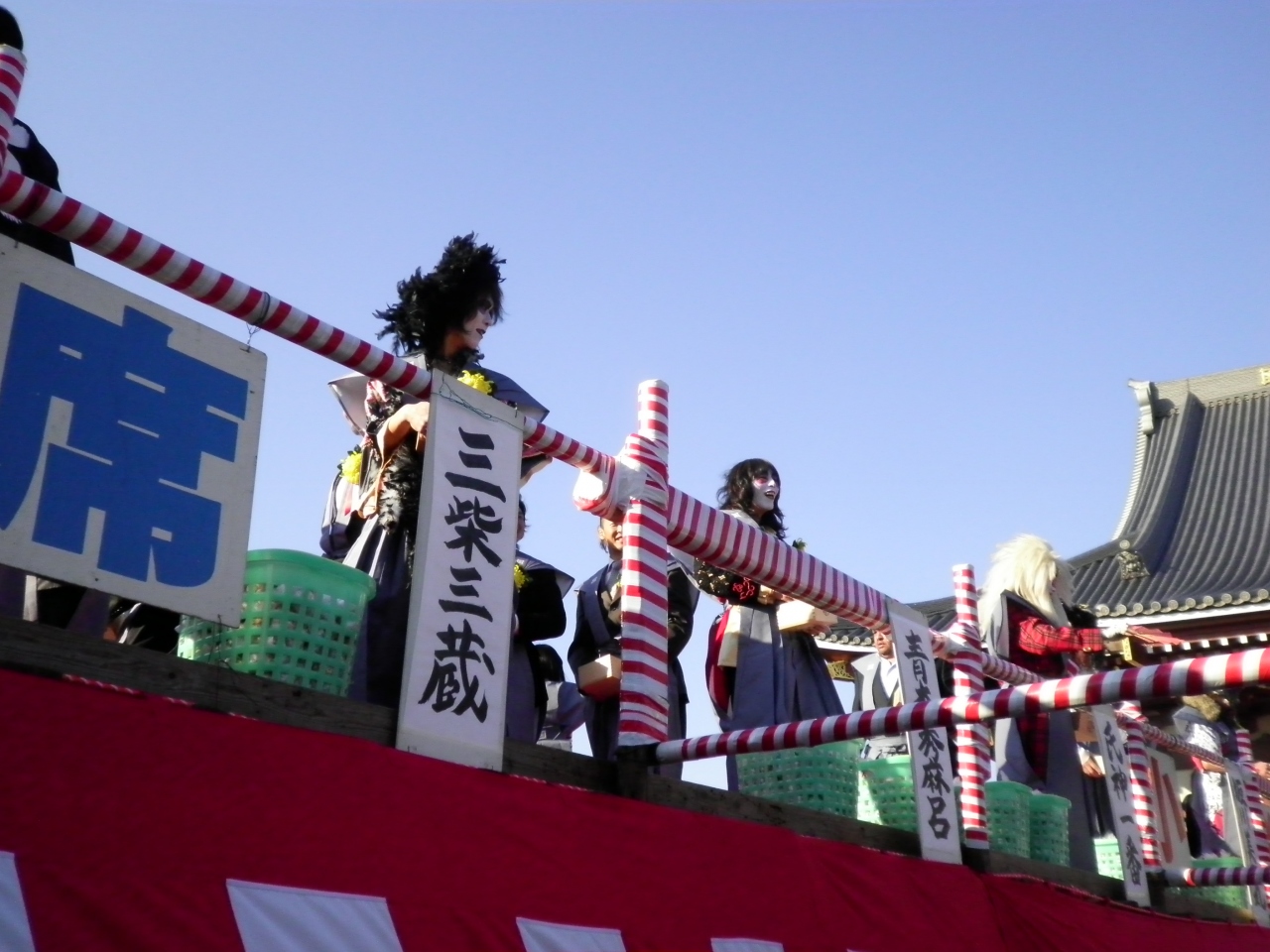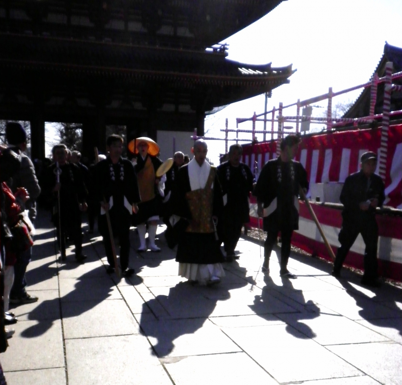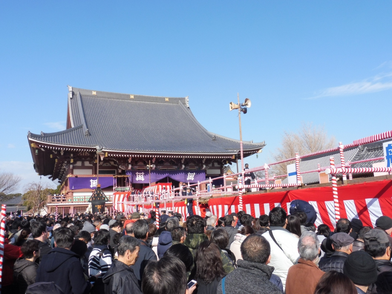 快晴の青空の下、池上本門寺の節分会に参加しましたが、豆まきは5分位で終了しました。