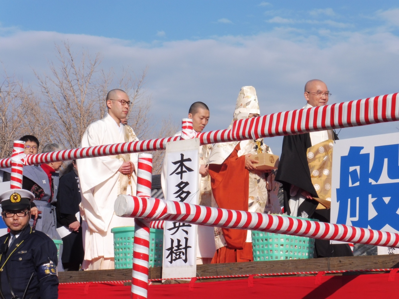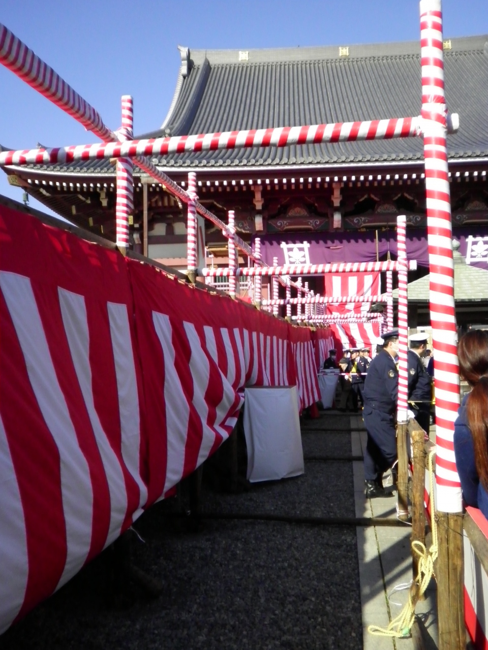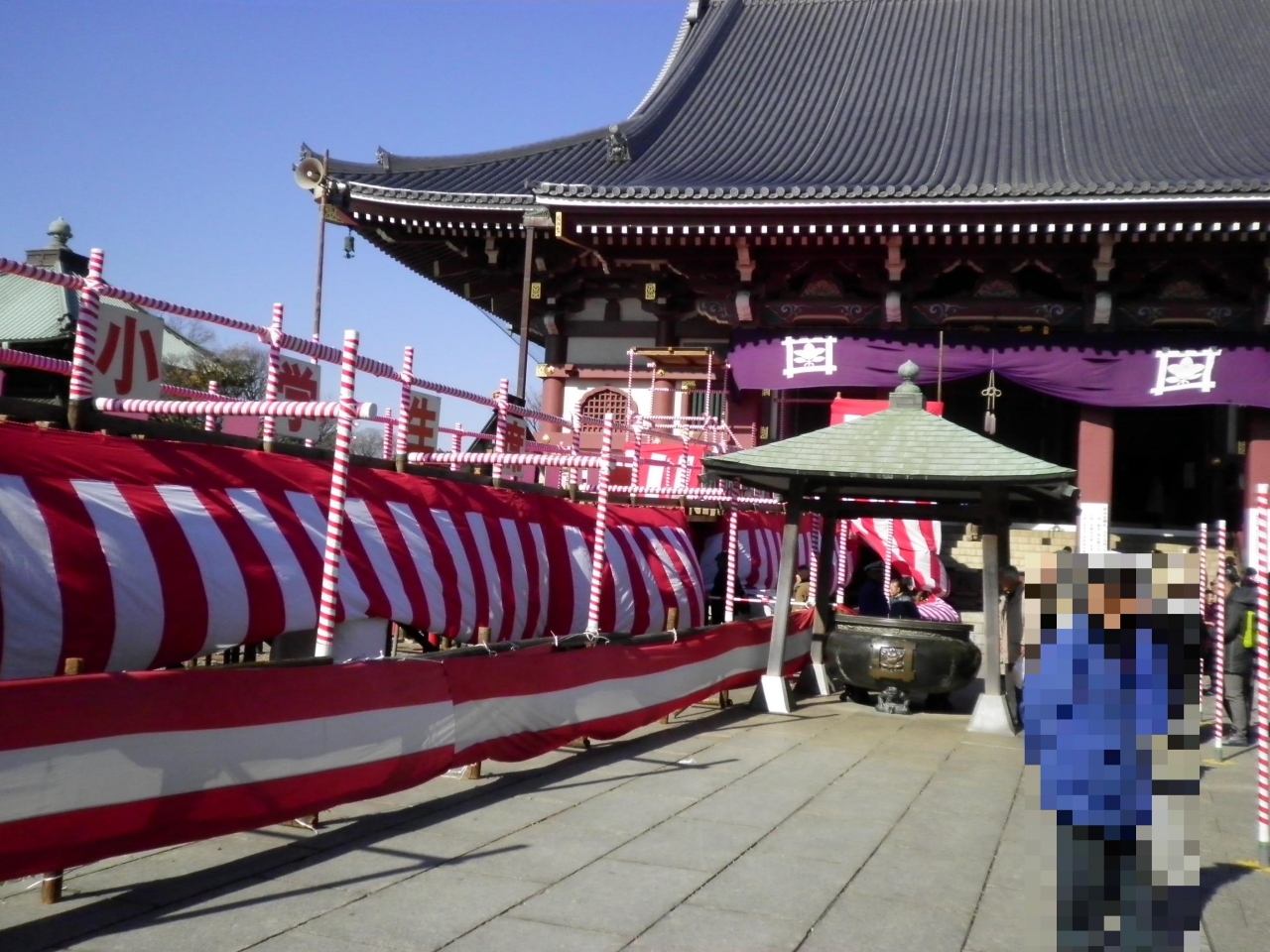 快晴の青空の下、池上本門寺の節分会に参加しましたが、豆まきは5分位で終了しました。