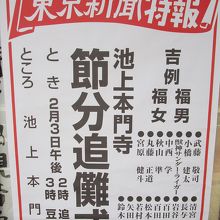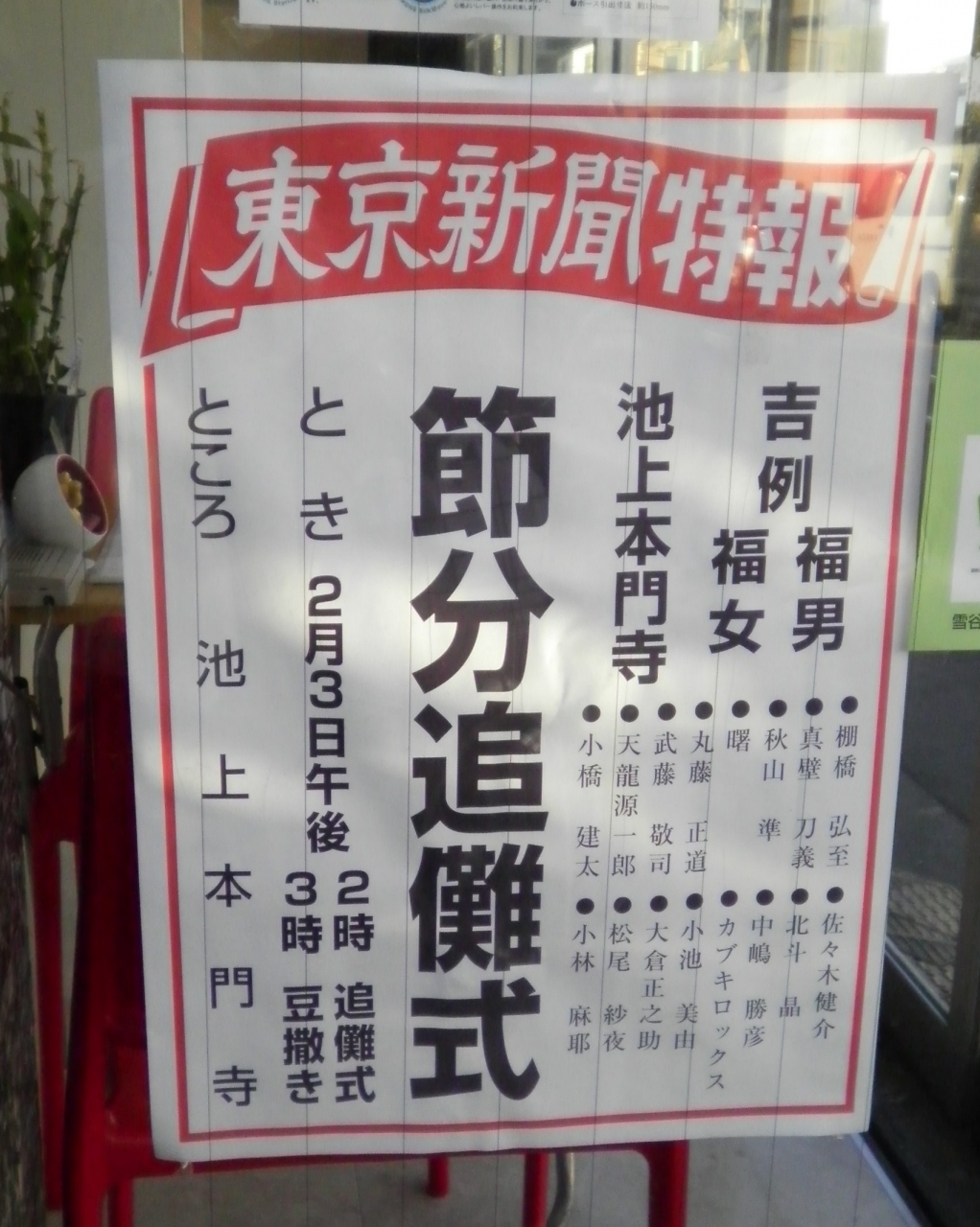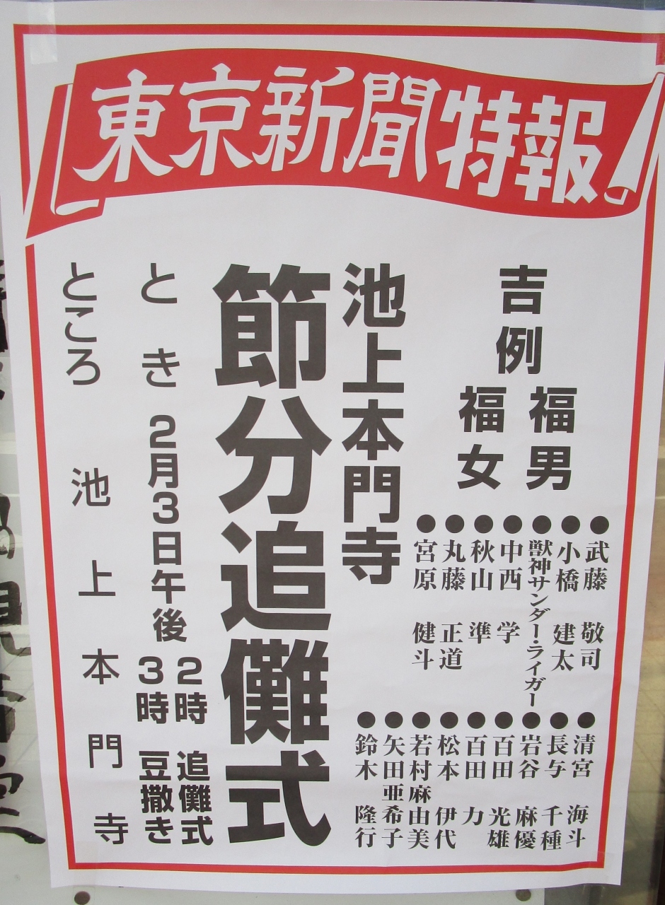 上空を1機のヘリコプターが取材に来ていましたが、後でTVを見たら、NHKのニュースで池上本門寺の豆まきが取りあげられていました。