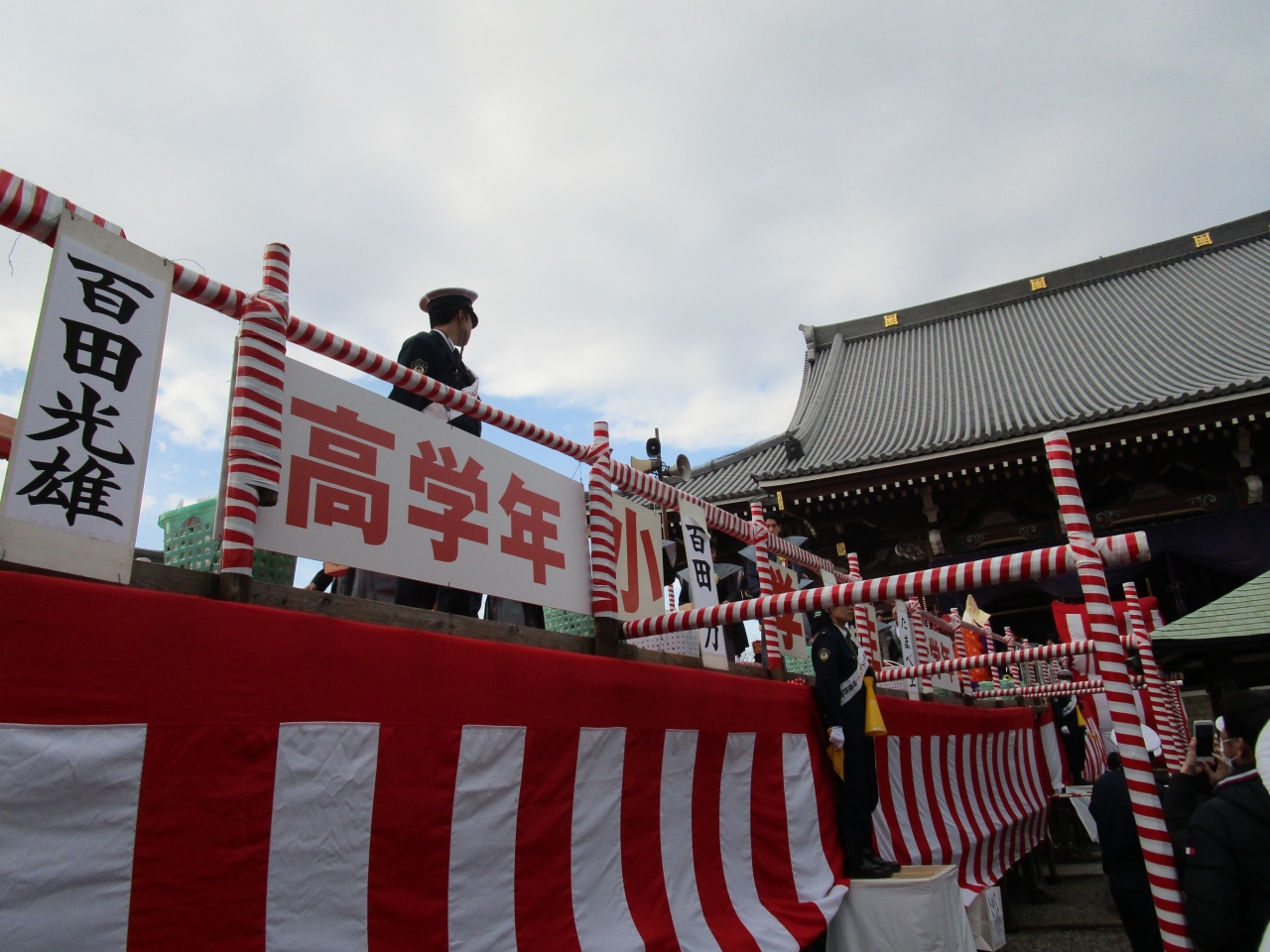 今年(2015年)も、多数の芸能界・スポーツ界の方々が福男・福女とともに法要・豆撒きに参列していました。