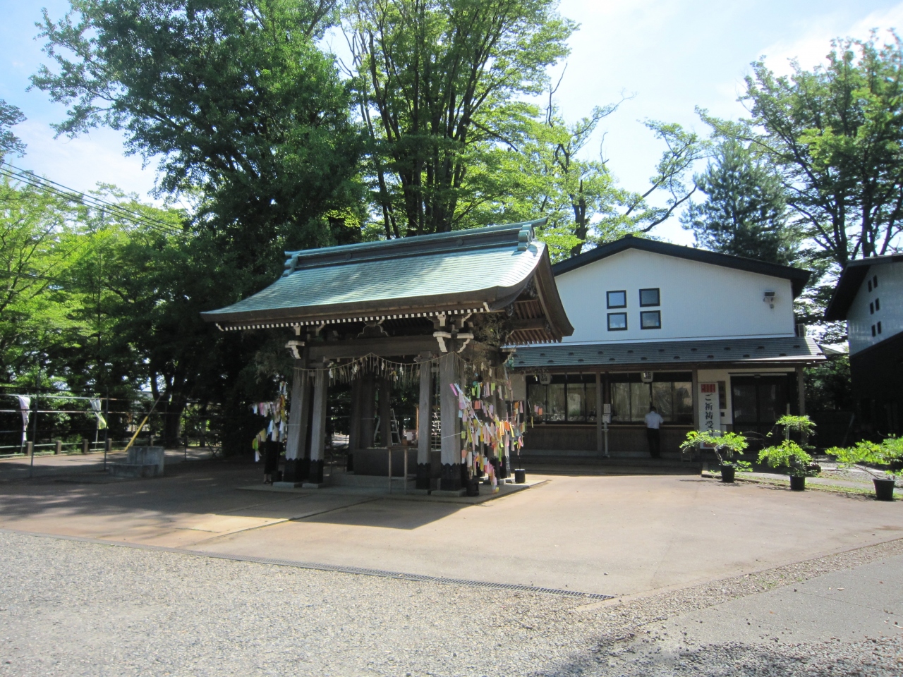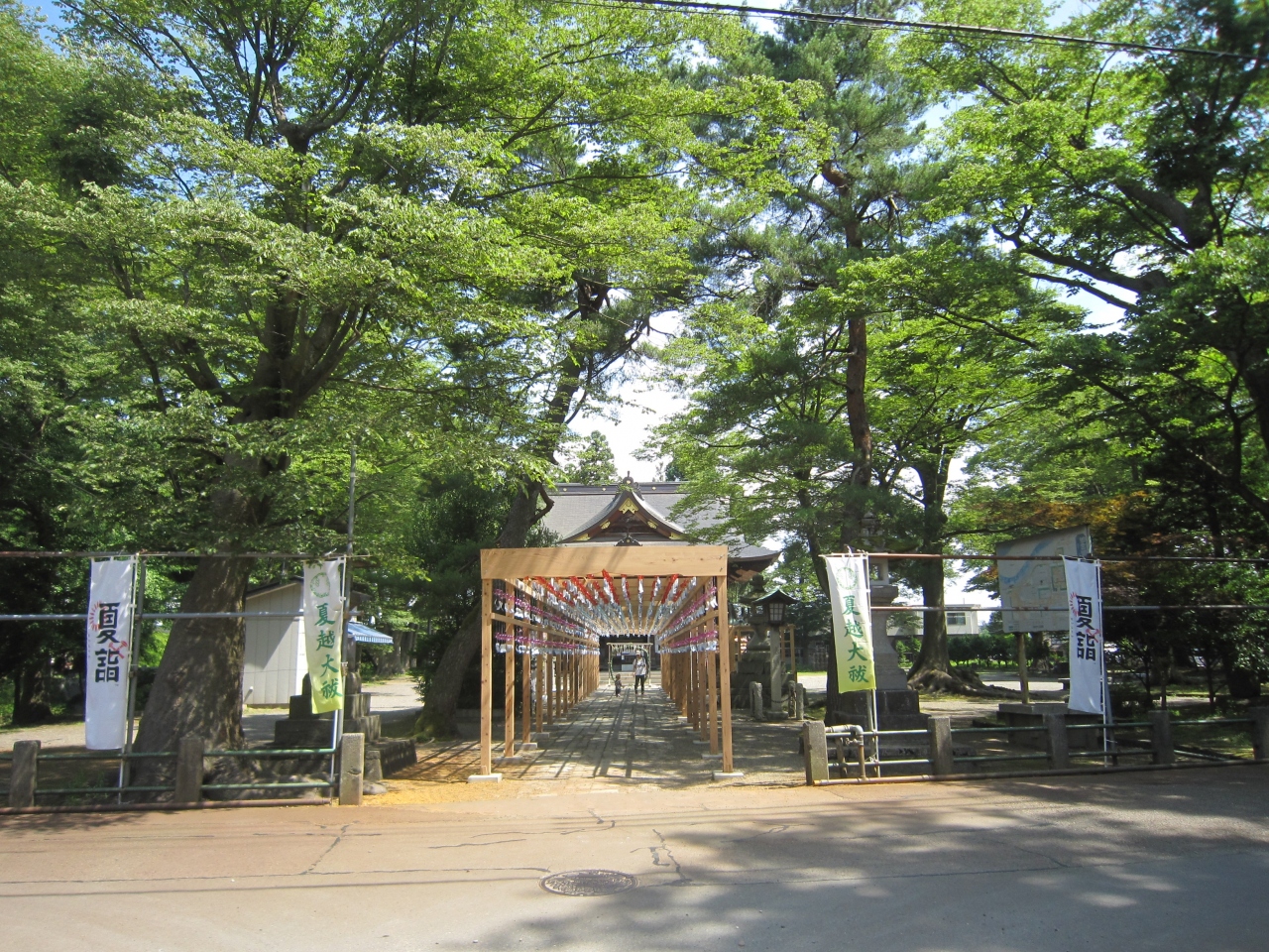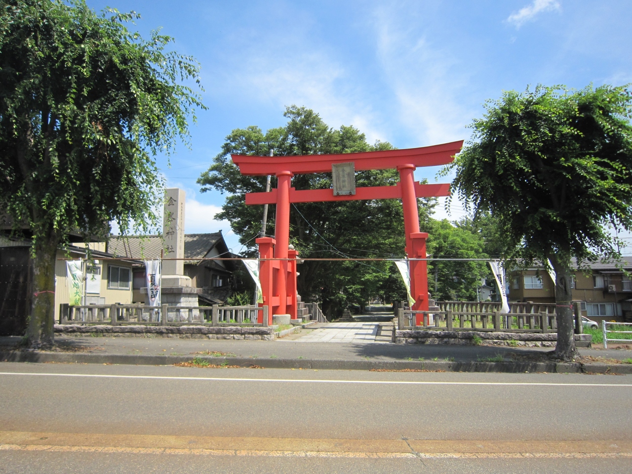 中越総鎮守、蔵王大権現、けやきの大木が多数ある一帯の蔵王の森に鎮座し地元の人々から蔵王様と呼ばれ親しまれているそうです。J... 続きを読むR信越本線北長岡駅から徒歩約15分ですが、水道公園に行った後に大通りに出て徒歩で行きました。約20分1キロちょっとでしょうか。姉川の王神橋を渡り直ぐに大きな赤い鳥居、一の鳥居がありました。拝殿まで約200mの参道、鬱蒼とした木立の中を行くと二の鳥居、そして右側に社務所と手水舎、手水舎には花を浮かしており花手水と言うらしいです。初めて見ました。一般車道を渡り風鈴のトンネル、奉納された風鈴による風鈴祭りを5月末より開催しているそうで中を通ると風鈴の音で涼しく感じました。風鈴のトンネルを抜けた先には夏越の大祓の茅の輪(6月30日開催)、振り返ると両側に狛犬でなく狛馬があり、珍しく思いました。最後は拝殿に旅の無事を祈願しました。なお、右側は蔵王公園、左側は蔵王城址、安禅寺、蔵王観音堂、蔵王毘沙門堂があります。この神社は街中から離れていますが参拝者を呼ぼうと色々な催しをしており、流鏑馬が有名なようです。 閉じる