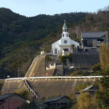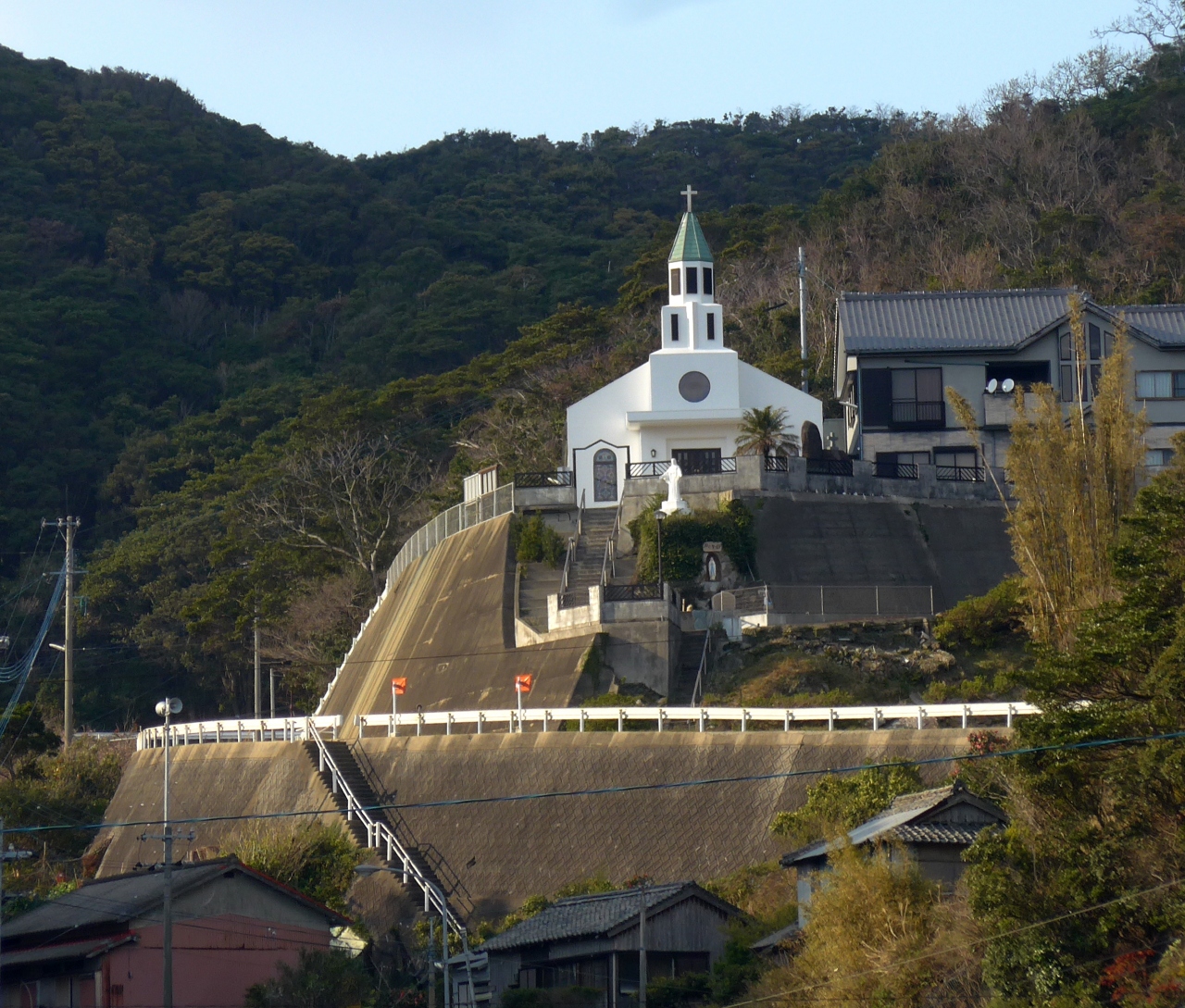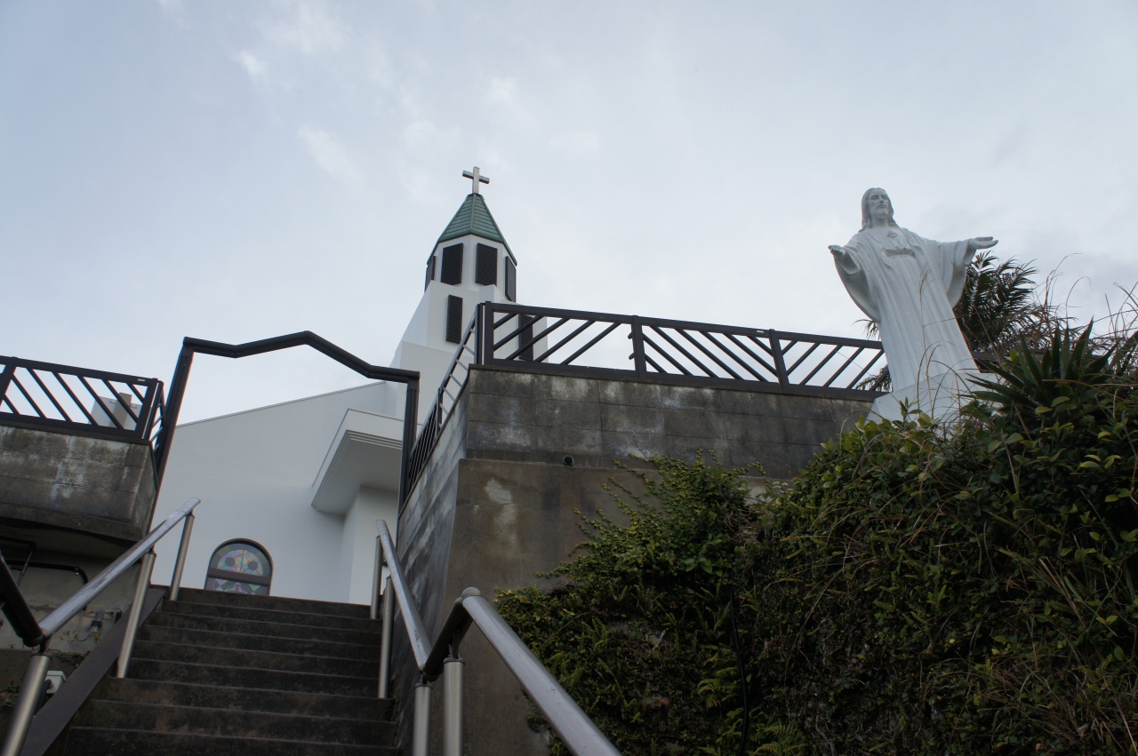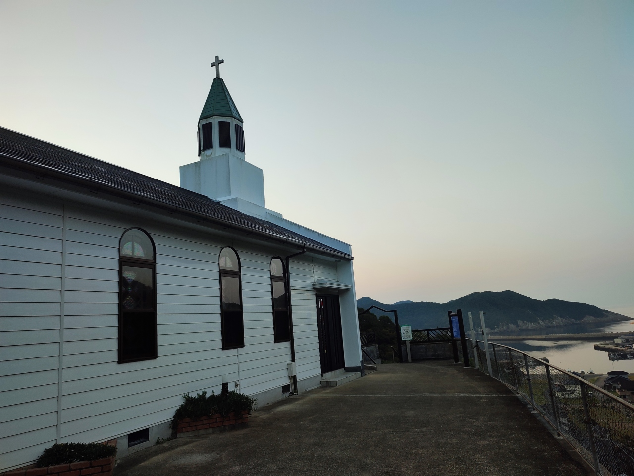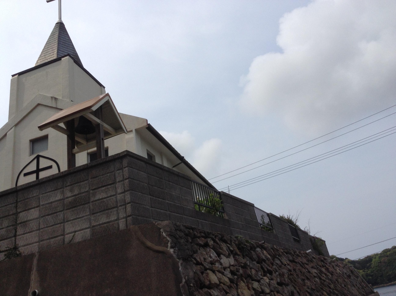 土井の浦港から見上げると最高.ステンドグラスが印象的な教会