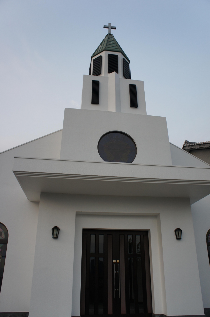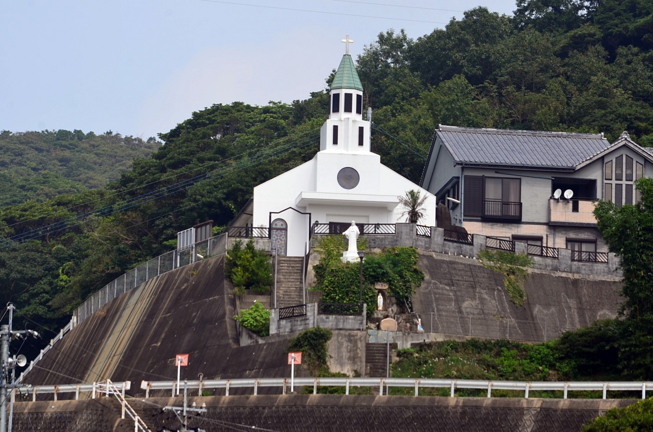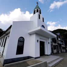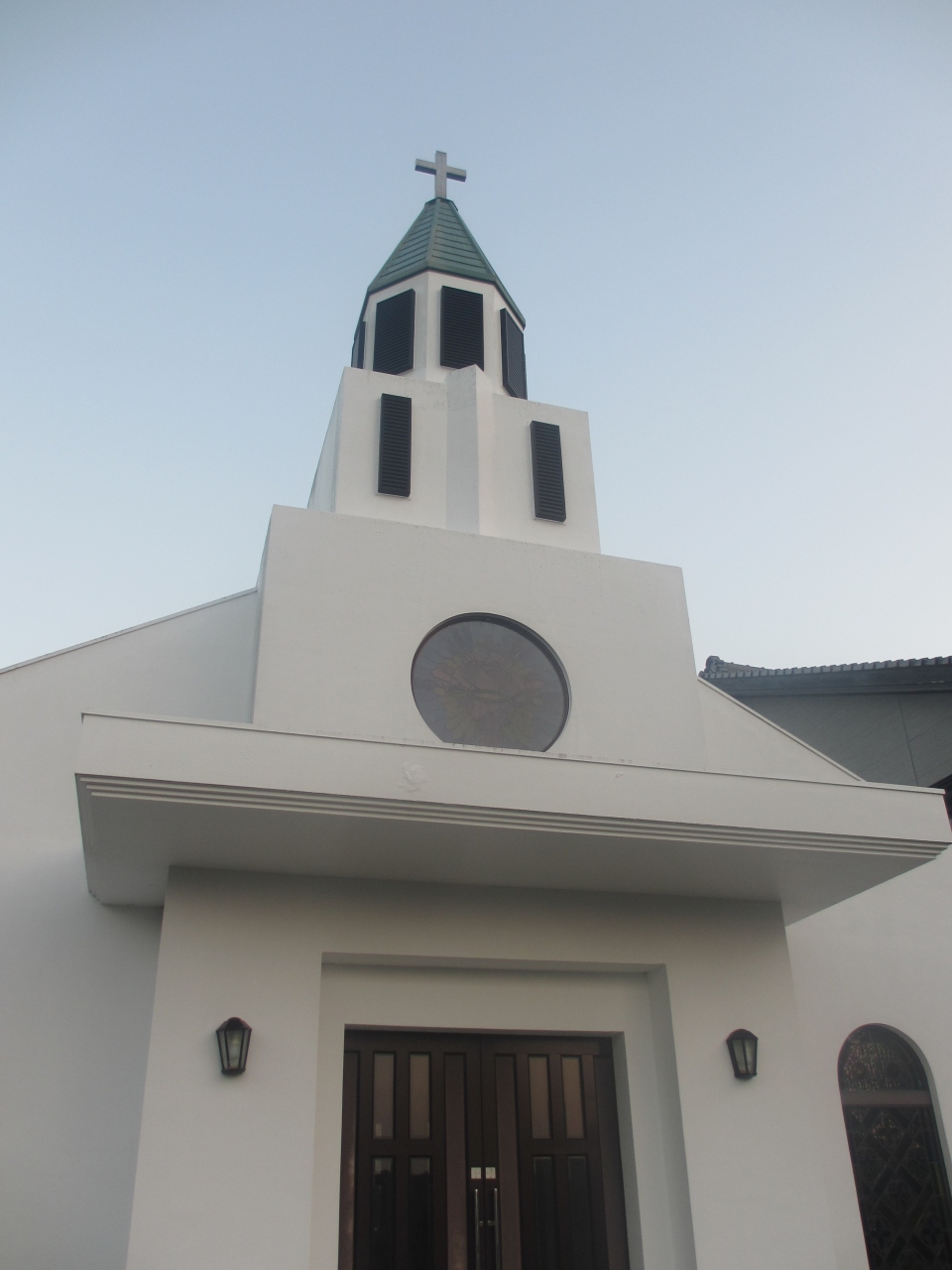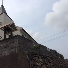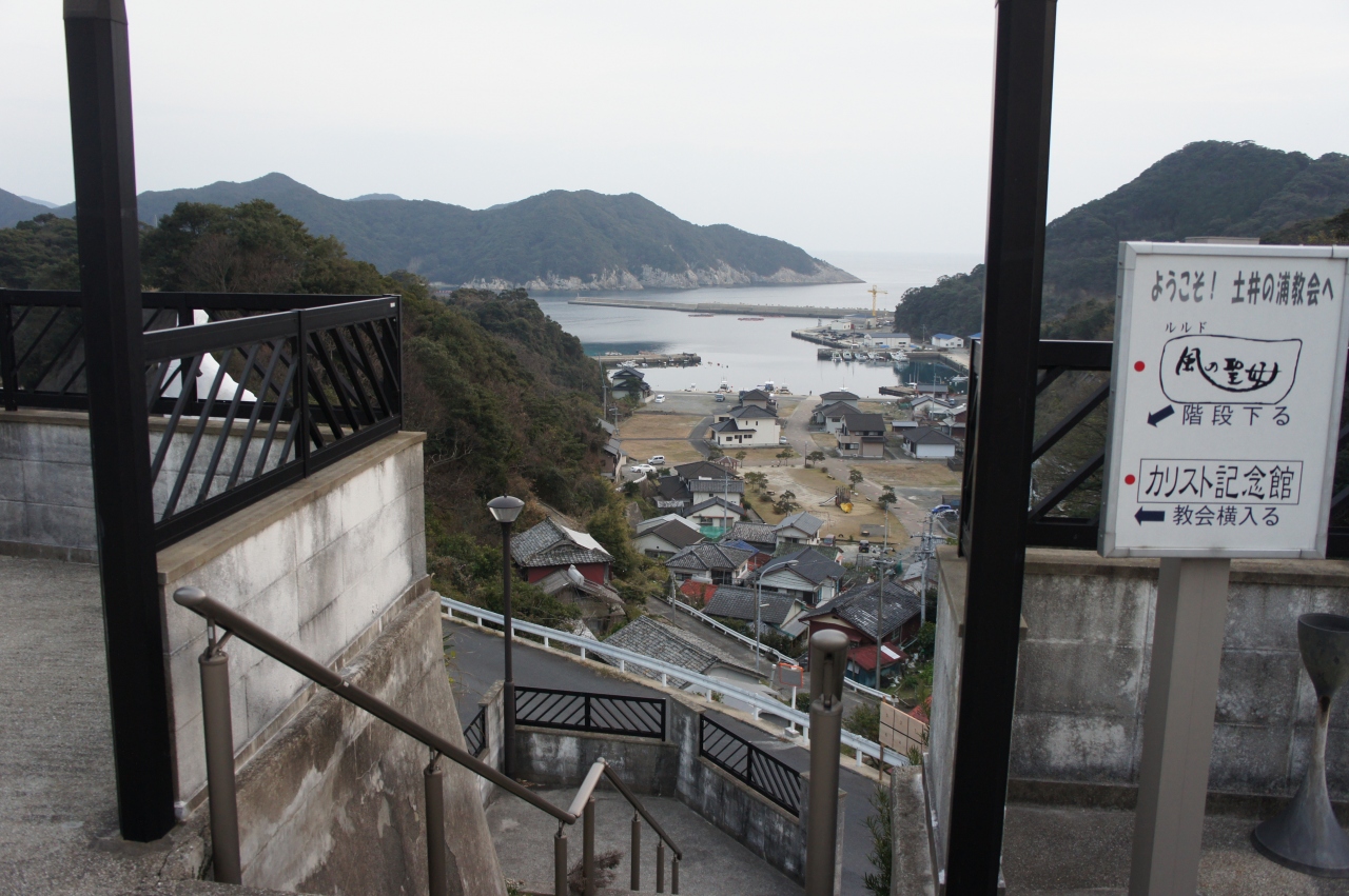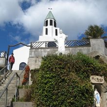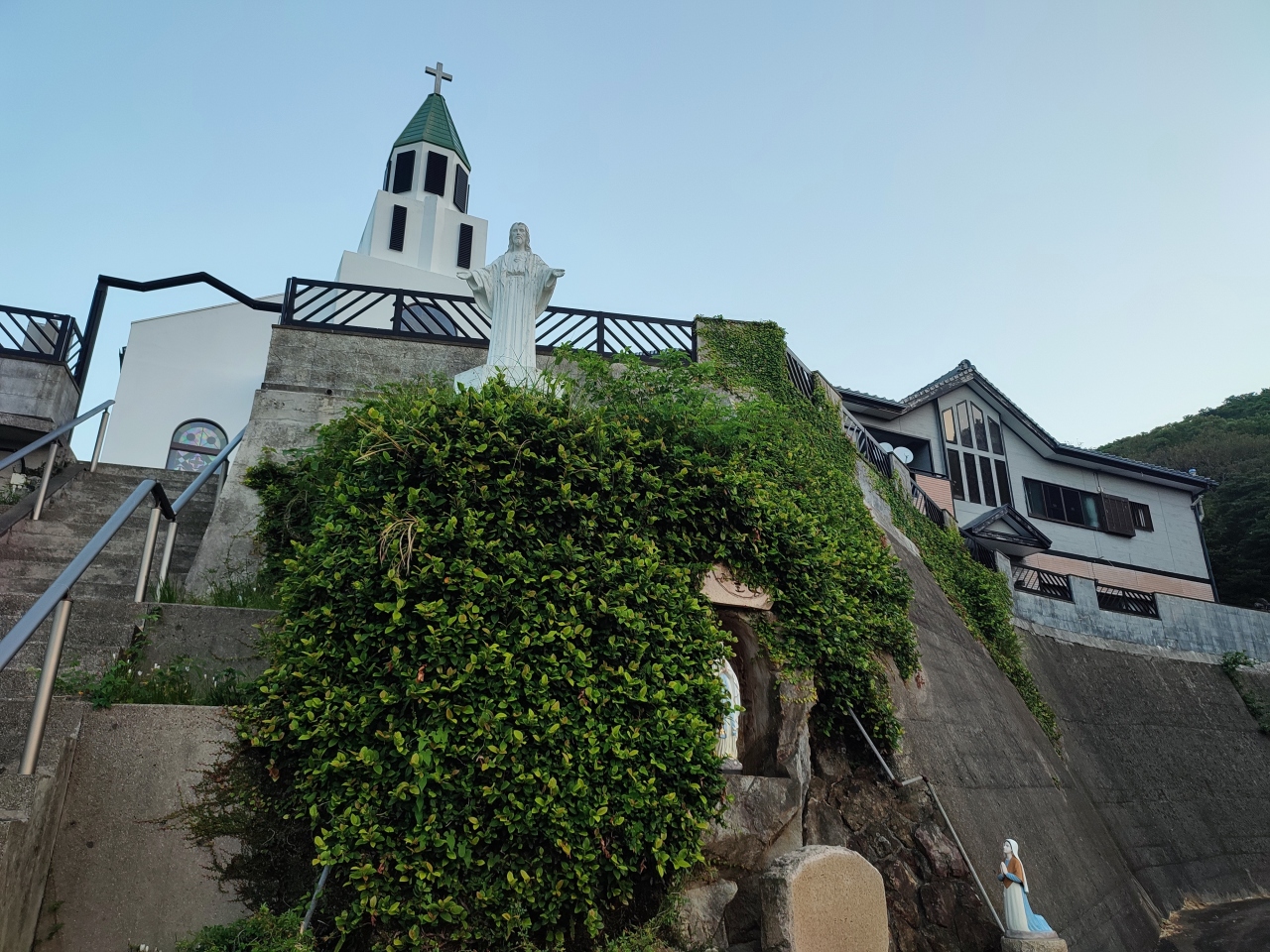土井の浦港から見上げると最高.ステンドグラスが印象的な教会