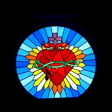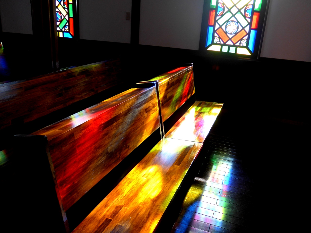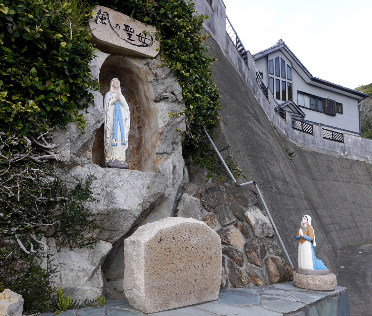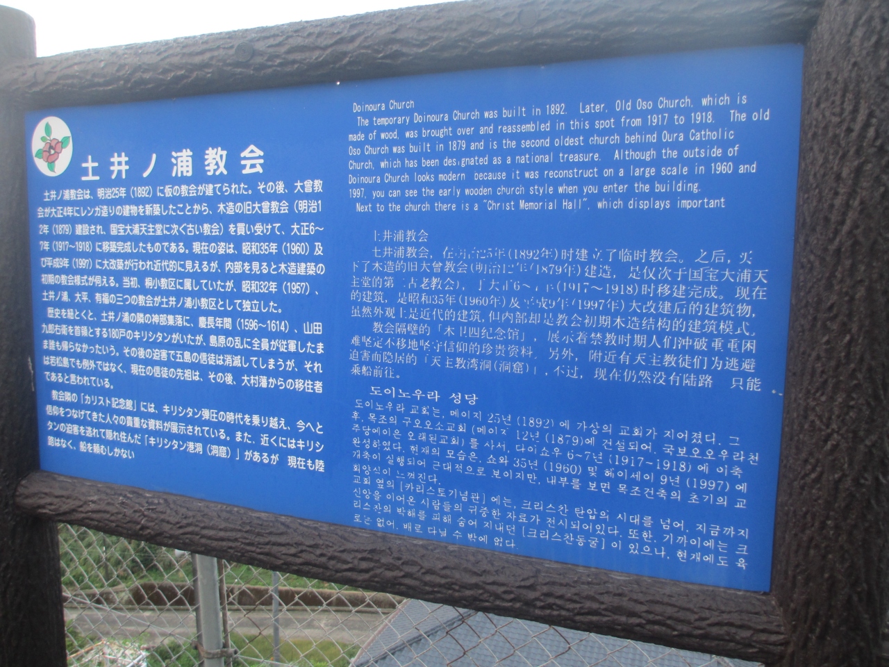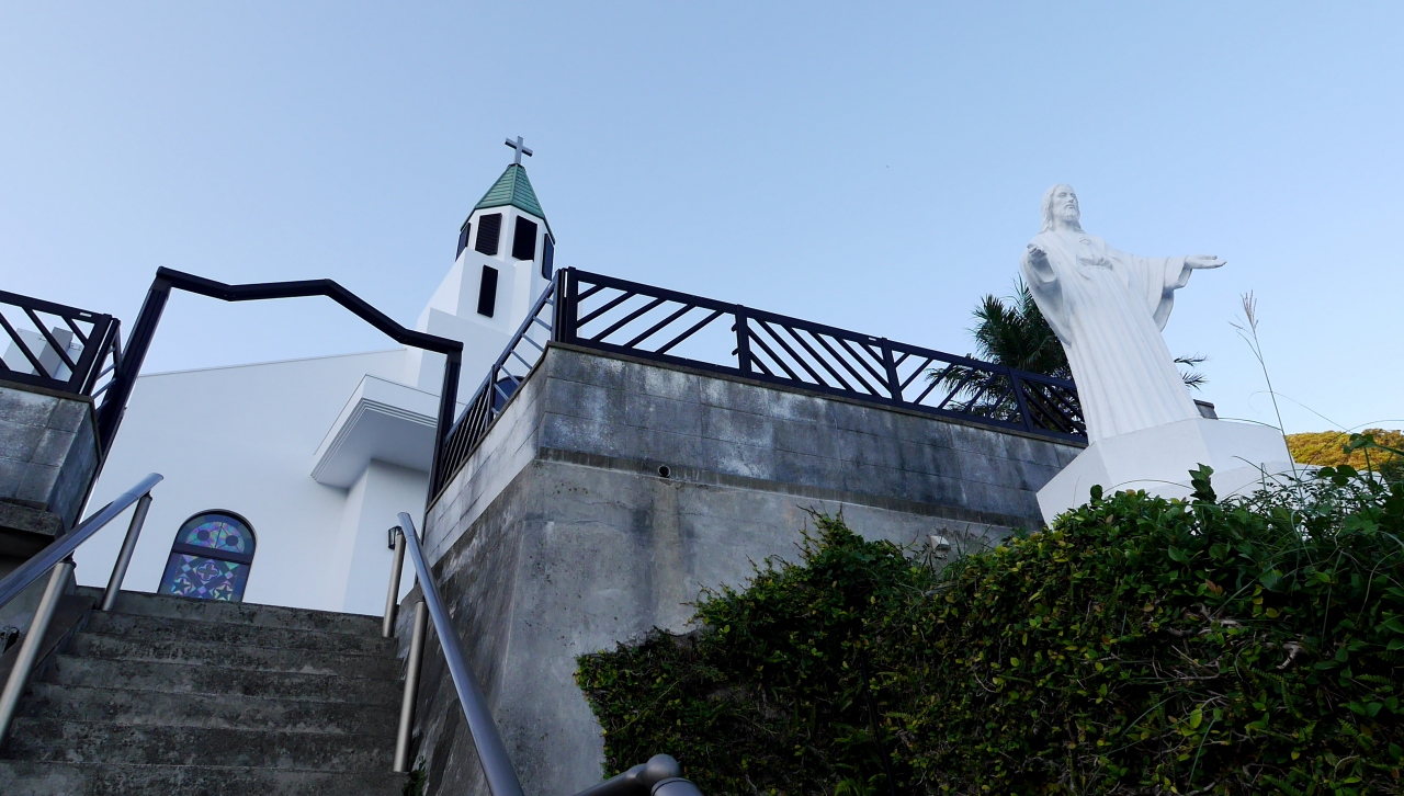 土井の浦港から見上げると最高.ステンドグラスが印象的な教会