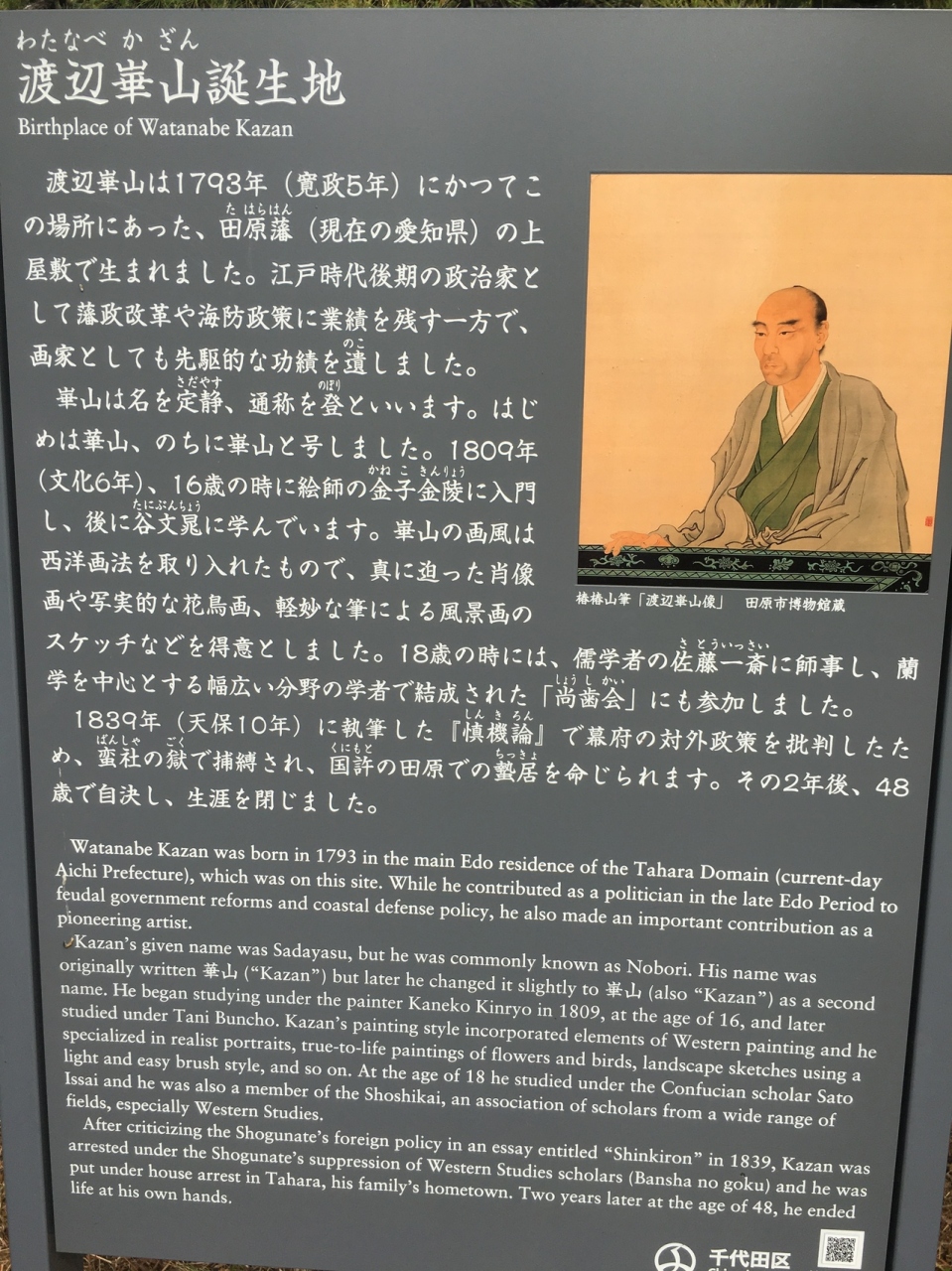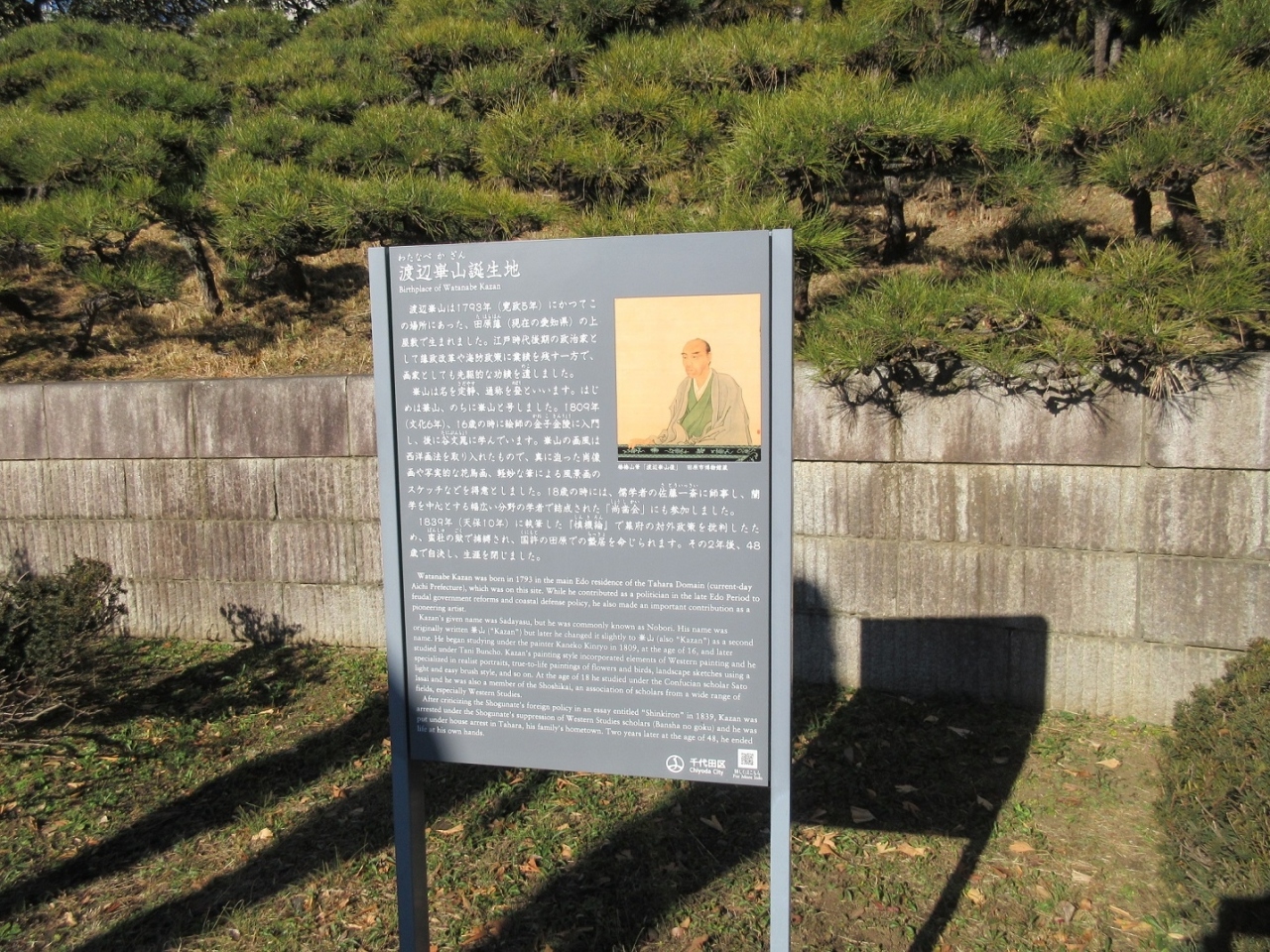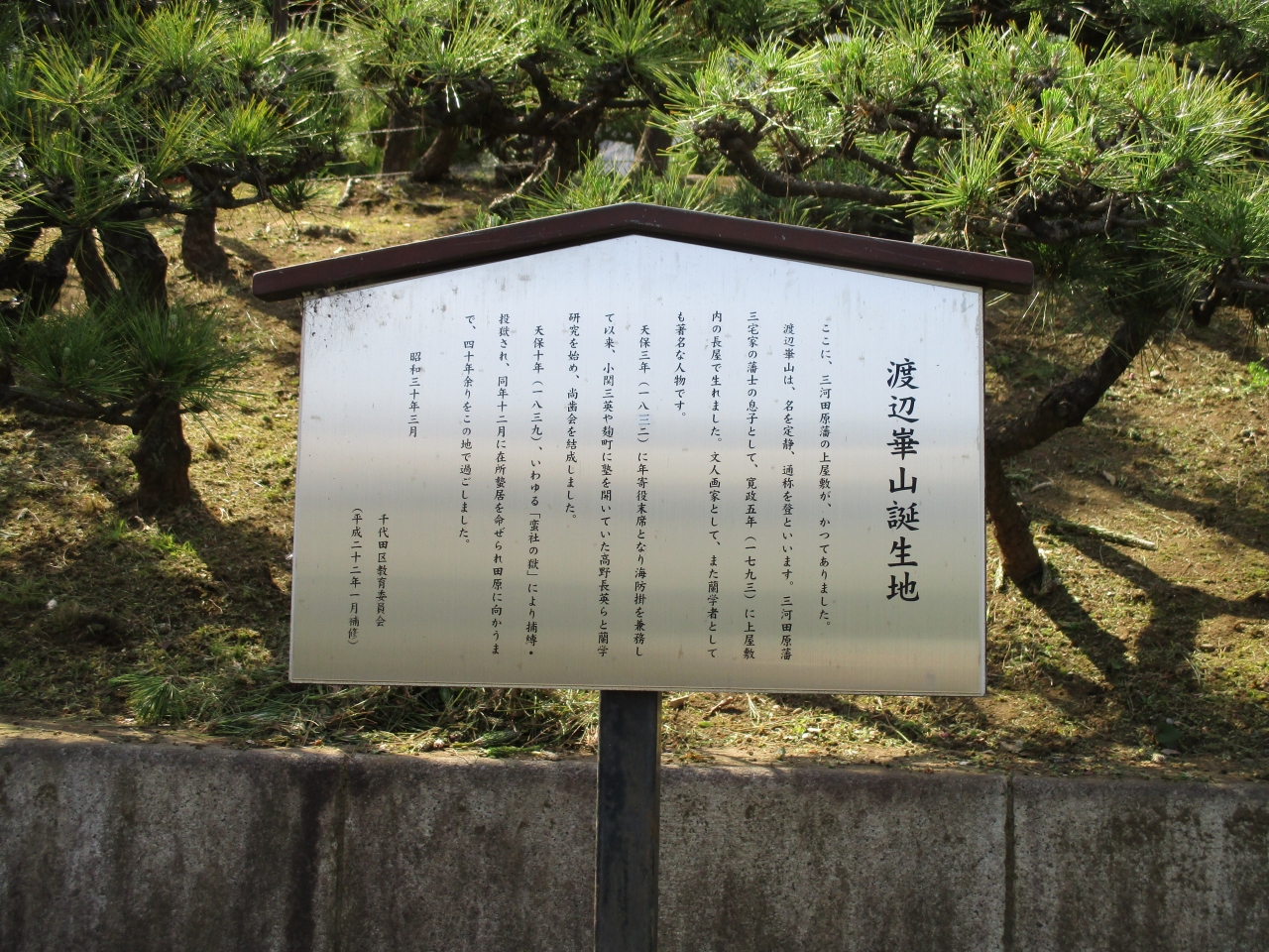 渡辺崋山の誕生地は、最高裁判所に隣接した三宅坂小公園の奥にあります。