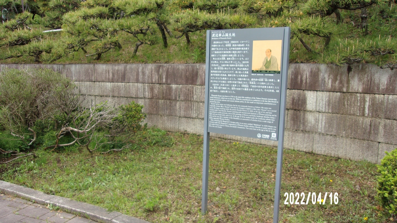 地下鉄桜田門駅の北東、内堀通りの三宅坂交差点横にある三宅坂小公園の植栽にこちらの説明板がある。説明板は立札のように上が屋根... 続きを読むのような形状で渡辺崋山について分かりやすく解説されている。絵などは記されていない。説明板の前の歩道は平日でも人通りが少なく、こちらの説明板を見ている人はいなかった。渡辺崋山は田原藩の家老、蘭学者で、ここに生まれた。厳しい生活のなか、絵画を学び伝統的な画法に西洋式の遠近法や陰影法を取り入れたスケッチを書くとともに、西洋世界の実情について「慎機論」を著したことで知られる。この付近には最高裁判所、国立図書館、広告記念像等がある。渡辺崋山やこの界隈に関心や知識のある方は訪問するのもいいかもしれない。 閉じる
