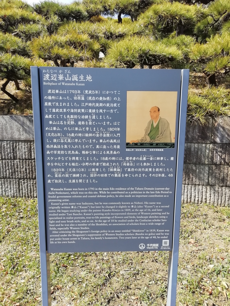 国会議事堂をはじめ東京観光の際、三宅坂の最高裁判所近くの植え込みの中に【渡辺崋山誕生地】の案内板があり、立ち止まって内容を... 続きを読む確認しました。1793年にこの地で生まれたことや、幕藩改革や海上防衛に功績があったこと、そして画家としての活躍について詳しく記載されていました。名前は知っていても、その功績についても、こうした歴史の舞台とリンクさせることで、より理解できました。 閉じる