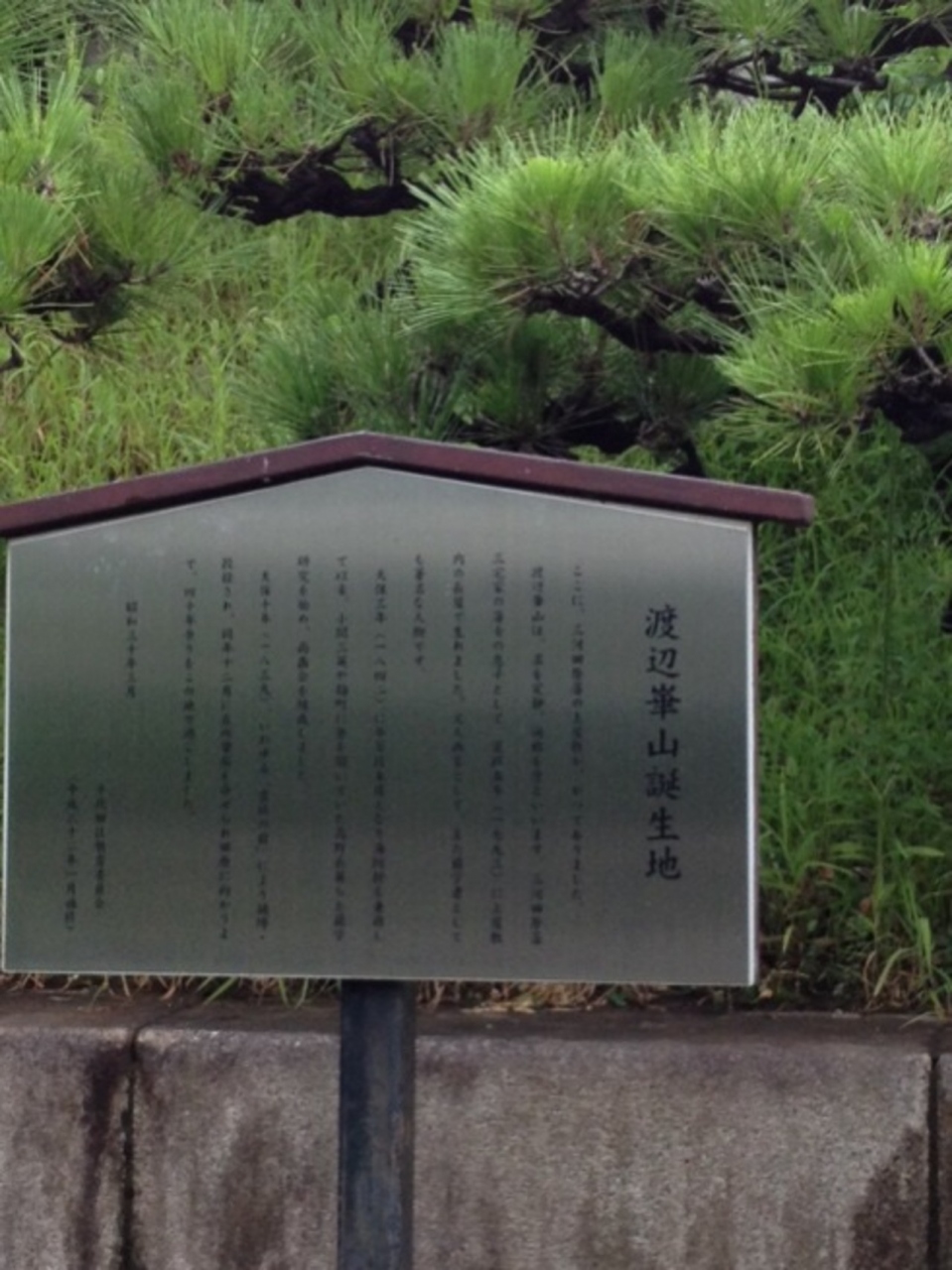 三宅坂の最高裁判所近くの植え込みの中に【渡辺崋山誕生地】の案内板があり、立ち止まって内容を確認しました。