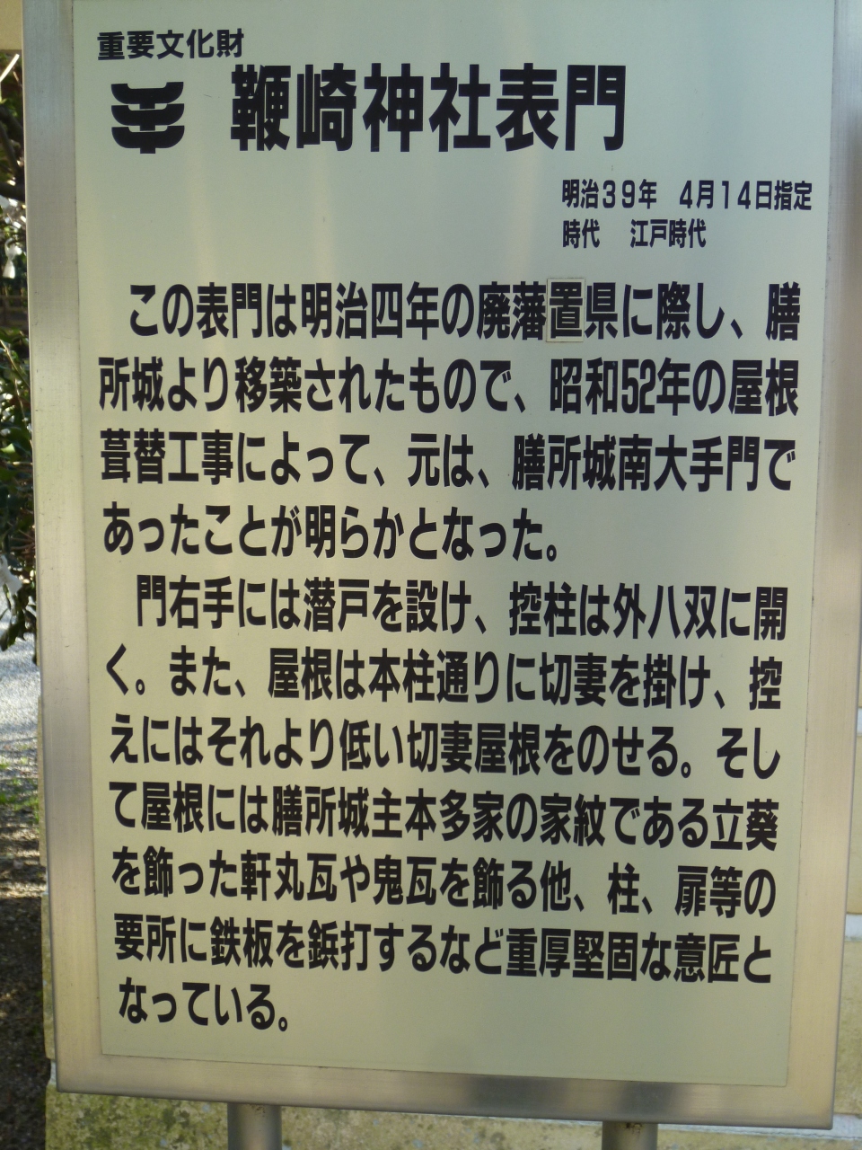 表門は、膳所城の南大手門