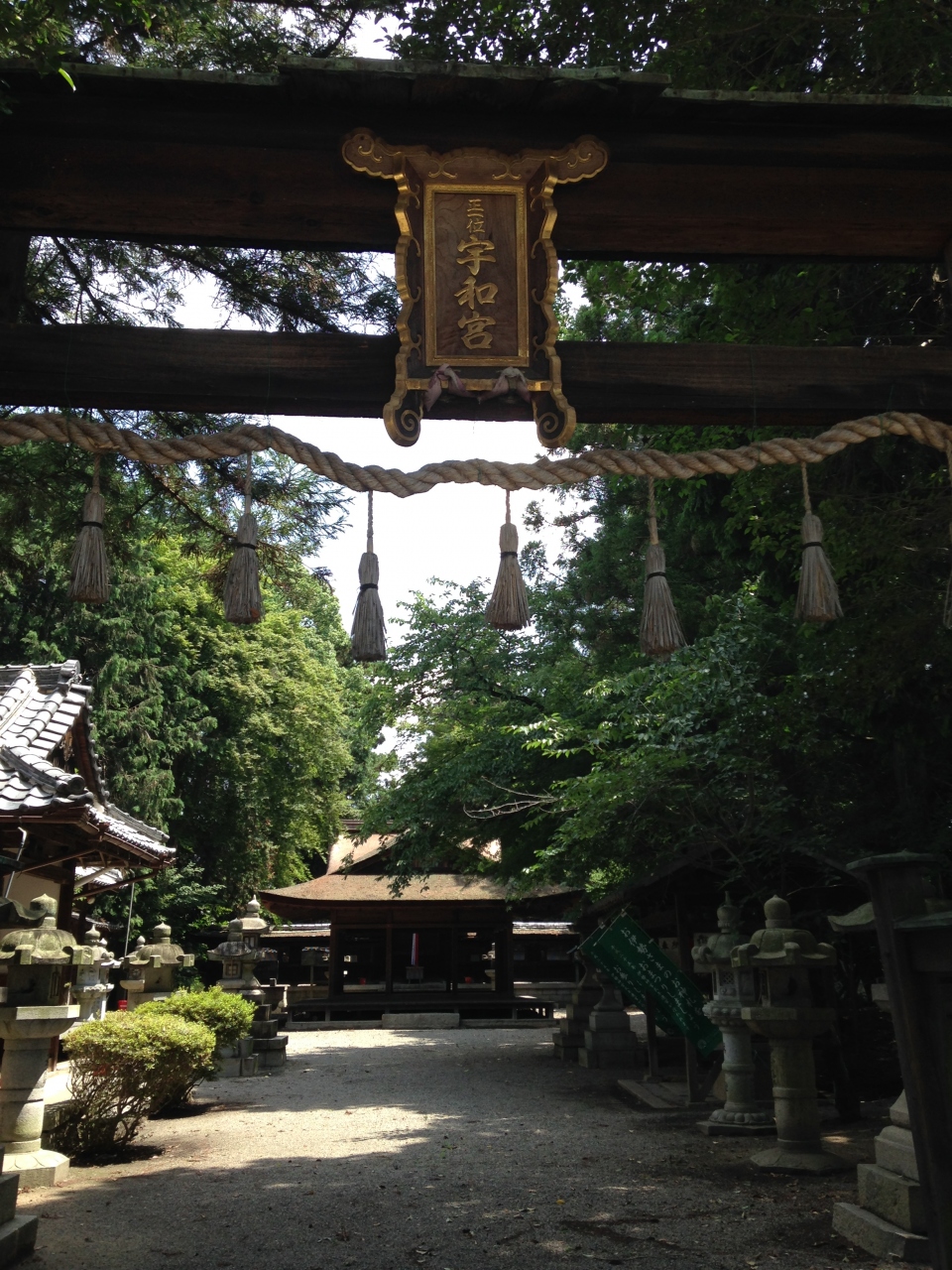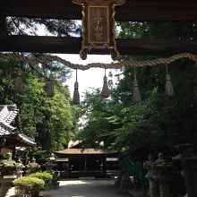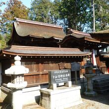 舞台形式の拝殿があり、普段の参拝は中門の前で行う社殿配置です。瑞垣で囲まれているものの、本殿を見ることができました。華美な彩色や彫刻は無く、正面に御簾が下げられています。雅やかな印象の本殿でした。