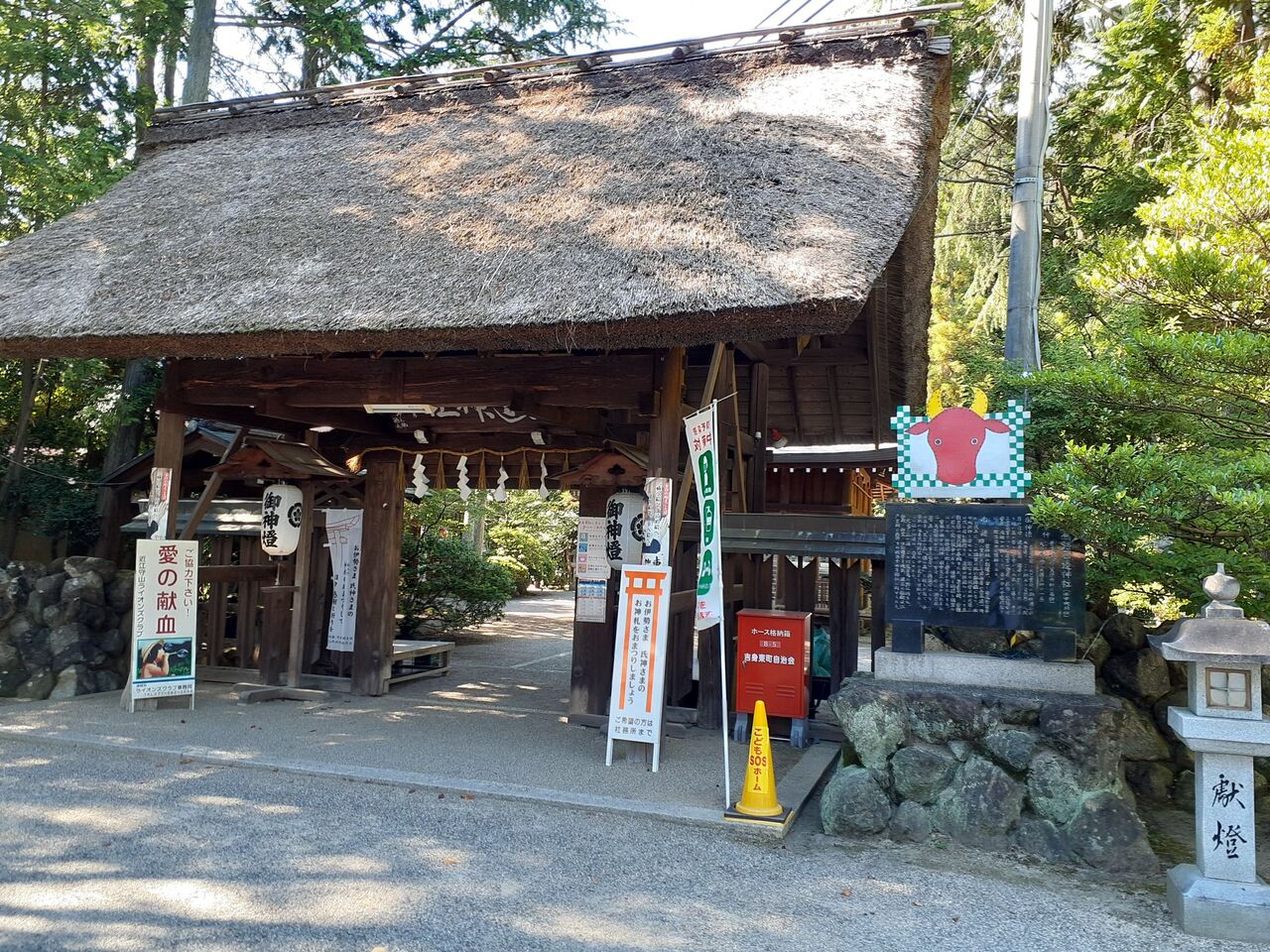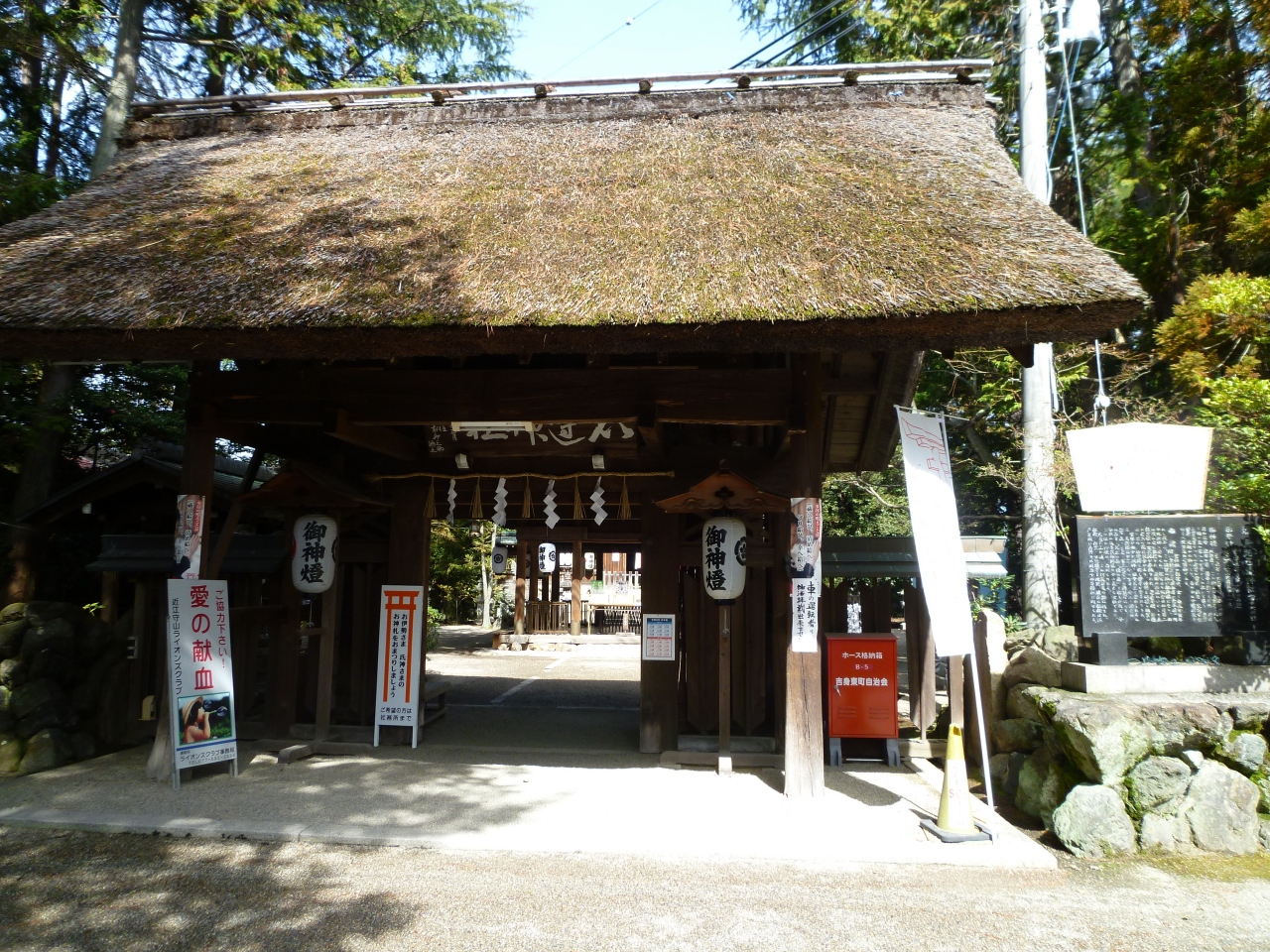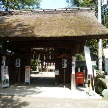 神社の入口には変わった門がありました。屋根が茅葺でした。神門だそうです。