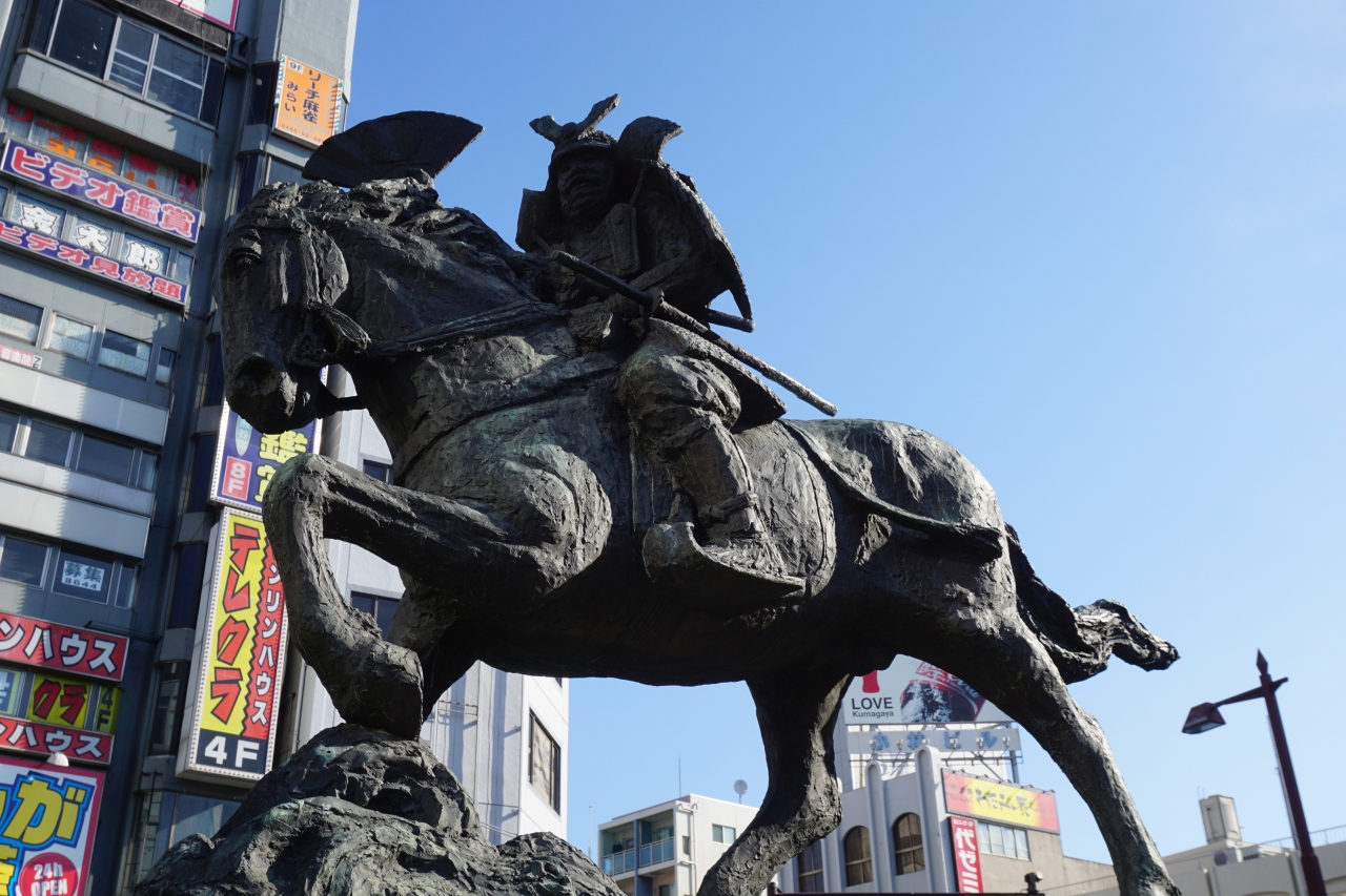 平安時代末期から鎌倉時代初期にかけて活躍した熊谷(くまがい)次郎直実公の像は、JR熊谷(くまがや)駅北口ロータリーのところ... 続きを読むに建てられています。 直実公は、源頼朝に従い、一ノ谷の戦いで平熱盛を討ち取りました。 その後は戦場に姿を見せることはなくなり、出家して修行されたとのこと。 なお、晩年は熊谷に戻り、念仏を唱えるため立てた草庵が、現在の熊谷寺(ゆうこくじ)の始まりと言われています。 いつも旅に同伴しているぬいぐるみの名前(チーバ次郎直実)にちなんで訪れました。 アレコレ書きましたが、像は武将らしくカッコいいです。 閉じる