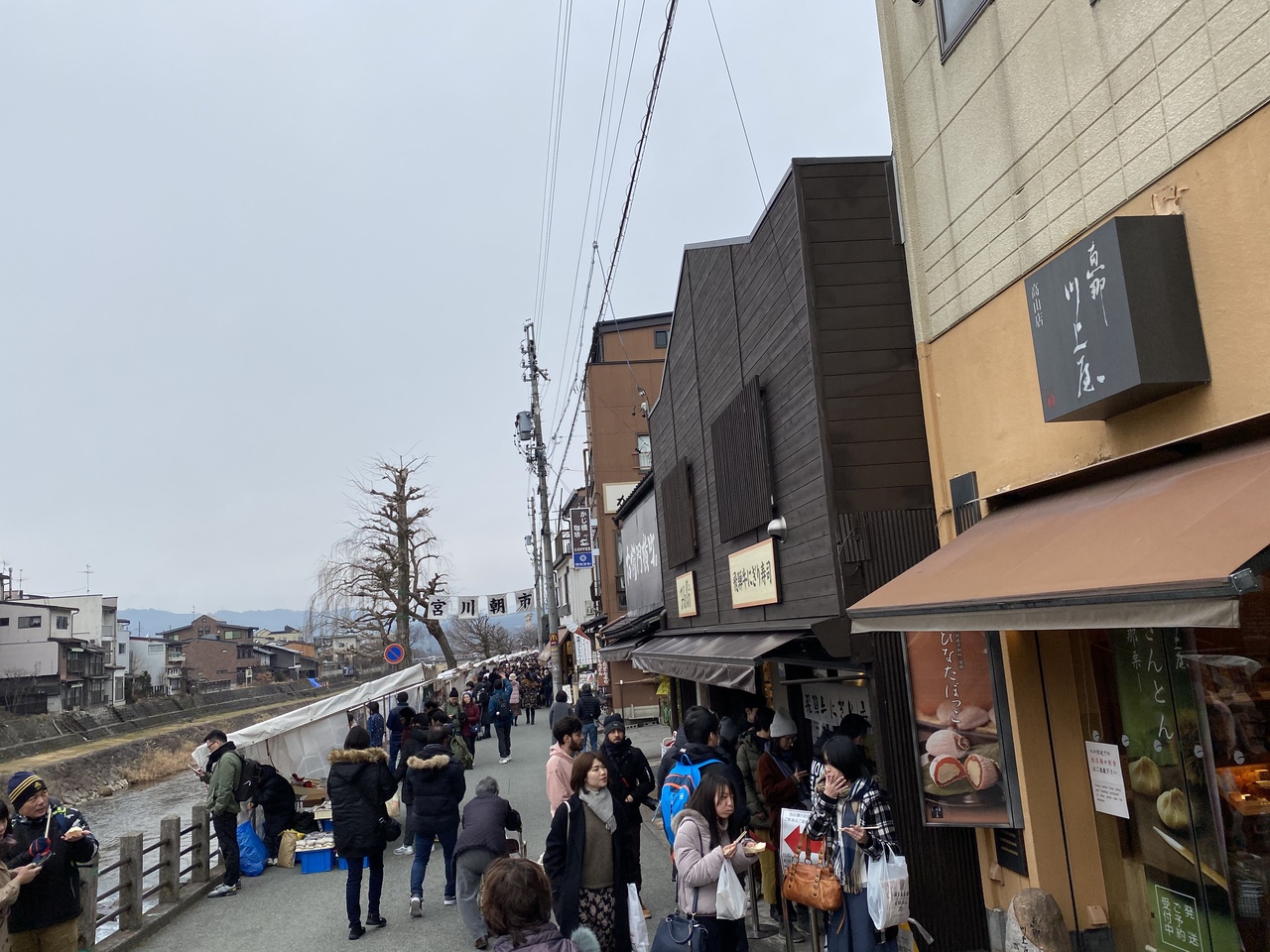 両方とも覗いてみました。 宮川はアジア系の外人さんと修学旅行の学生の食べ歩きばかりで、店もその手が増えている模様。 一... 続きを読む部の外人さん(アジア系ではない人たち)は古着物やお土産店を眺めたり雰囲気を味わっている感じ。 陣屋のあさイチはほとんど地元かお馴染みのお客さんのみと言った様子でした。 閉じる