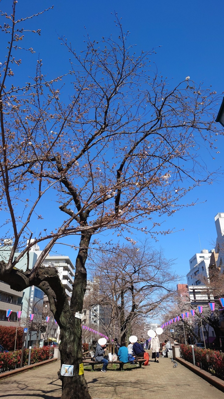 道路の中央歩道にベンチやトイレもあり普段... 続きを読むから憩いの場所になっていますが、桜並木になっているので毎年桜まつりが行われる。コロナ禍では祭りは無かったが桜はいつもの様に咲き、人影が少ない中でもゆったりと花見ができた。今年は四年ぶりの規制なしの花見になり近所のお寺にお彼岸の墓参りに来たついでに寄ってみた。今年は東京はとても早い桜の開花でしたが、ここは今日19日はまだ二三分咲きでまだまだこれからでしたが、良いお天気で休日だったので久しぶりに大変賑わっていました。近隣にはお洒落な飲食店も多く露店やイベントもあるのですが、今年はどうなのでしょう。満開になるととてもキレイでなごやかな所です。