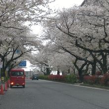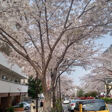 道脇にも歩道脇にも桜があるので豪華に感じる桜並木です