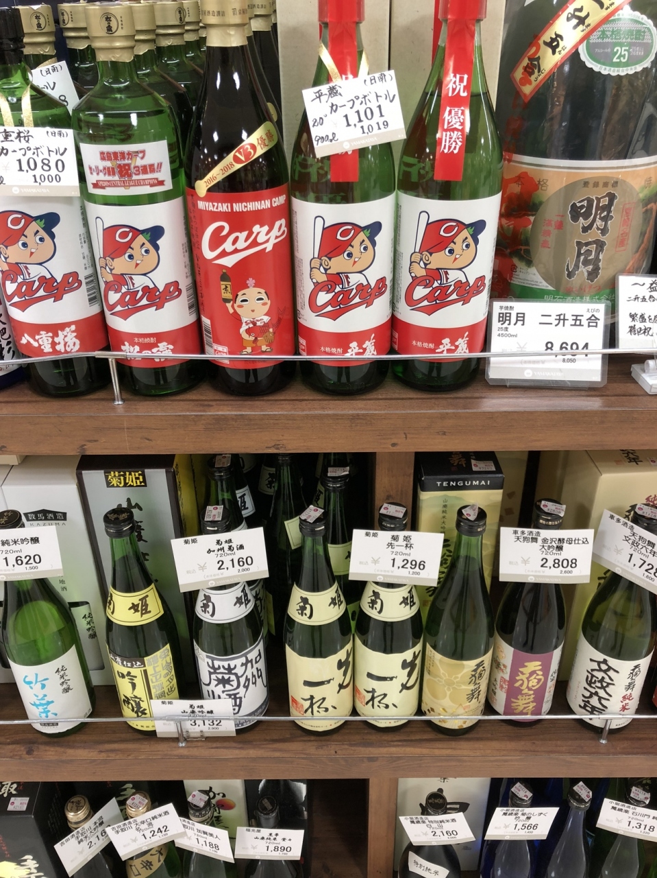 食料品売場では広島カープのラベルが貼られたお酒が販売されていました。