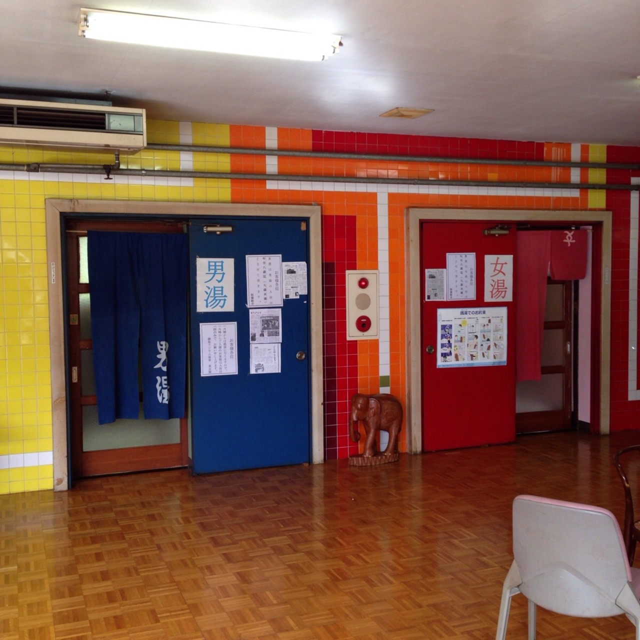 料金は、2階の休憩室を使えて昼間は900円ですが、1時間半以内の利用なら400円返金、16時以降銭湯とおなじ450円になります。入口で料金を払い券をもらい、脱衣場の入口にある番台で券を渡すようになっています。