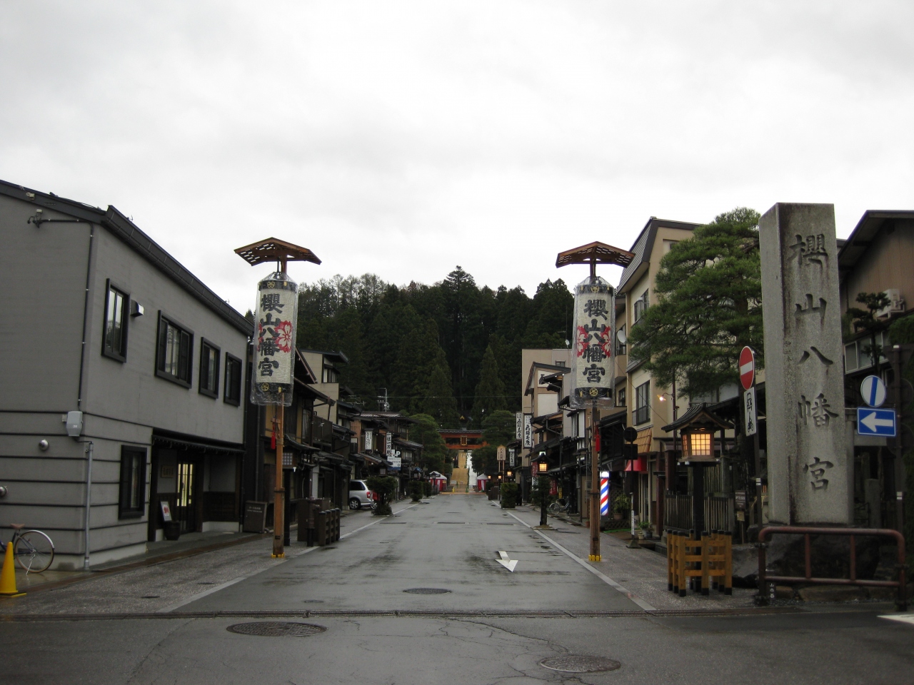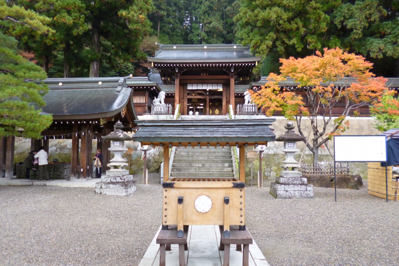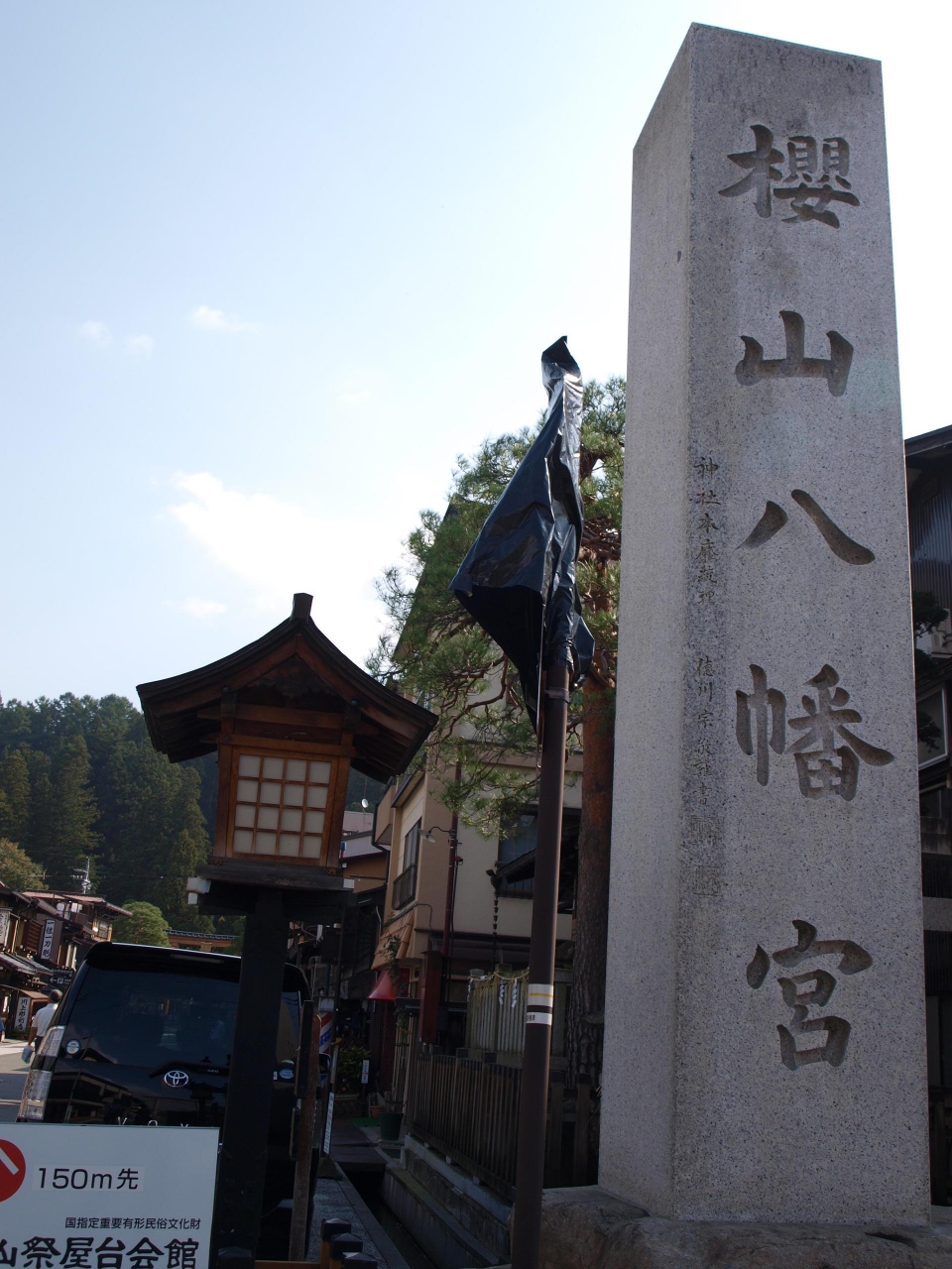 荘厳な雰囲気漂う「櫻山八幡宮」。秋の高山祭(八幡祭)の例祭の場所として大変有名で多くの参拝客の方でにぎわっています。境内には火防鎮護の神「秋葉神社」、菅原道真公をご祭神とした「天満神社」、五穀豊饒・商売繁盛・養蚕・各種産業の神「稲荷神社」、海上交通安全の「琴平神社」、武勇の神・歯の神をご祭神として「照前神社」といった末社があり、散策しながらゆっくりとお参りができます。仁徳天皇の時代、飛騨山中に両面宿儺(りょうめんすくな)という凶族が天皇に背いて人民を脅かしていました。征討将軍の勅命を受けた難波根子武振熊命は、官軍を率いて飛騨に入ったといわれています(日本書紀)。武振熊命が、当時の先帝応神天皇の御尊霊を奉祀し、戦勝祈願をこの櫻山の神域で行ったのが創祀と伝えられています。 秋の高山祭(八幡祭)の例祭が行われる荘厳な神社