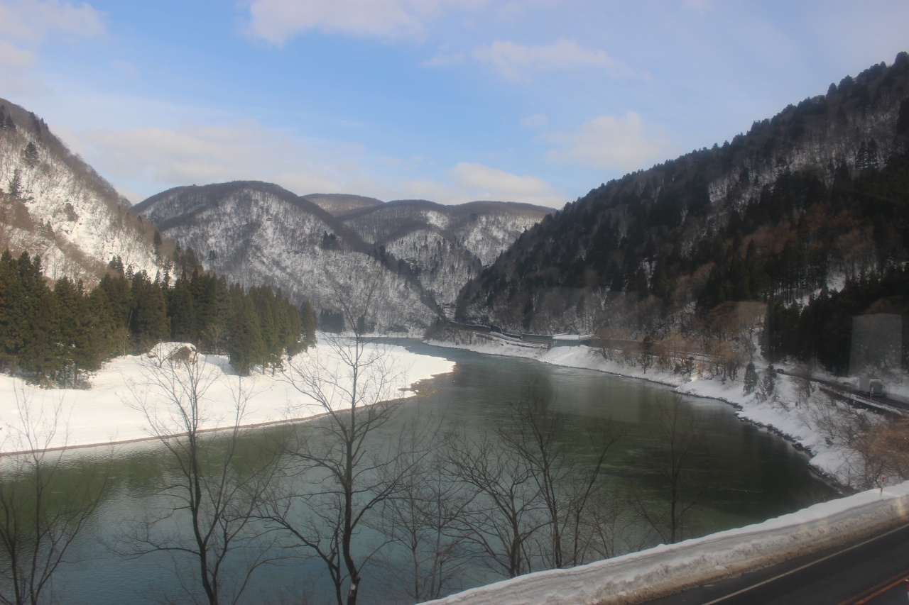 冬の最上川は水墨画のようでした