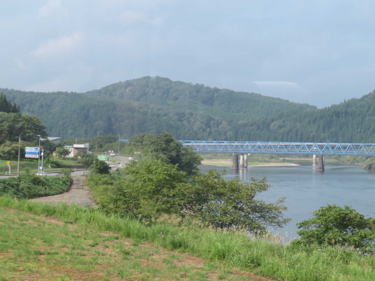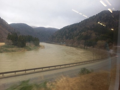 代行バスで最上川沿いを走る