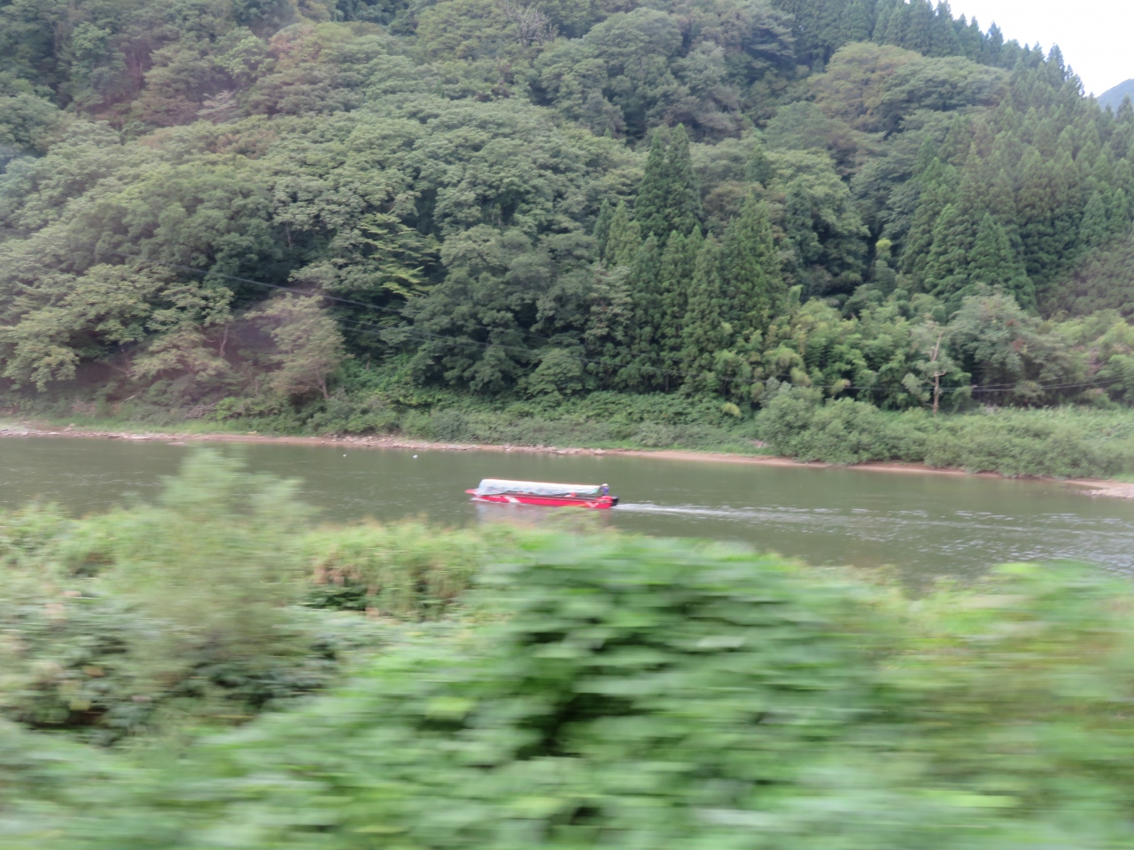 路線が最上川に沿って走り、急こう配や急カーブが少ないため、ローカル線にしてはかなり速く感じた。古口駅周辺がいちばん最上川の流れが良く眺められるのだが、乗車した時は、大雨が降った後のためか、川は濁流だった。