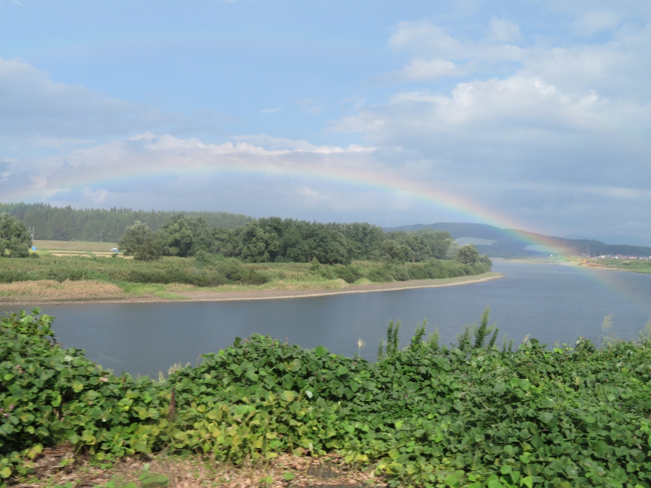 並行する国道47号線のバイパス道路の建設に伴って陸羽西線のトンネル改修も必要になったとそうで、2022年5月からおよそ2年... 続きを読む間の長期鉄道運休。バス代行になっています。 乗車したのは余目駅から新庄駅間の快速便。およそ1時間10分の所要時間でした。 JRバス東北の高速バス仕様で眺めもよく。 快速便なので2駅停車。国道からはずれた駅に立ち寄るのでその分時間がかかるのはやむなし。 これが角礫停車便だとおよそ1時間半かかります。 途中の区間では最上川に寄り添うように走り、美しい眺めを楽しむことができました。 鉄道よりもむしろ川の眺めは良いのでバス代行機関限定の眺めとなります。 なお、この日は運の良いことに最上川にかかる美しい虹も偶然見ることができました。 閉じる
