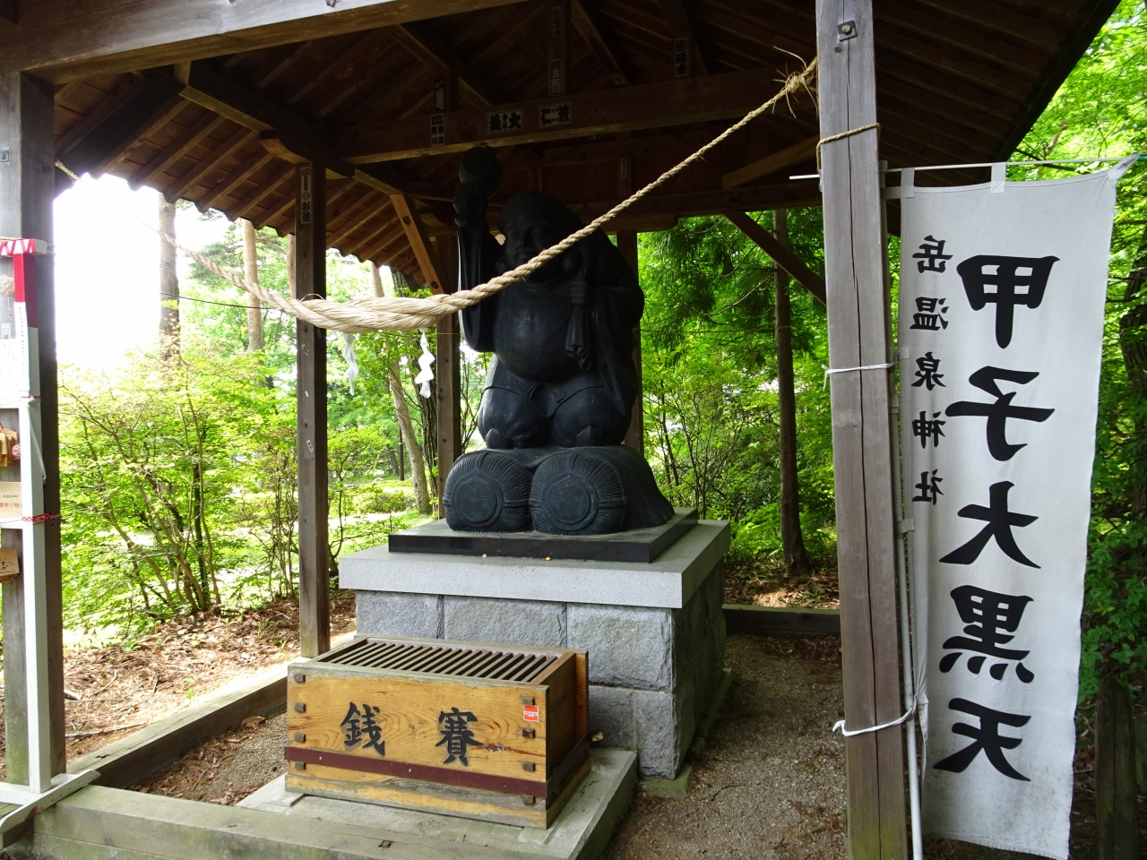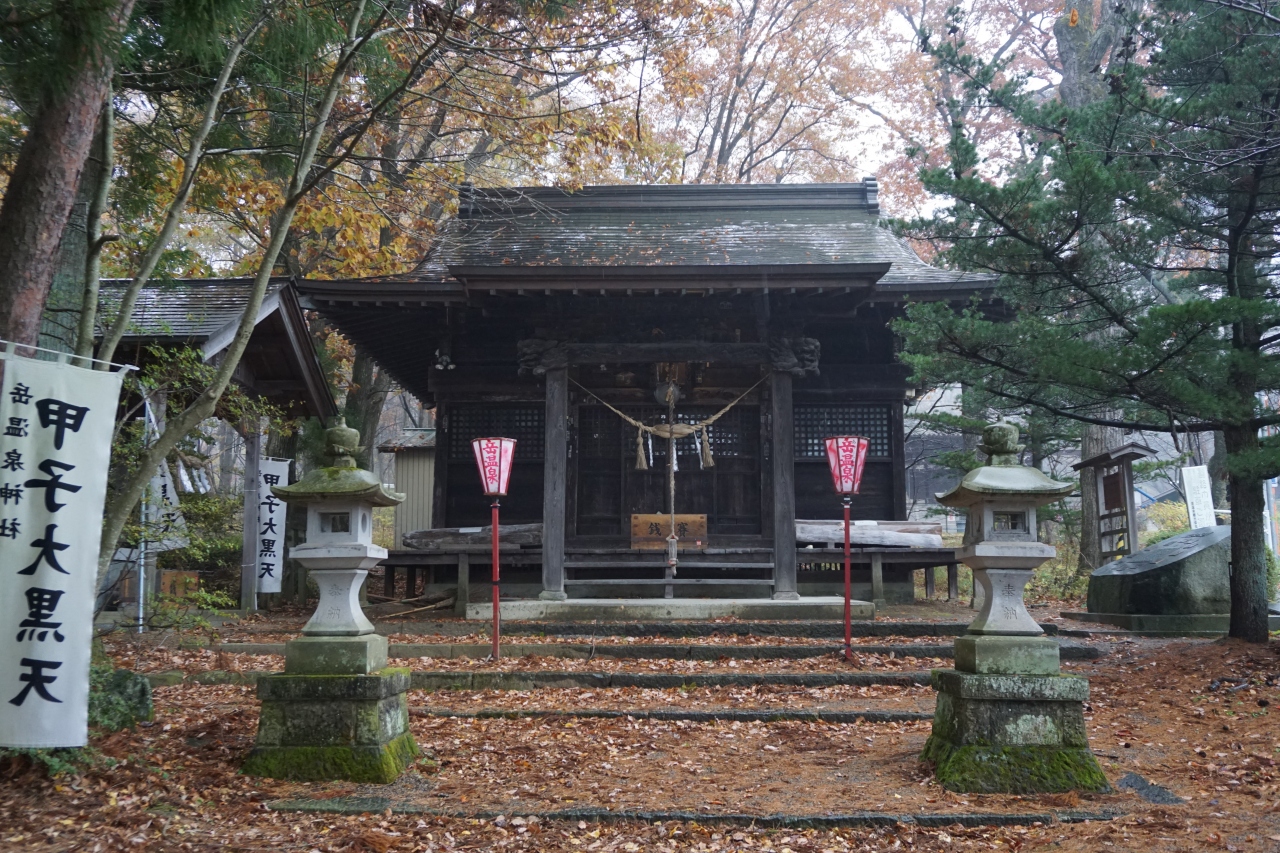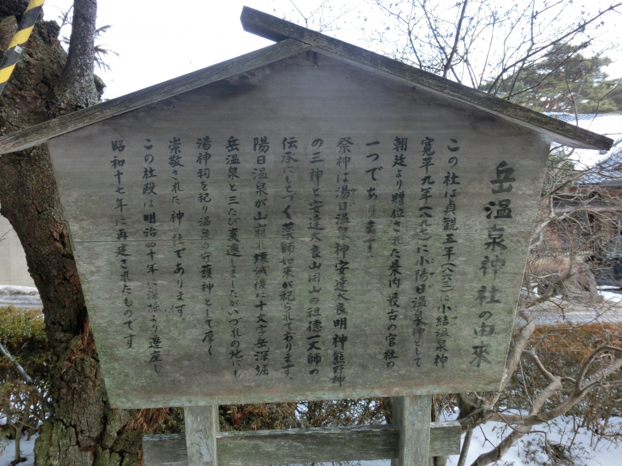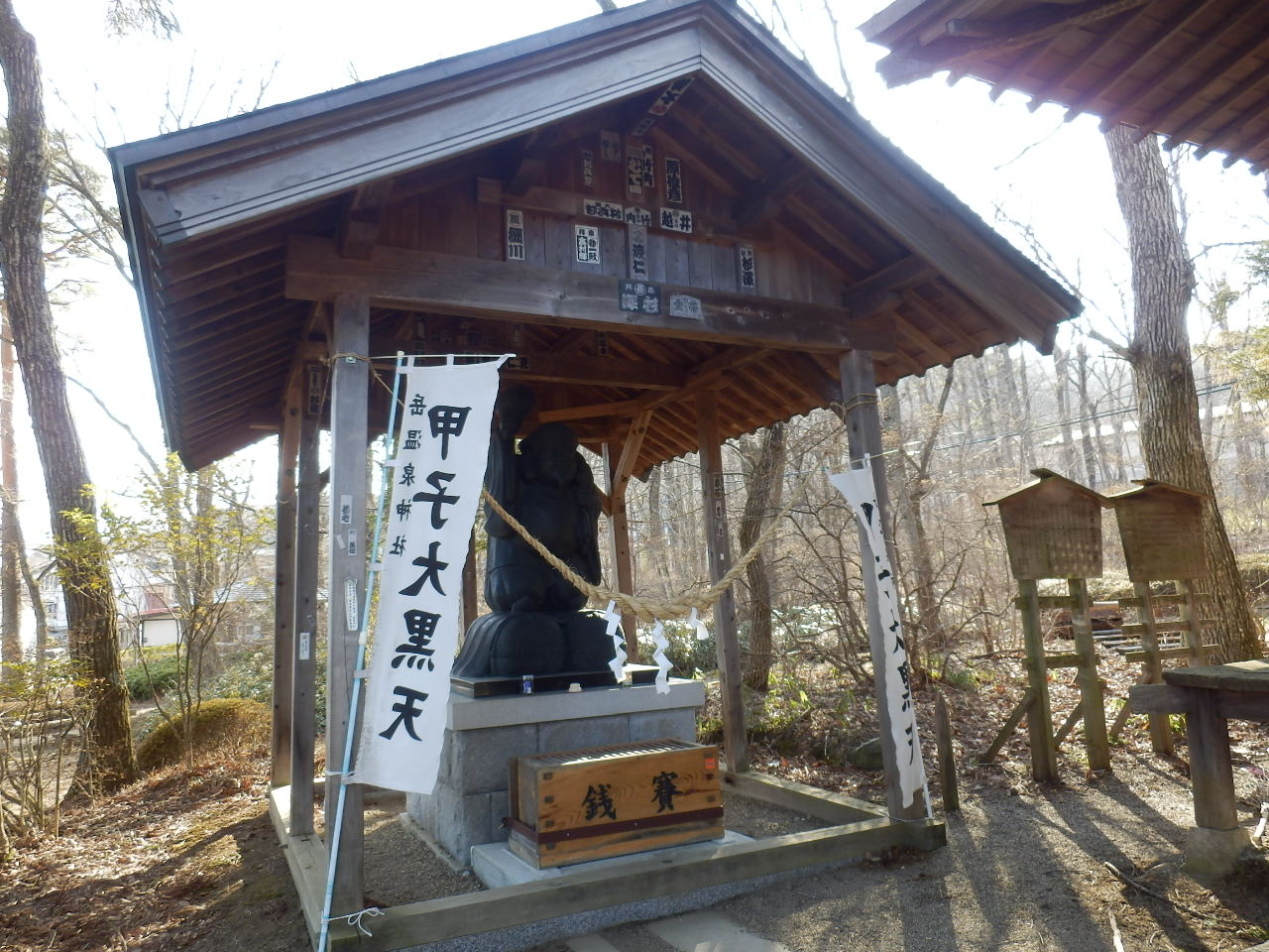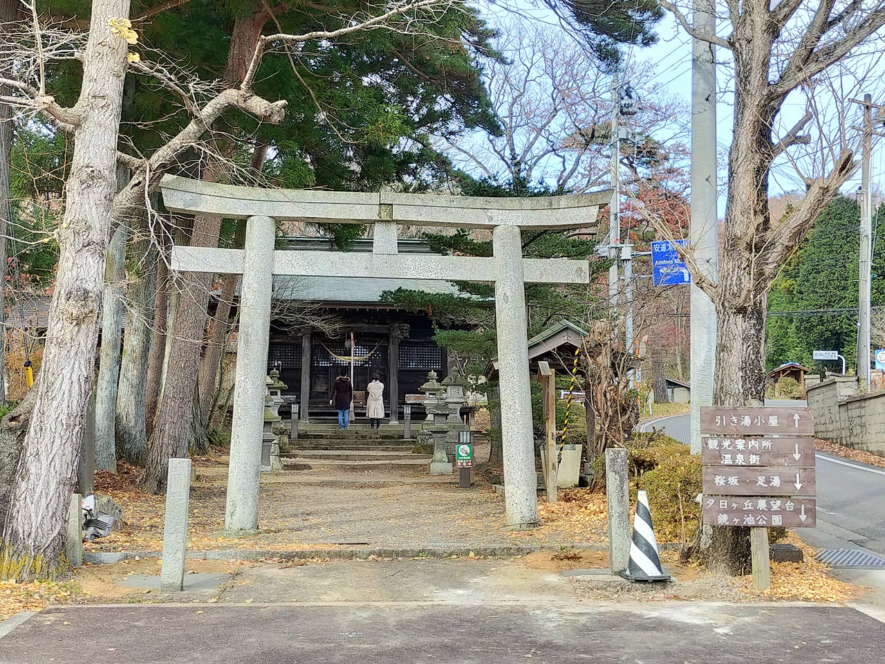 岳温泉の坂をゆるやかに登った奥にある神社です。貞観5年(863)に小結温泉神、寛平9年(897)に小陽日温泉神として朝廷... 続きを読むより贈位された県内最古の官社の一つ。御祭神は湯日(ゆい)温泉神、安達太良明神、熊野神の三神で安達太良山開山の祖徳一大師の伝承に基づく薬師如来が祀られています。社はこじんまりしており、若干寂れた感じがするのがちょっと惜しい気がします。伺った時はまだコロナで人が集まるのが制限されたいた時期。二本松の菊人形展が昨年に続き見送られ、そのPRのために二本松市の各所で菊とマム(洋菊)で菊手水として実施しているのだそう。その心遣いに和まされました。