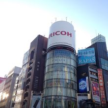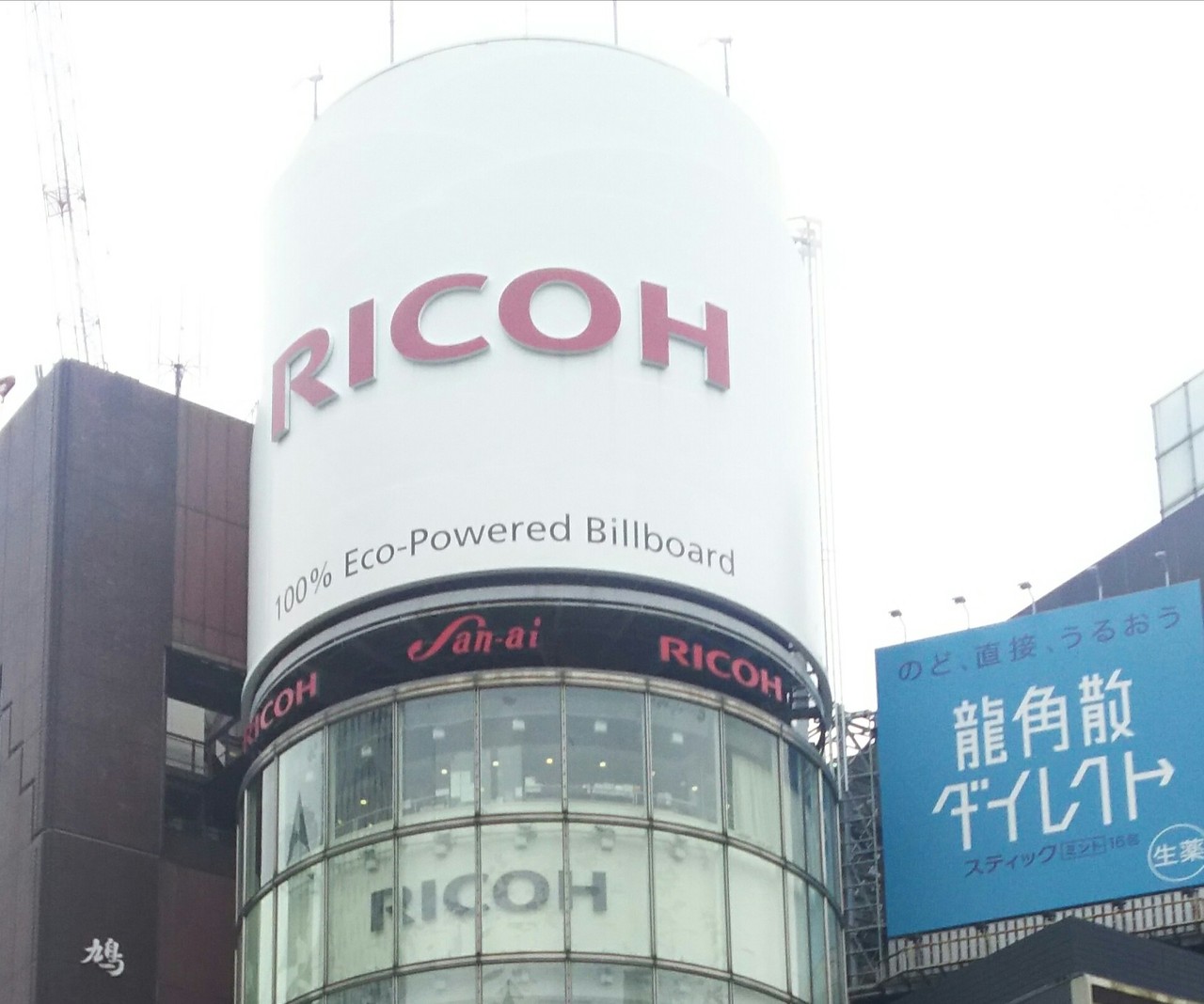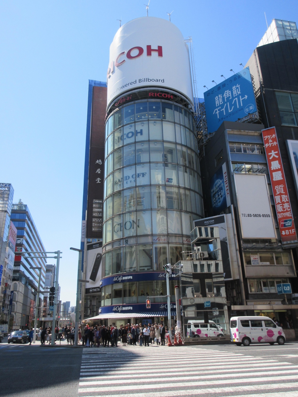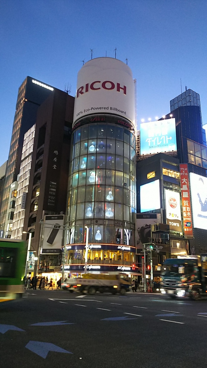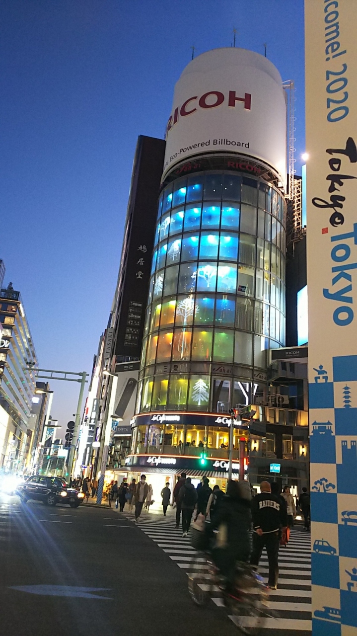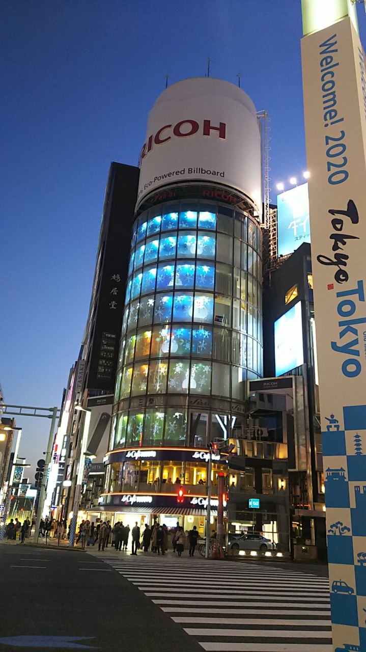 なお、夜7時になると、このリコーのビル自体に絵が投影されるので、外から眺めた。雪だるまなどでとても楽しい。