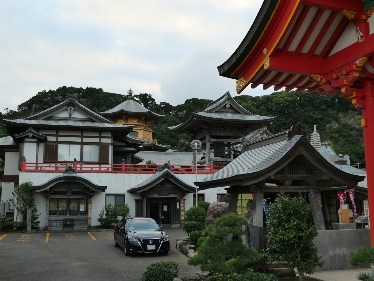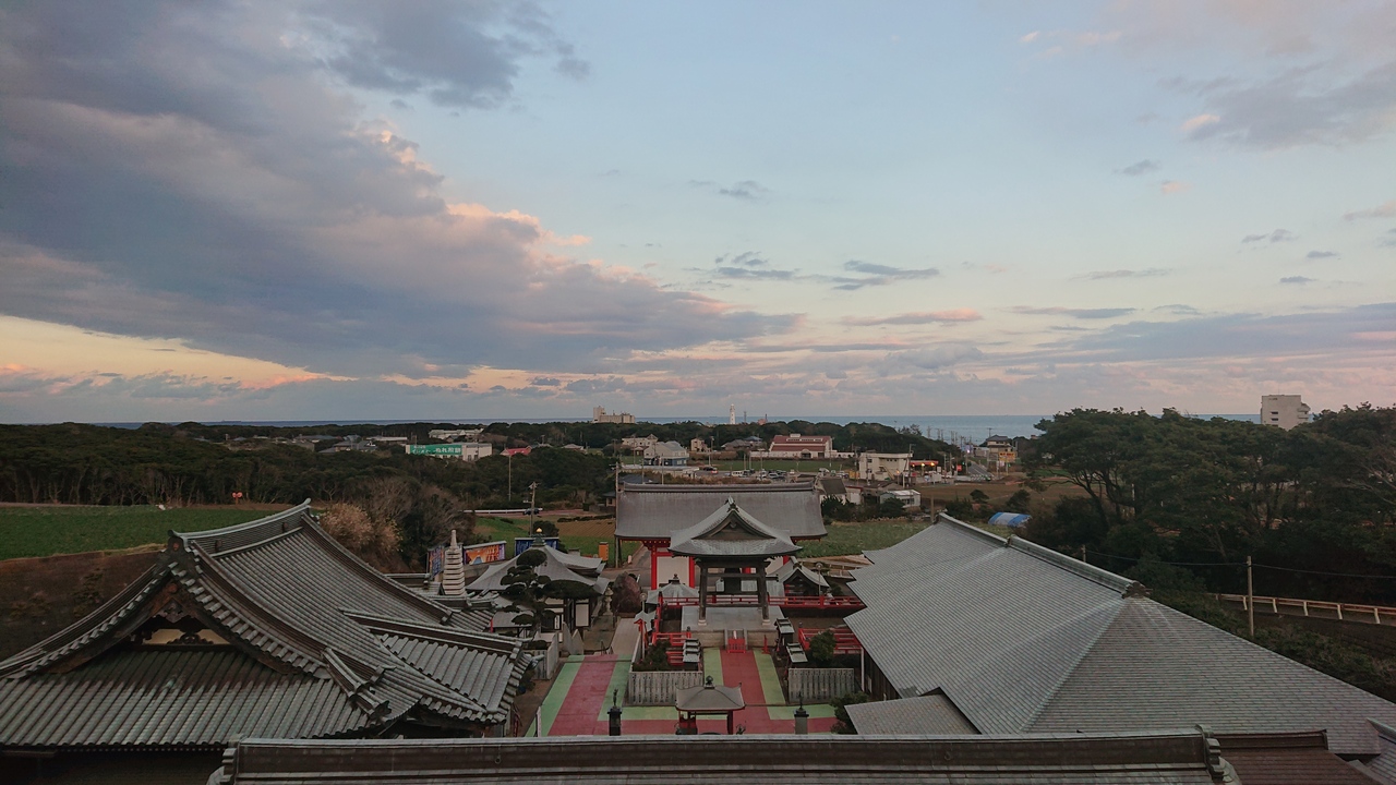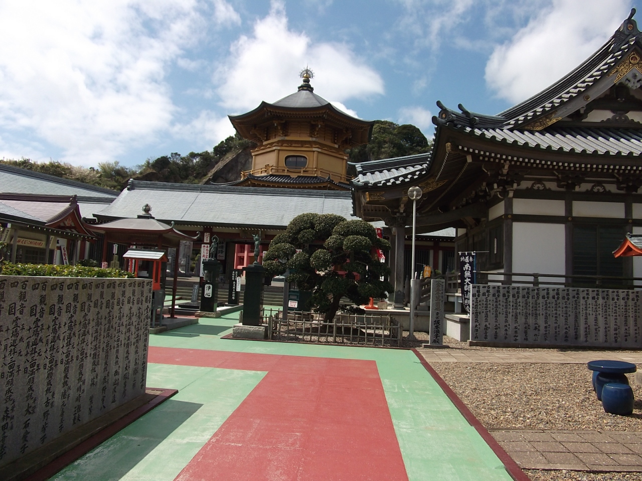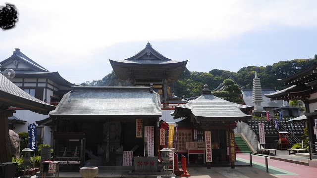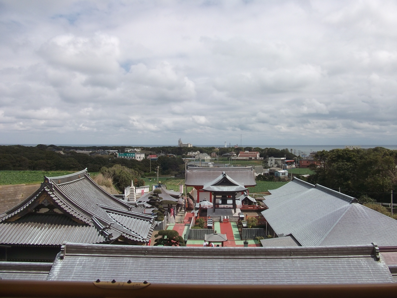 犬吠埼のすぐ近くにある山を背にして建つ立派なお寺はちょっと不思議な雰囲気のお寺