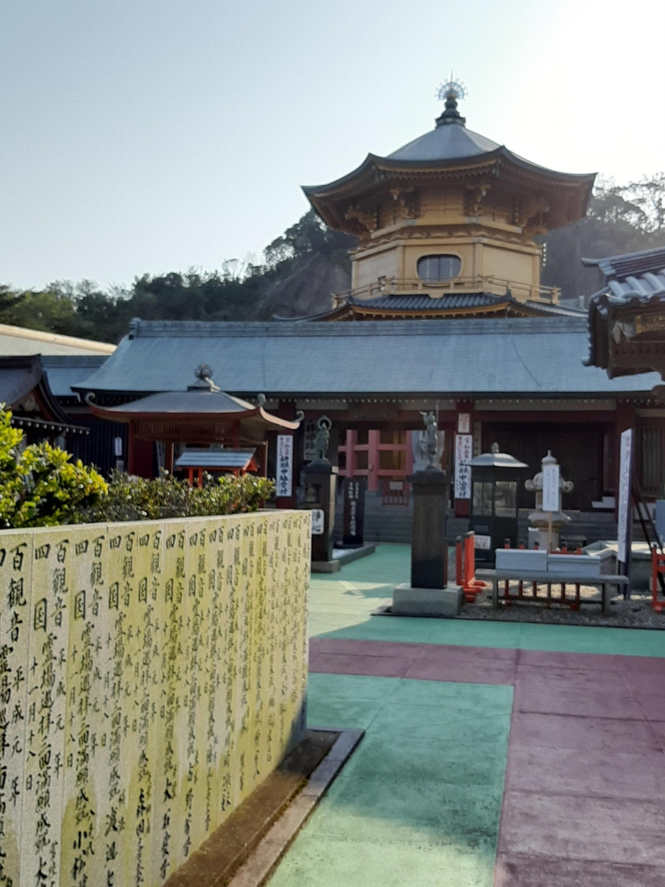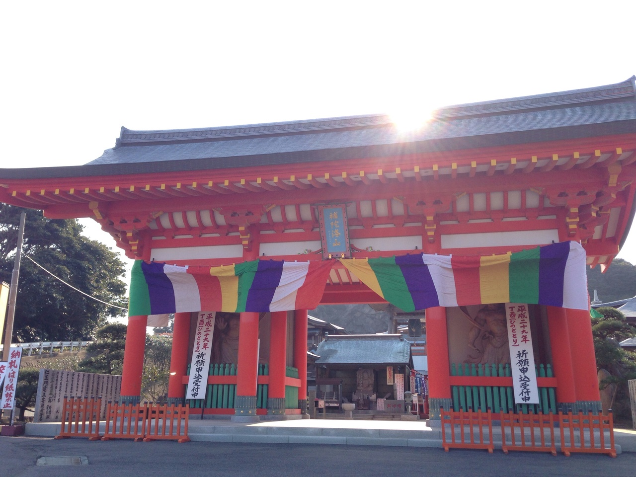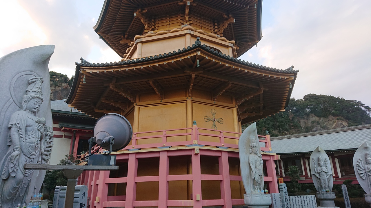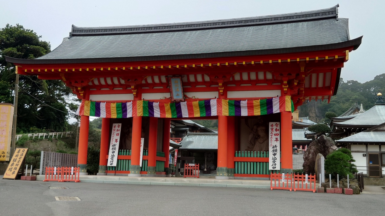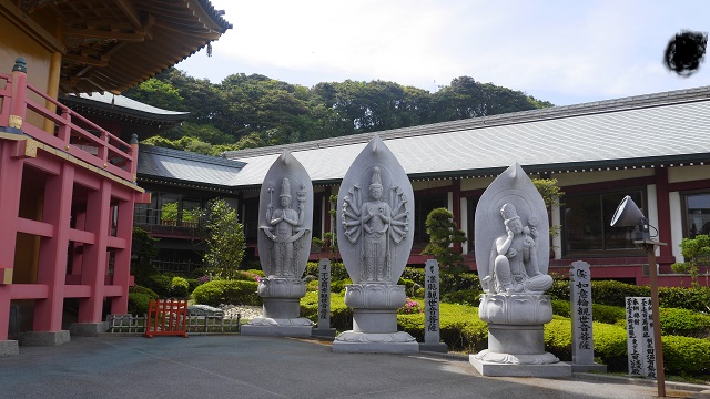 犬吠埼のすぐ近くにある山を背にして建つ立派なお寺はちょっと不思議な雰囲気のお寺