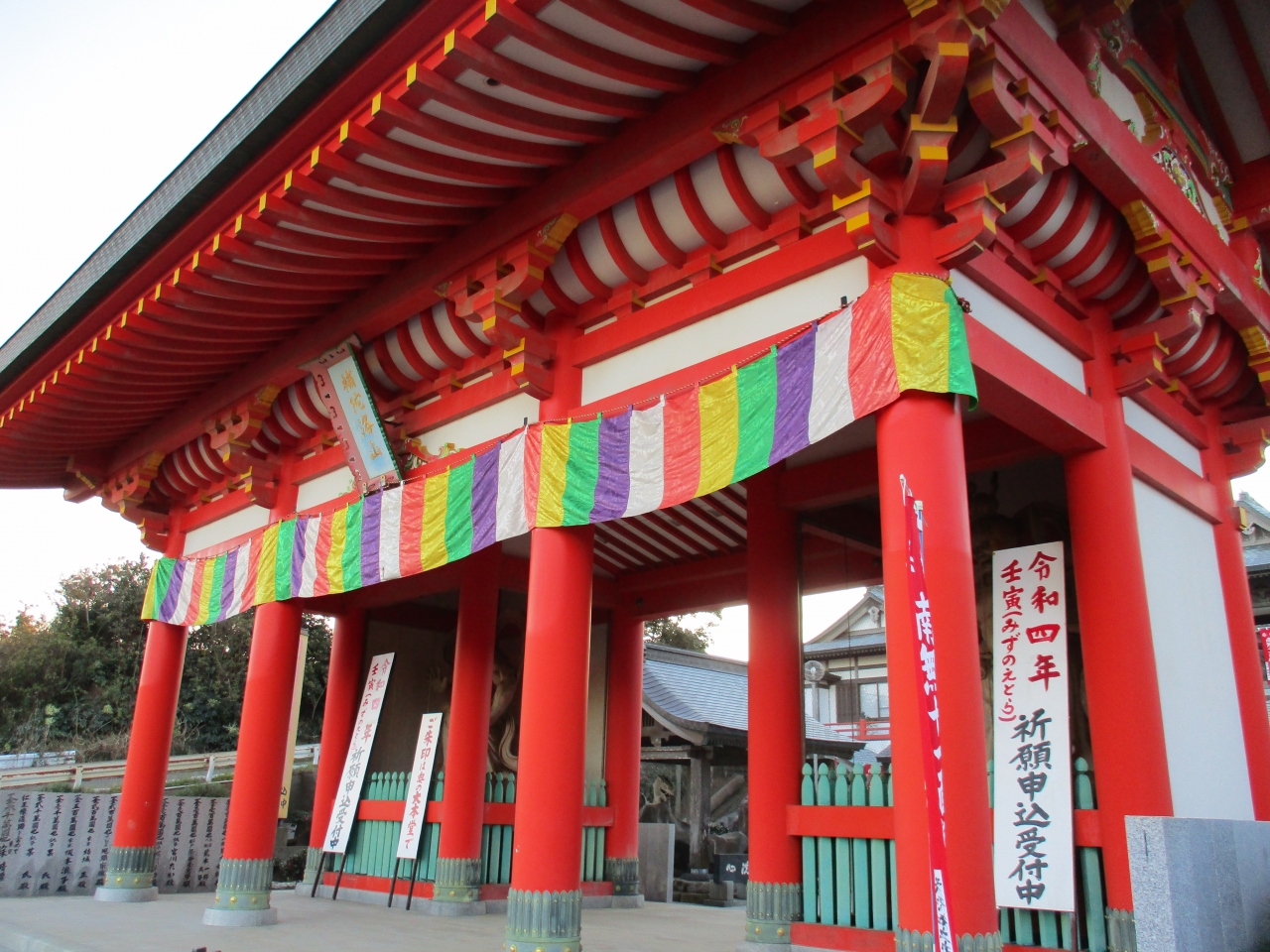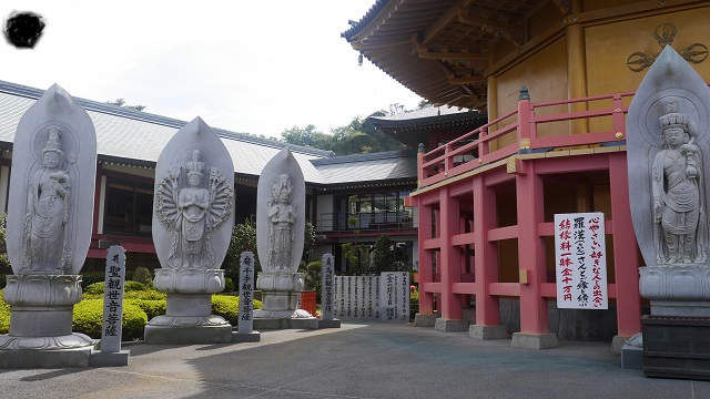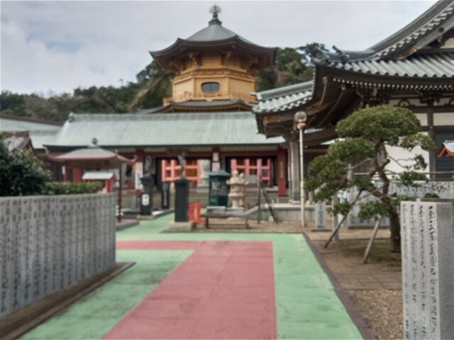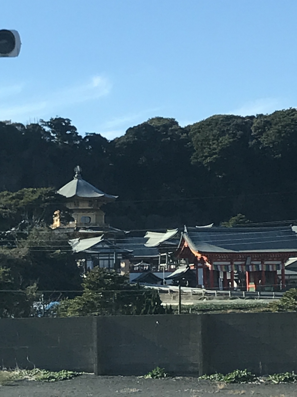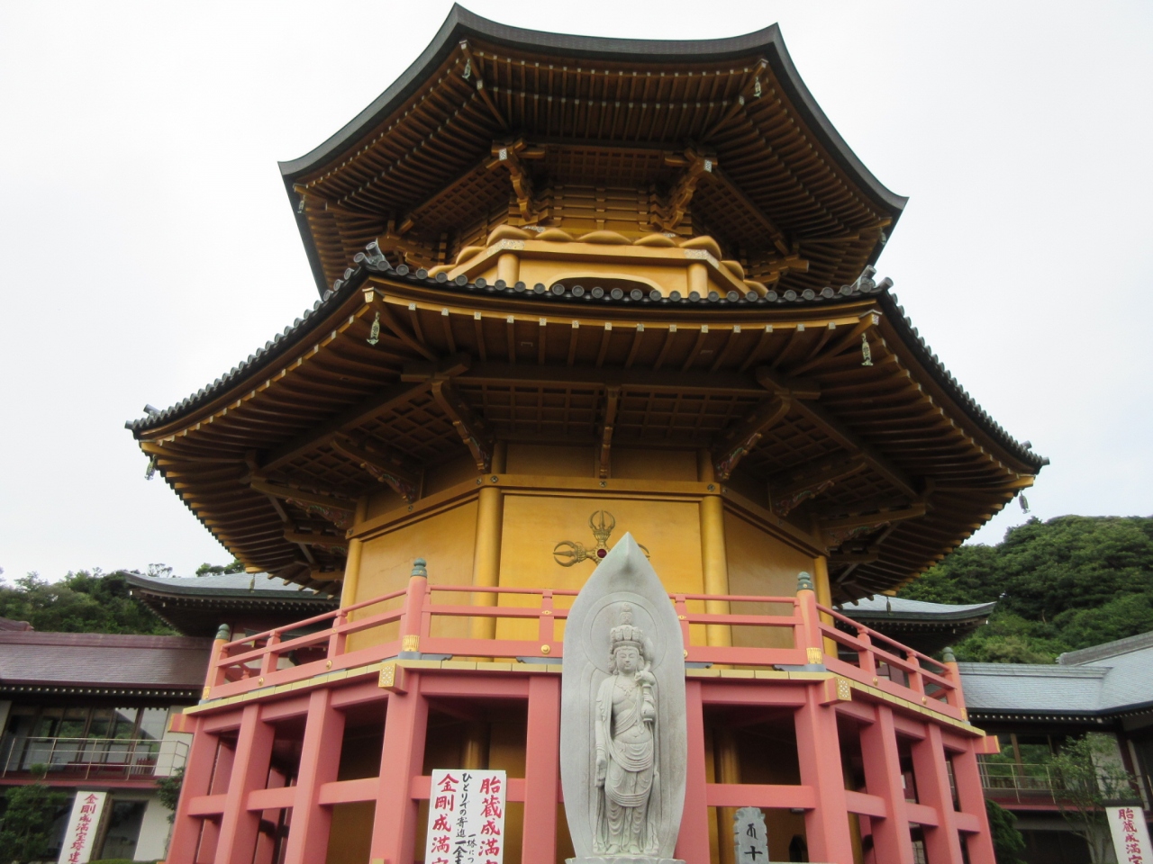 犬吠埼のすぐ近くにある山を背にして建つ立派なお寺はちょっと不思議な雰囲気のお寺