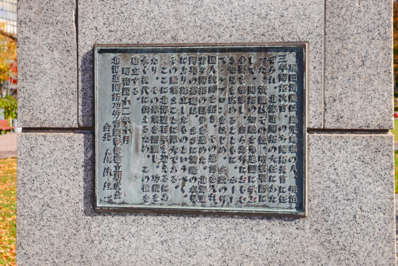 彼が米国より招聘したホーレス・ケプロンとともに像が立っていて、歴史の教科書などにも出てくることがあります。