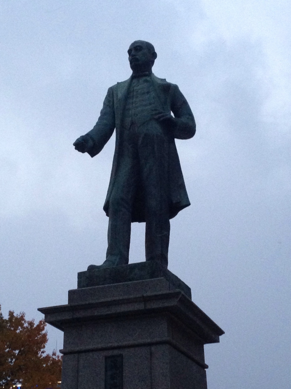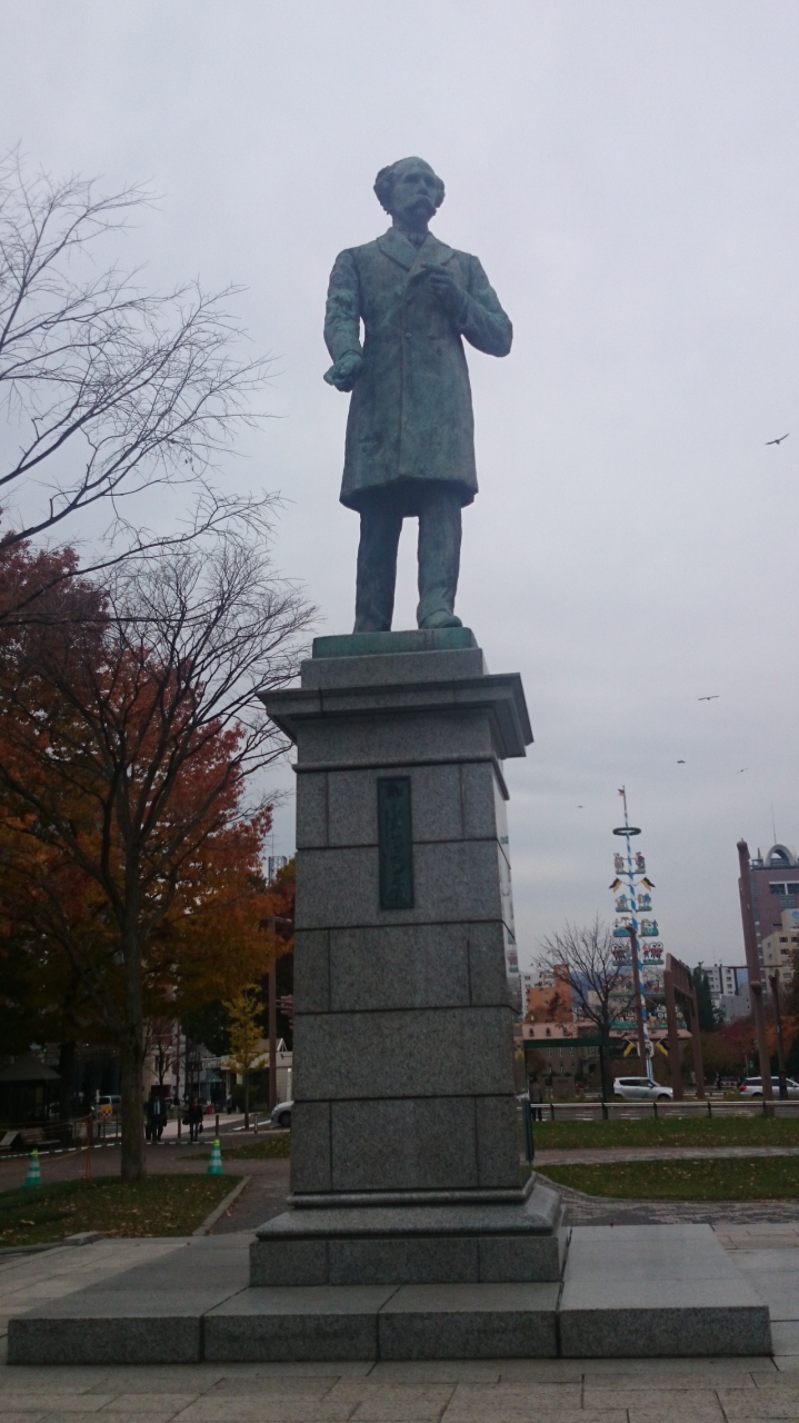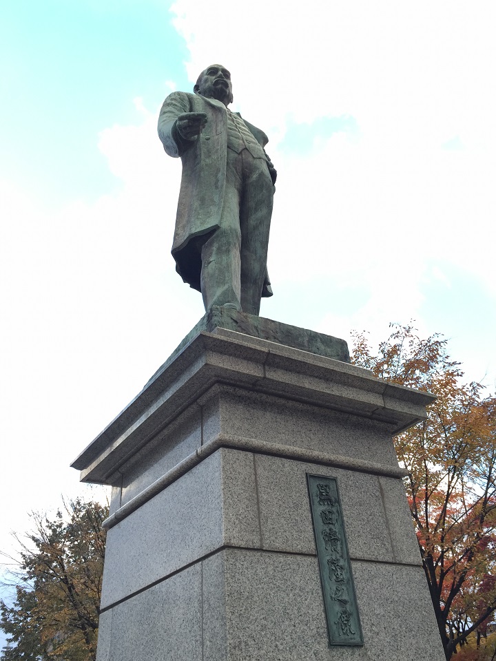 北海道開拓に欠かせない人 市民の憩いの場でもある大通公園に正装をして 堂々としています