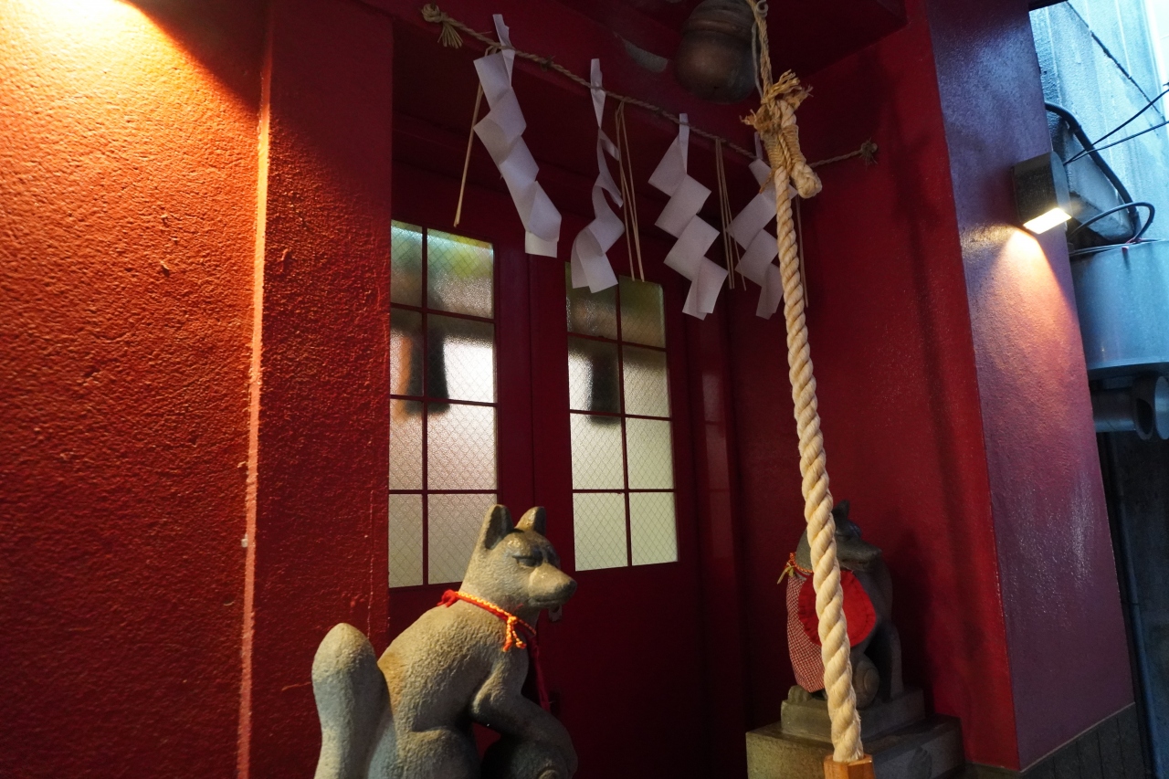 ビルとビルの間にお馴染みの狐が