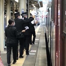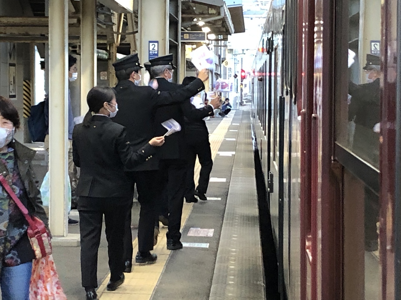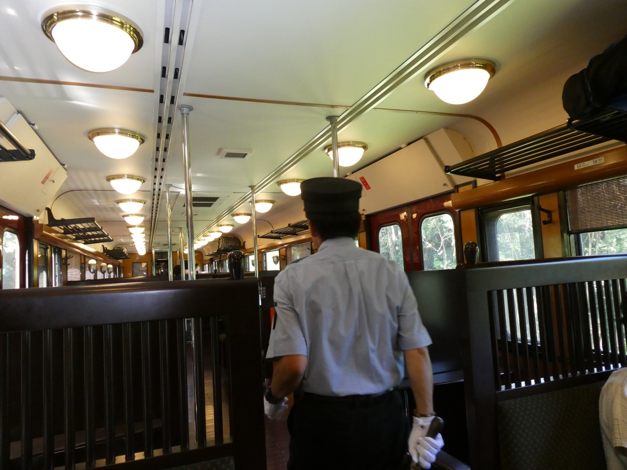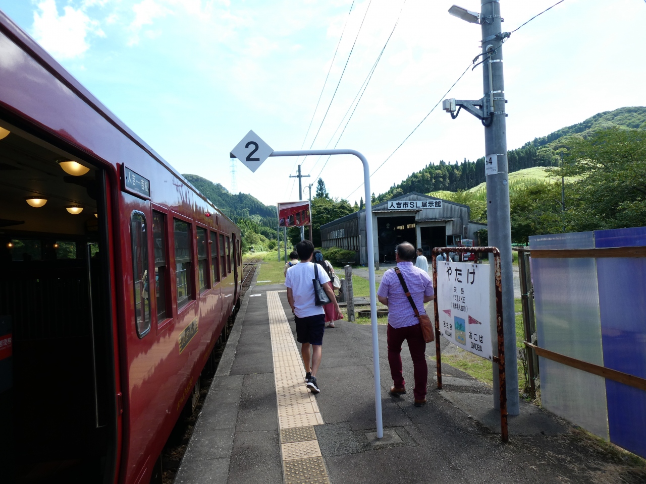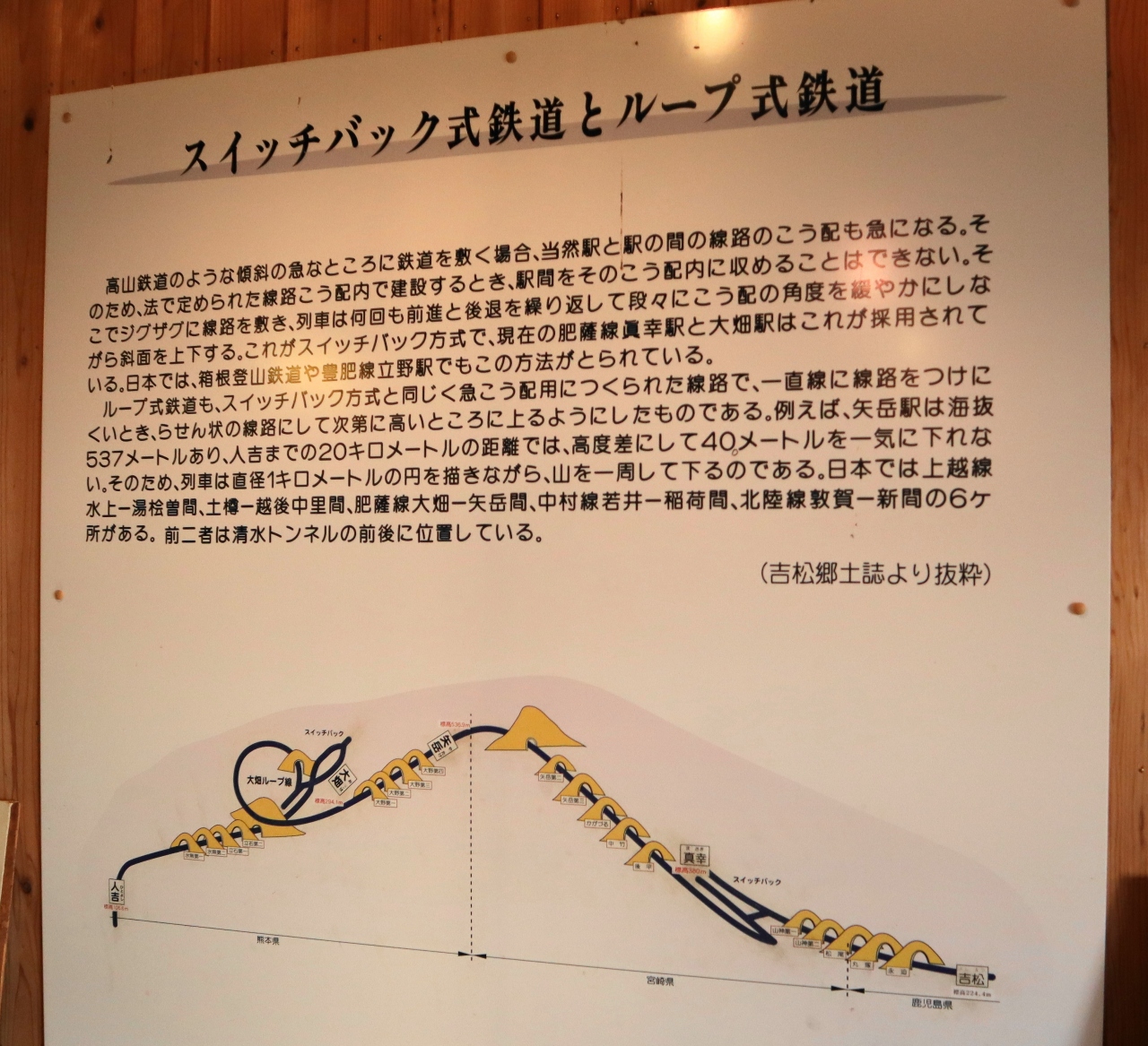 乗車中は車内アテンドさんの観光アナウンスが要所要所で有ったり路線内の大畑・矢岳・真幸の駅では観光停車時間が有り下車して駅や周辺散策・買い物をする時間がとられています。