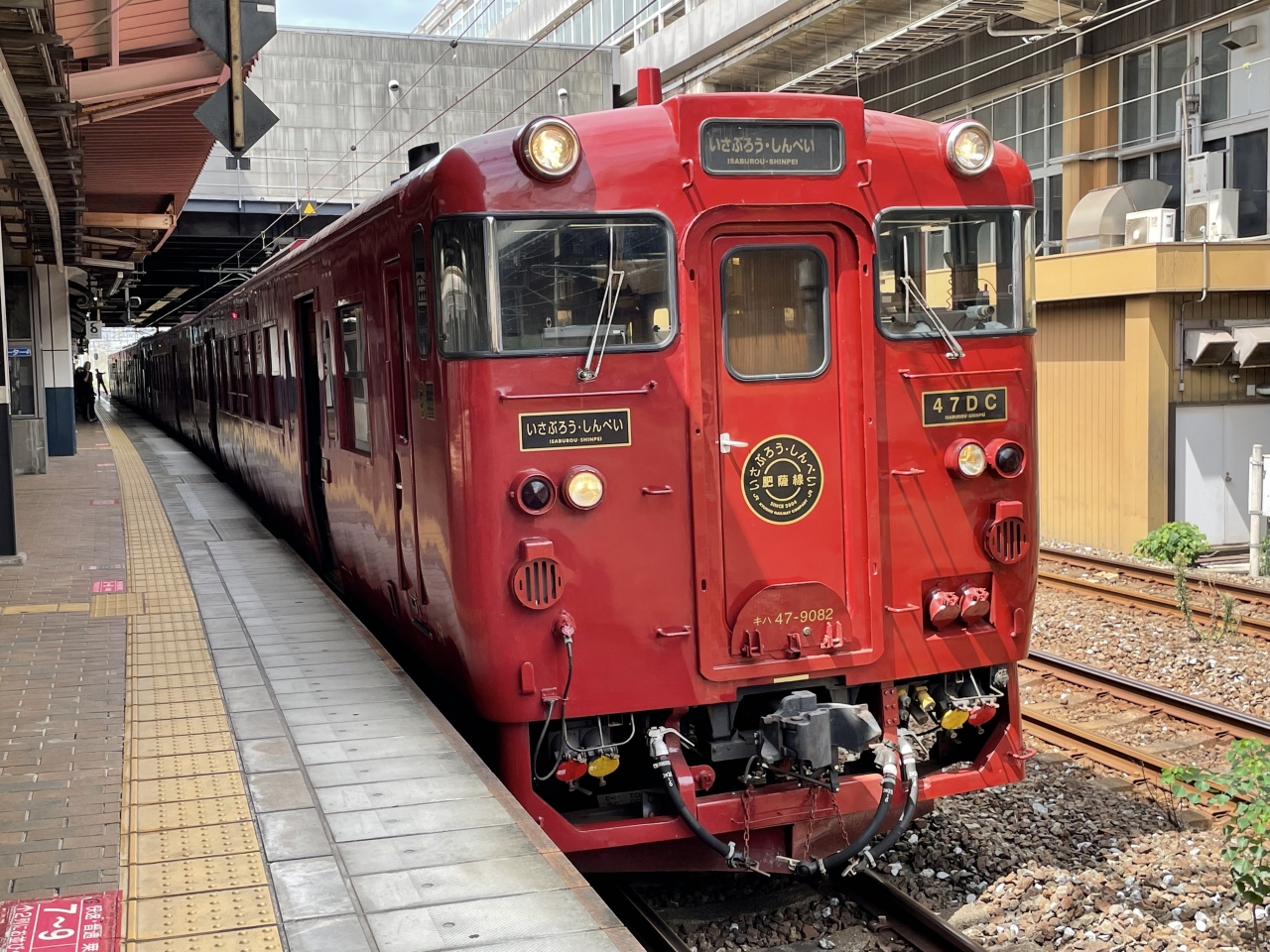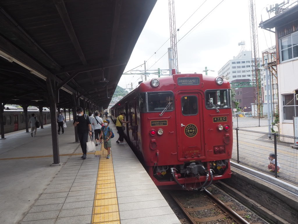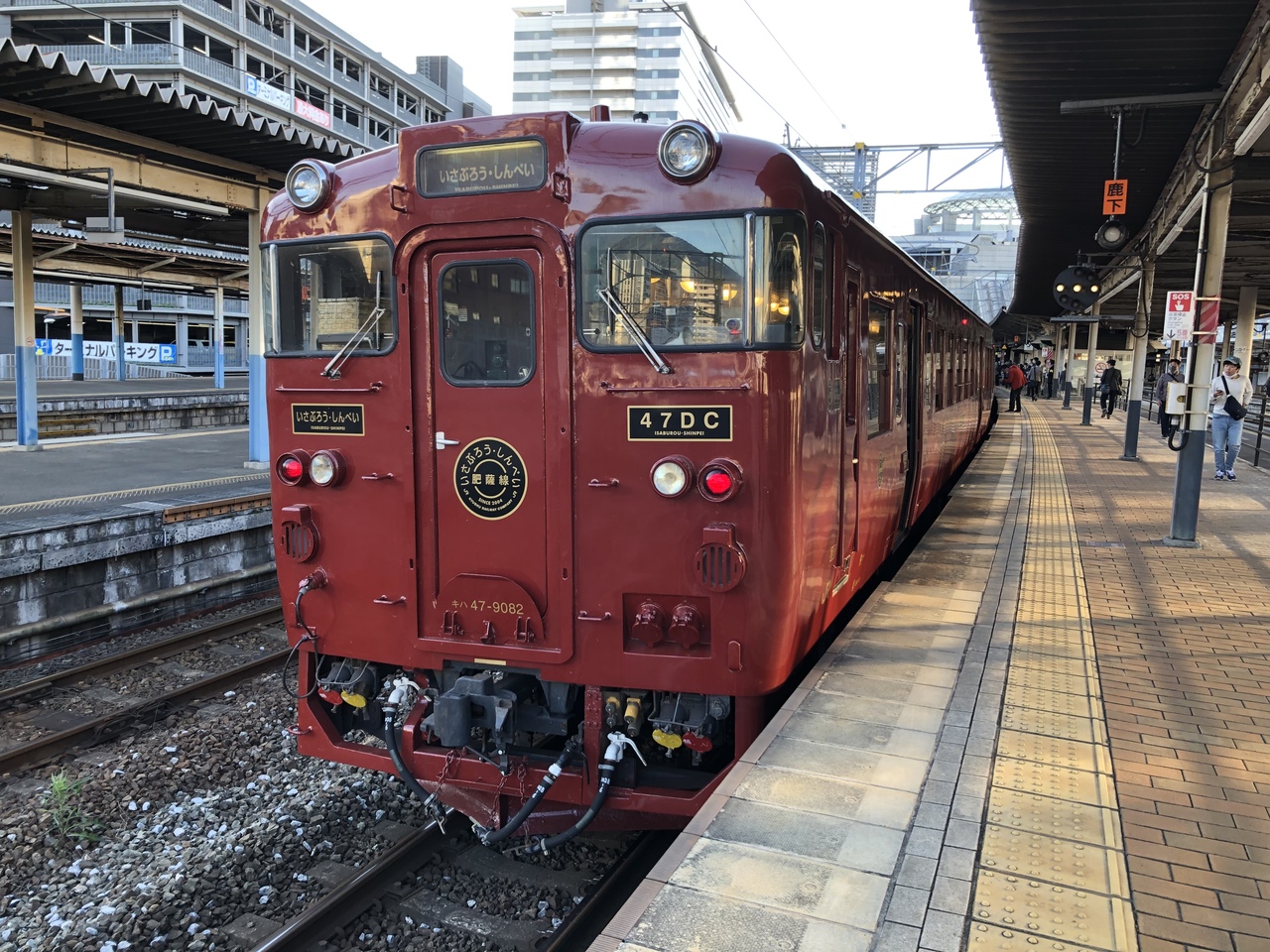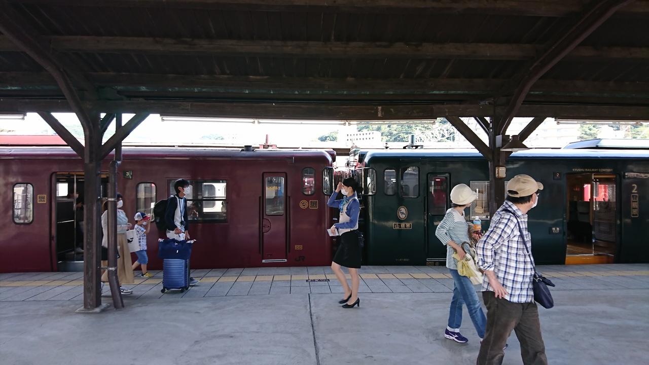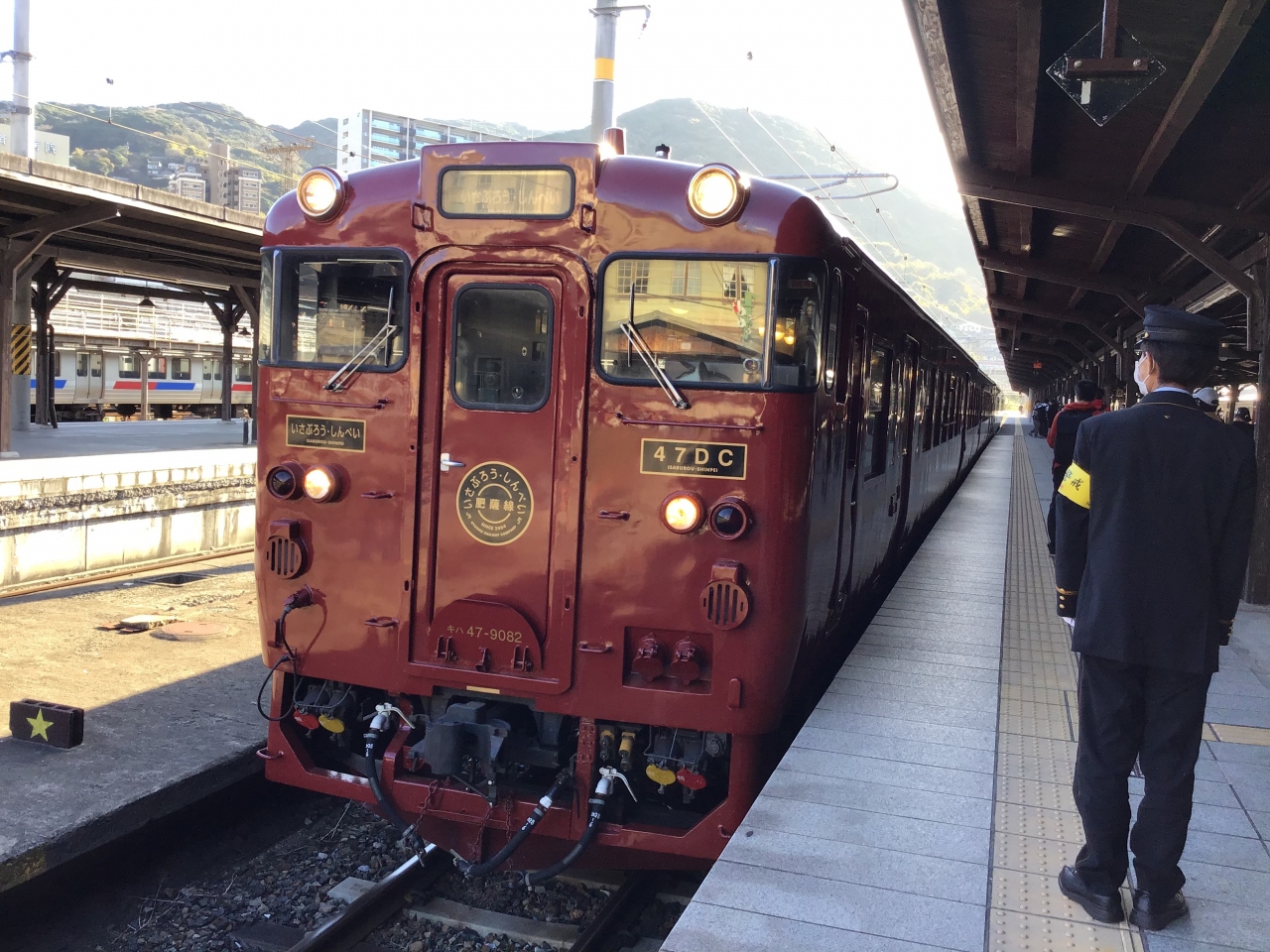 2020年7月豪雨による甚大な被害のため、2021年7月現在、復旧の見通しが立っていません。このため、2020年から肥薩線応援企画として、通常、肥薩線の同区間を走るD&S列車である「かわせみ やませみ」と連結した臨時列車として、博多~門司港を運行しています。車窓は期待できませんが、雰囲気は十分味わえます。ただ、併結している「かわせみ やませみ」の方が車内設備が豪華なので、同じ料金なため、かなり差があるなとも感じました。