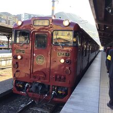熊本と鹿児島県吉松を結ぶJR九州のD&S列車(デザイン&ストーリー)の一つ。日本三大車窓の一つである「矢岳越え」(宮崎県え... 続きを読むびの市)の絶景と日本唯一のループ・スイッチバックを味わうことができる特急列車。国鉄時代に製造された普通列車用の気動車キハ40系をを改造した車両で、デザインはJR九州のD&S列車でお馴染みの工業デザイナーの水戸岡鋭治さんによるもの。外部カラーは九州新幹線800系「つばめ」と同じ深赤(古代漆色)が用いられており、重みがあります。車内は木製のインテリアで、座席は木製のボックスシート。中央部に展望スペースが設けられています。また、車内には乗車スタンプが設置されているほか、車内販売や撮影サービスがあります。