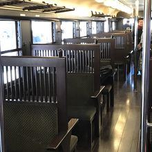 指定席、自由席があり指定は2名掛けの椅子で進行方向を向いて設置