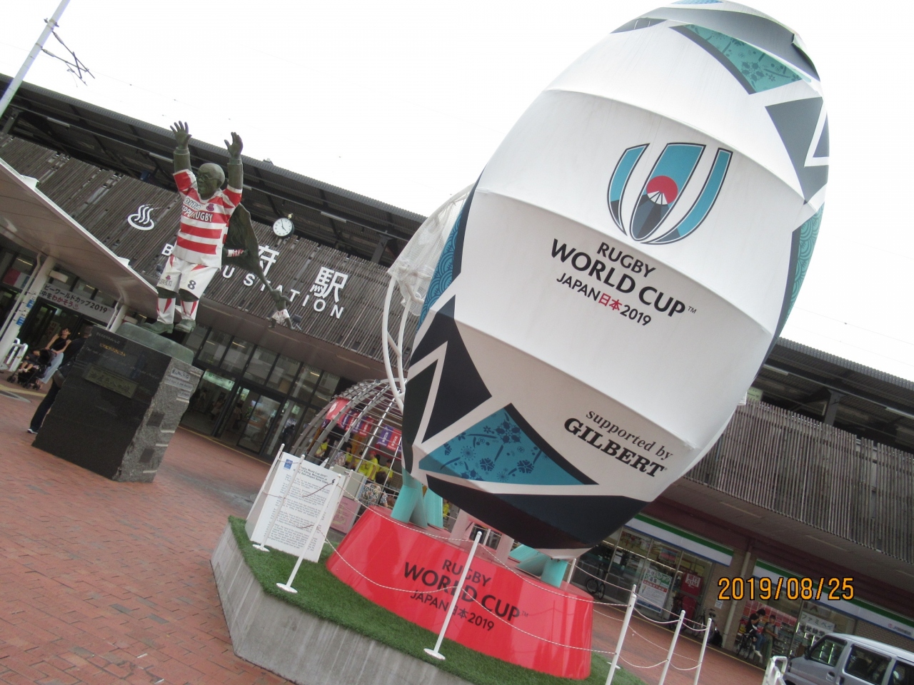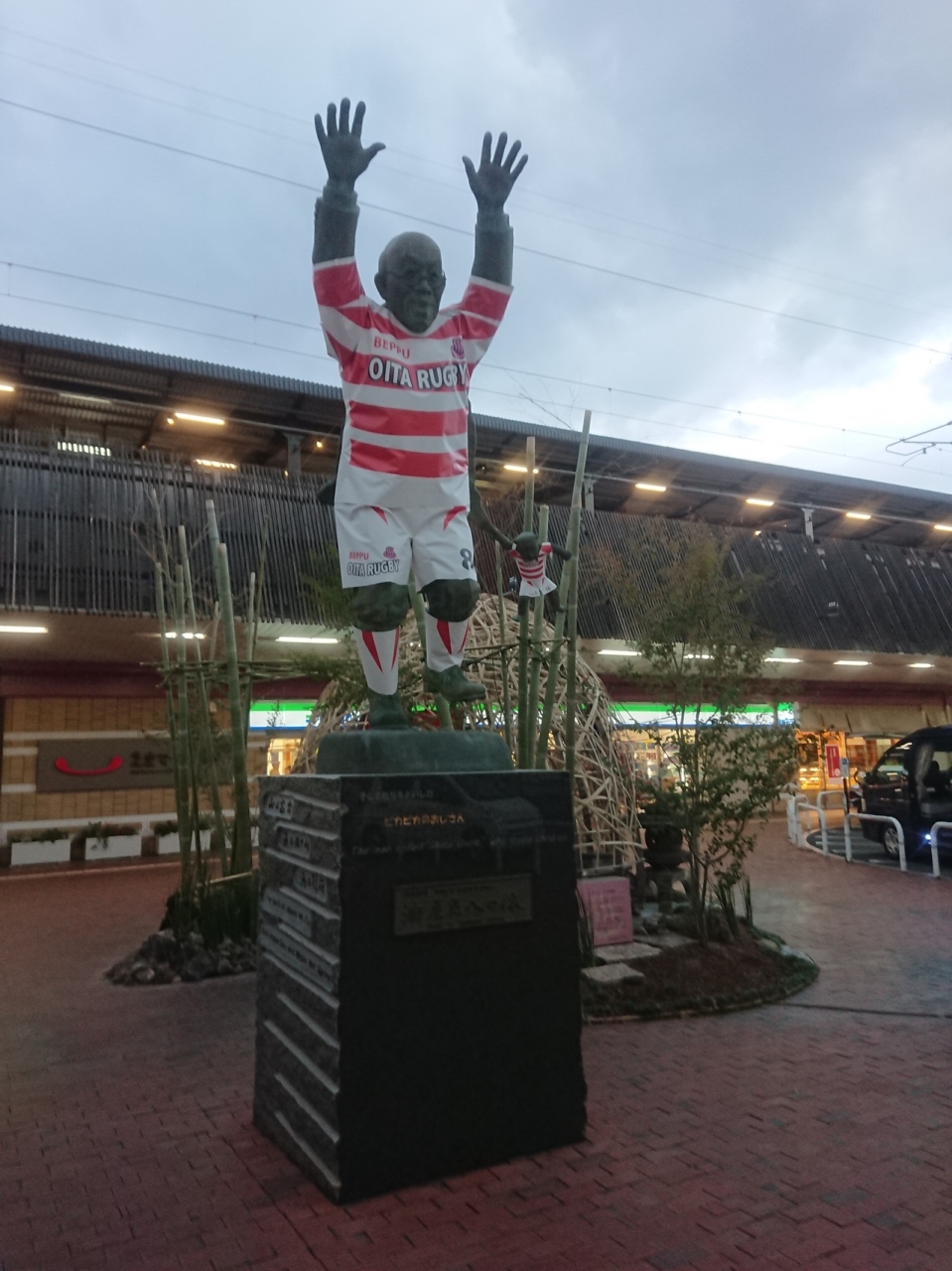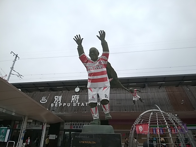 JR別府駅前で2019年ワールドラグビーカップの日本チームのユニフォーム着てました
