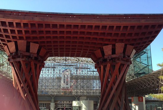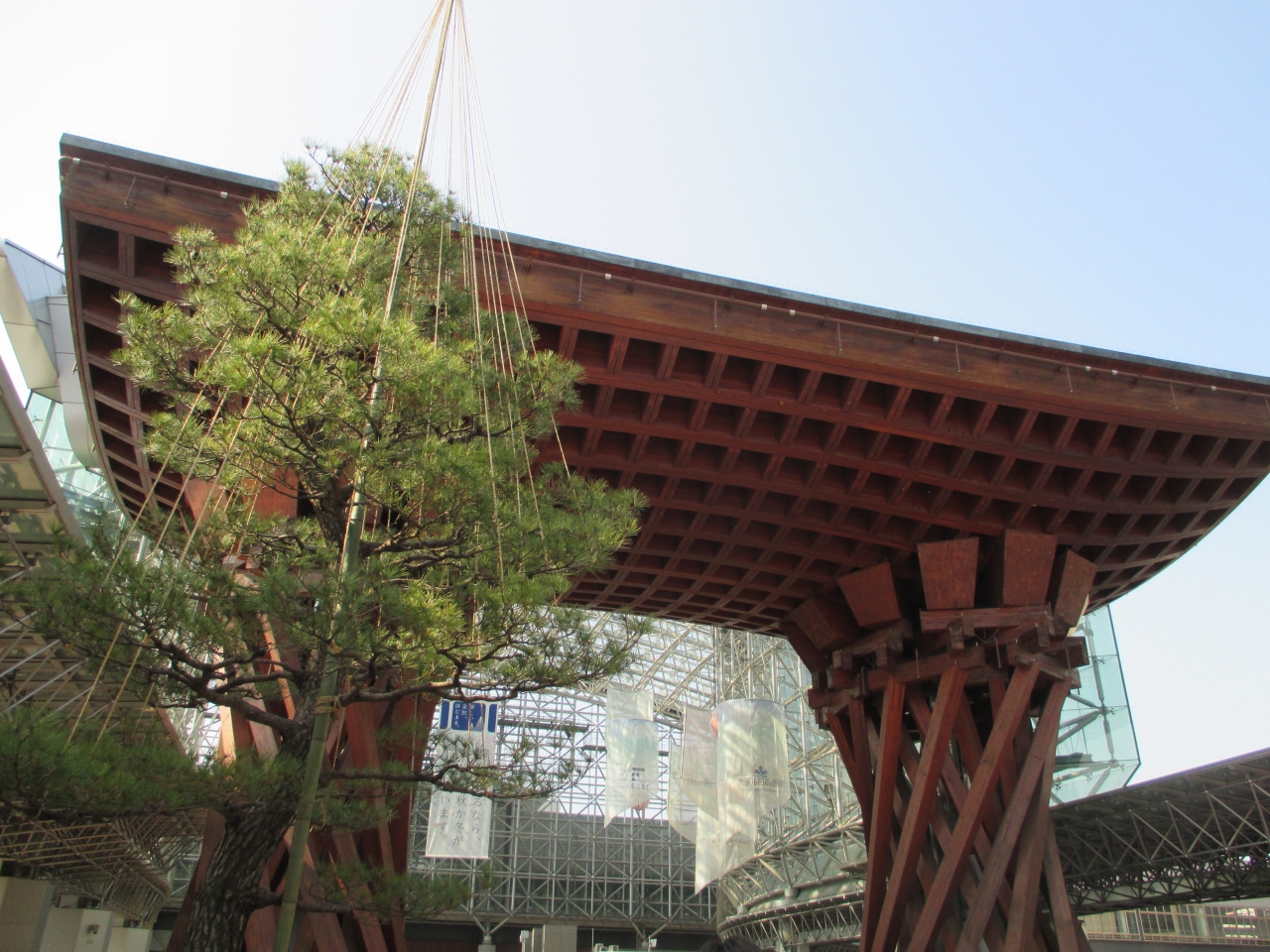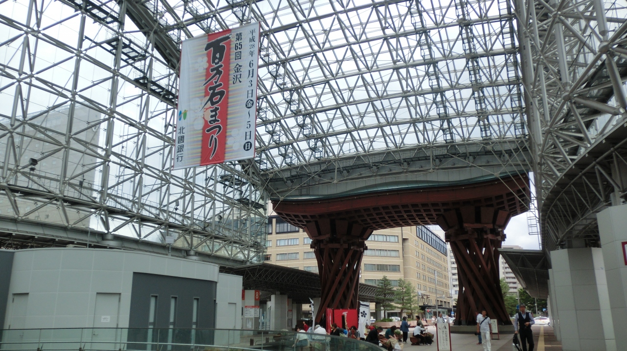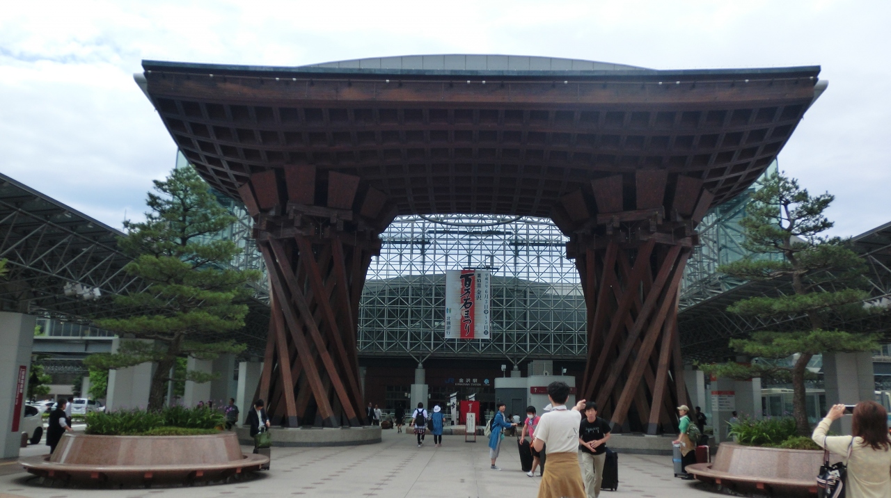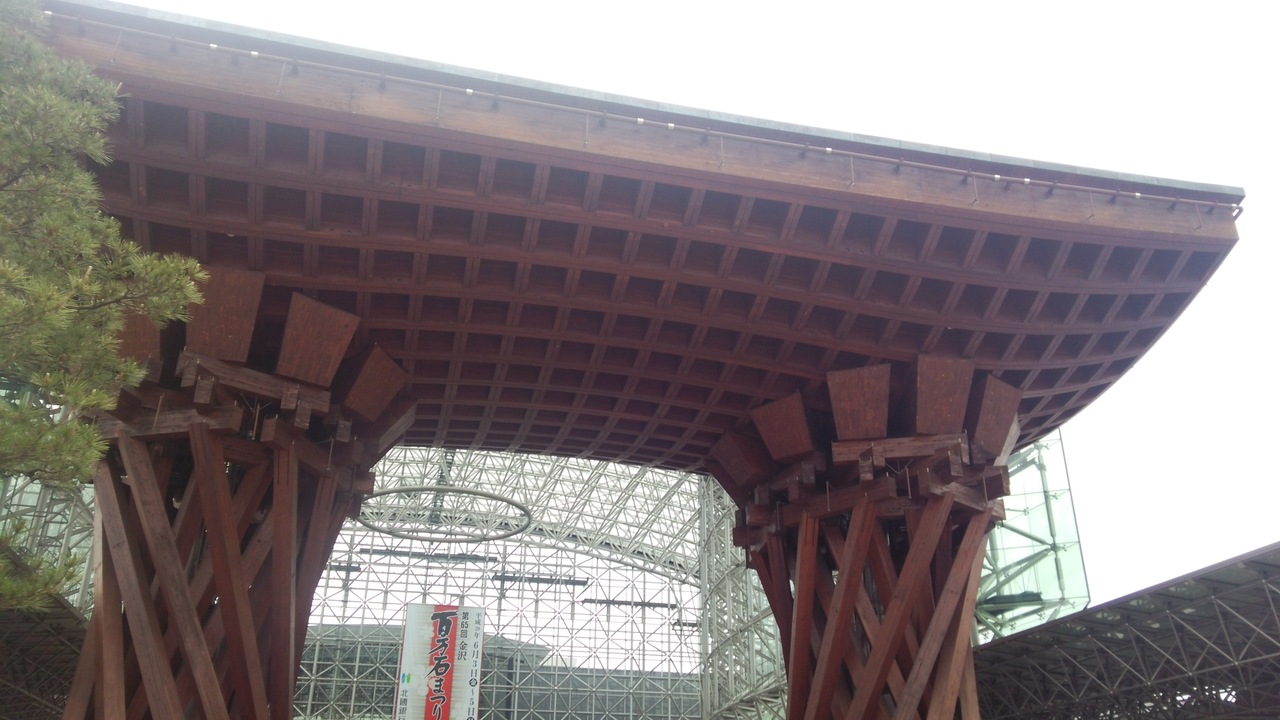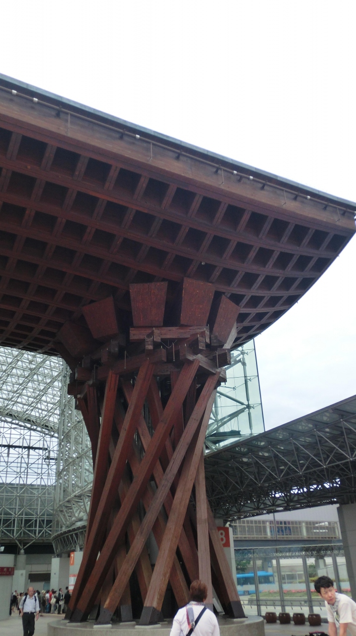 金沢の玄関口として定着した金沢駅の真正面にあるおおきな木組みの門。とにかく巨大で目立つどころの話ではありません。まさに金沢... 続きを読むの玄関の門です。金沢駅が普通の高架駅のように風防板とガラス板だけだったらなんんと味気ない風景だったことでしょう。このような建造物をつくった英断に敬意を表したくなります。