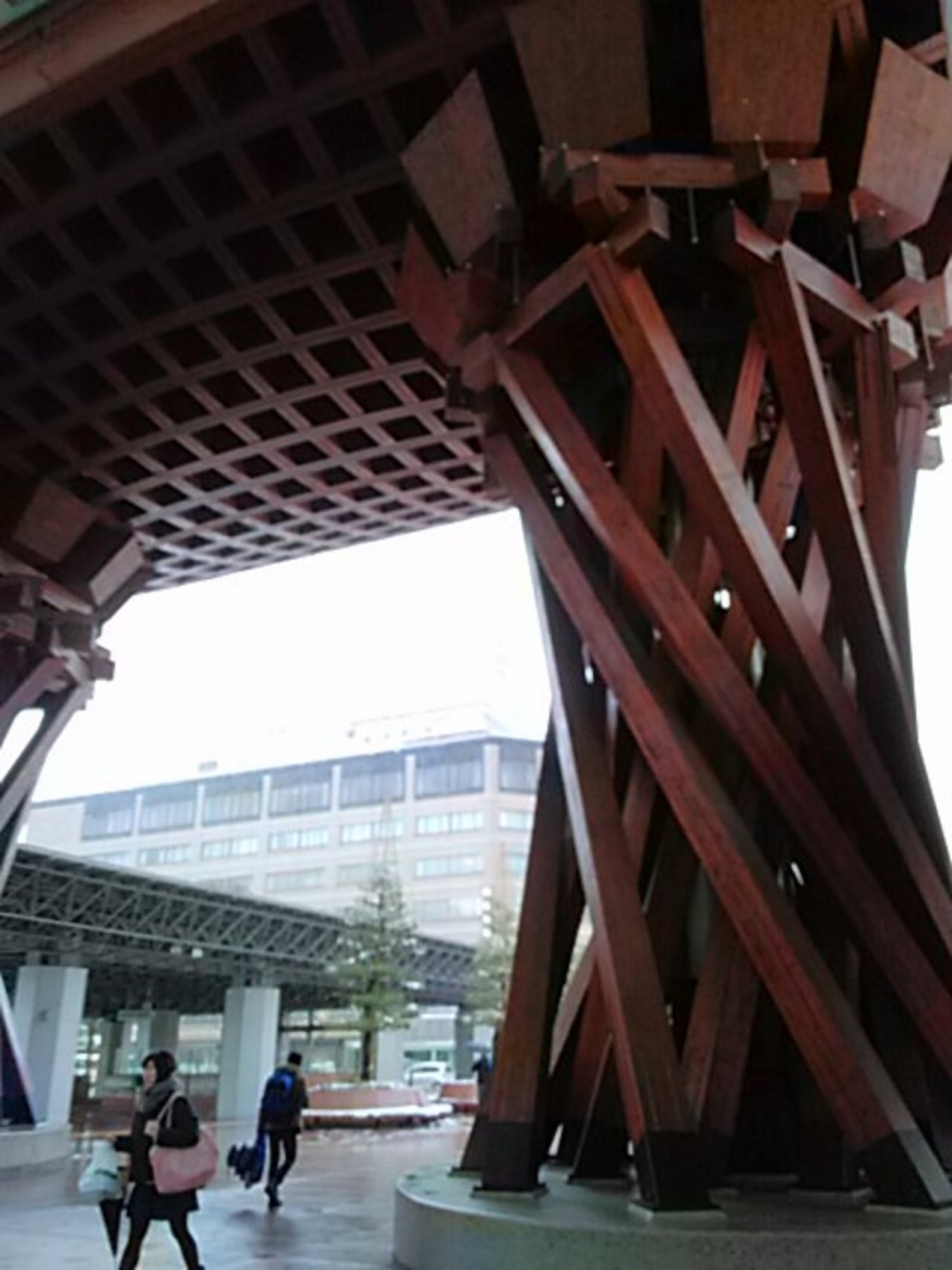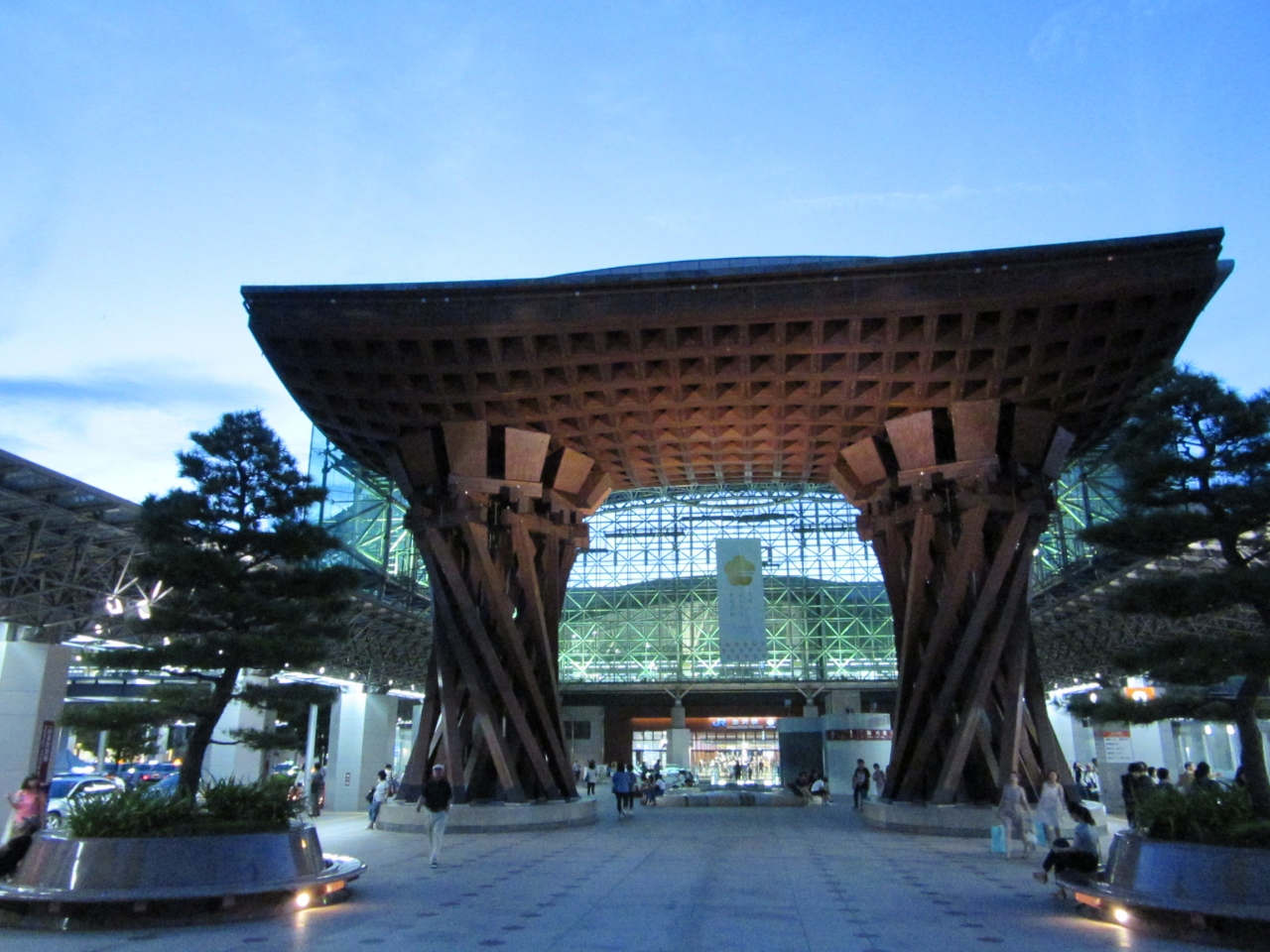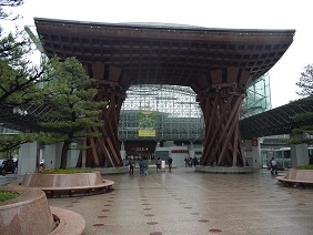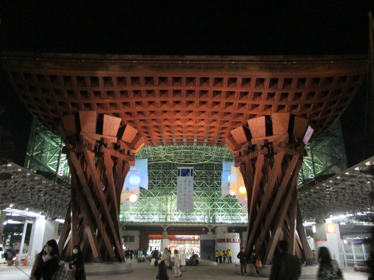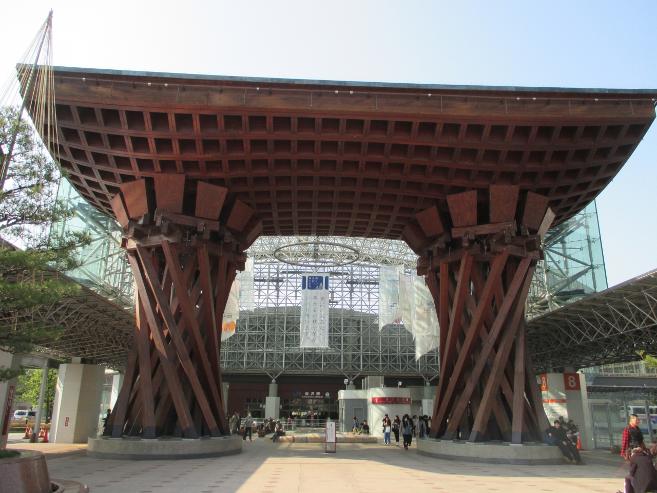 金沢の玄関口として定着した金沢駅の真正面にあるおおきな木組みの門。とにかく巨大で目立つどころの話ではありません。まさに金沢... 続きを読むの玄関の門です。金沢駅が普通の高架駅のように風防板とガラス板だけだったらなんんと味気ない風景だったことでしょう。このような建造物をつくった英断に敬意を表したくなります。