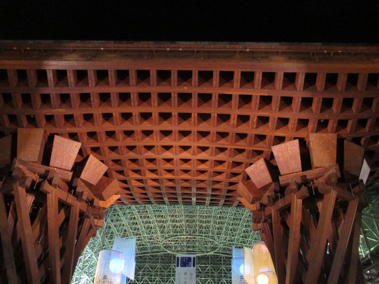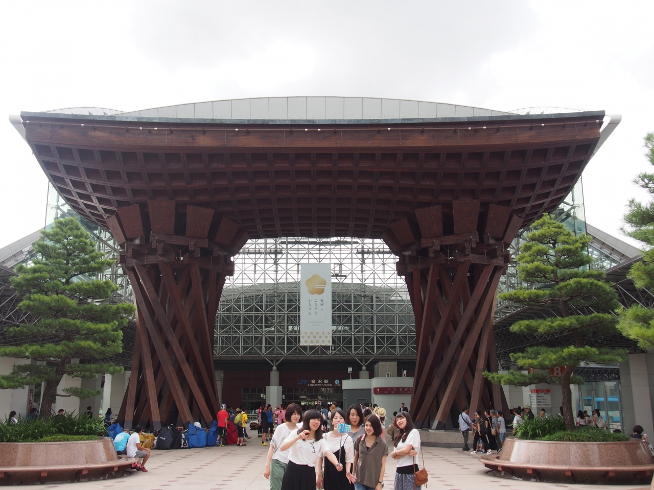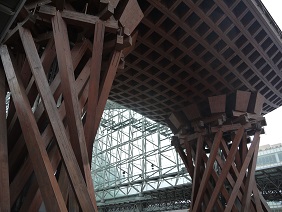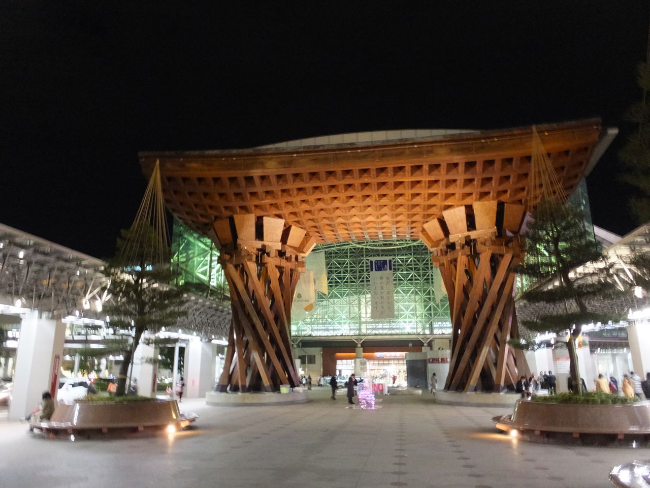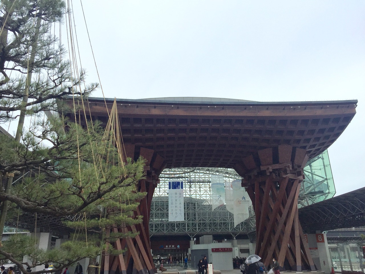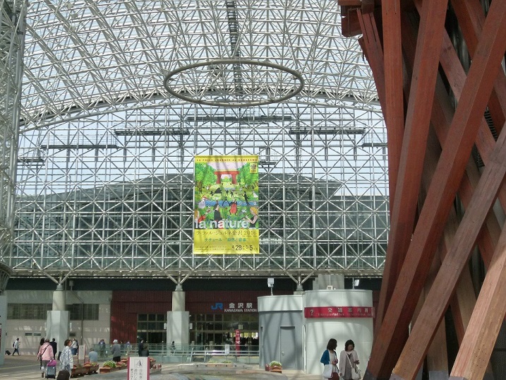 金沢の玄関口として定着した金沢駅の真正面にあるおおきな木組みの門。とにかく巨大で目立つどころの話ではありません。まさに金沢... 続きを読むの玄関の門です。金沢駅が普通の高架駅のように風防板とガラス板だけだったらなんんと味気ない風景だったことでしょう。このような建造物をつくった英断に敬意を表したくなります。