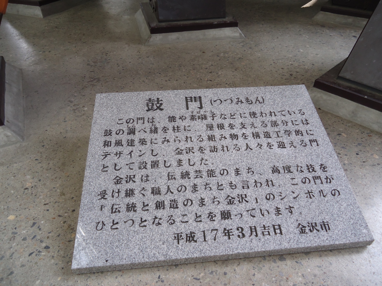 さて構造的には捻った柱と波打った屋根で動きを感じさせるあたり、単なるお寺の門とは違う造形ですばらしいです。ここから始まる金沢観光をわくわくさせる門だと思います。