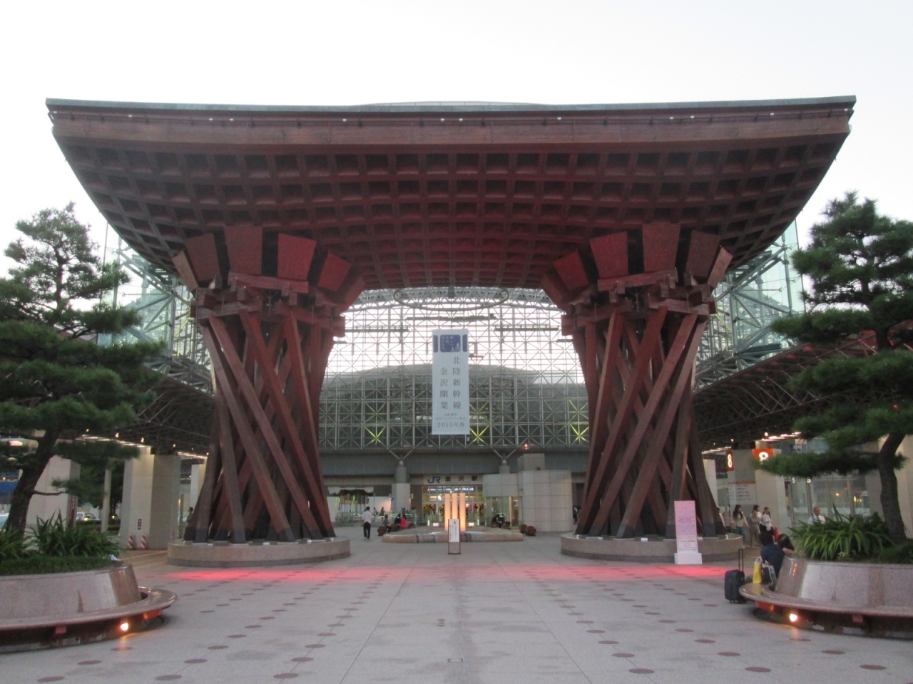 金沢駅にある朱色の大きな門